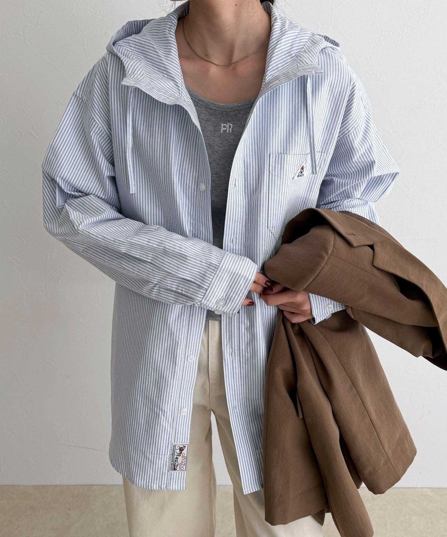・シャツの軽さとフーディのカジュアルさを掛け合わせた、GEVACOらしいフーディシャツ