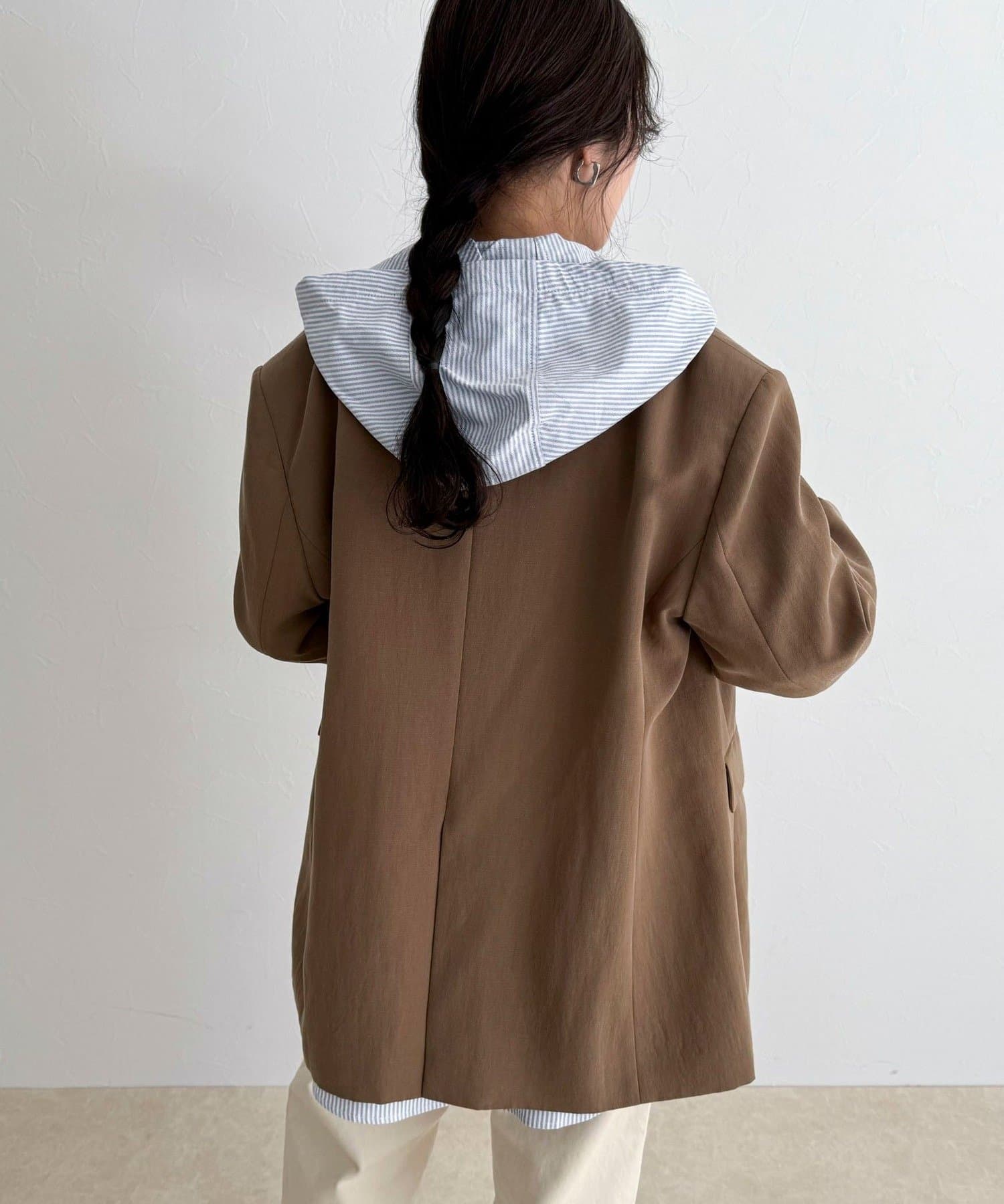 ・フード付きデザインが程よい抜け感を演出し、シンプルなスタイリングのアクセントに