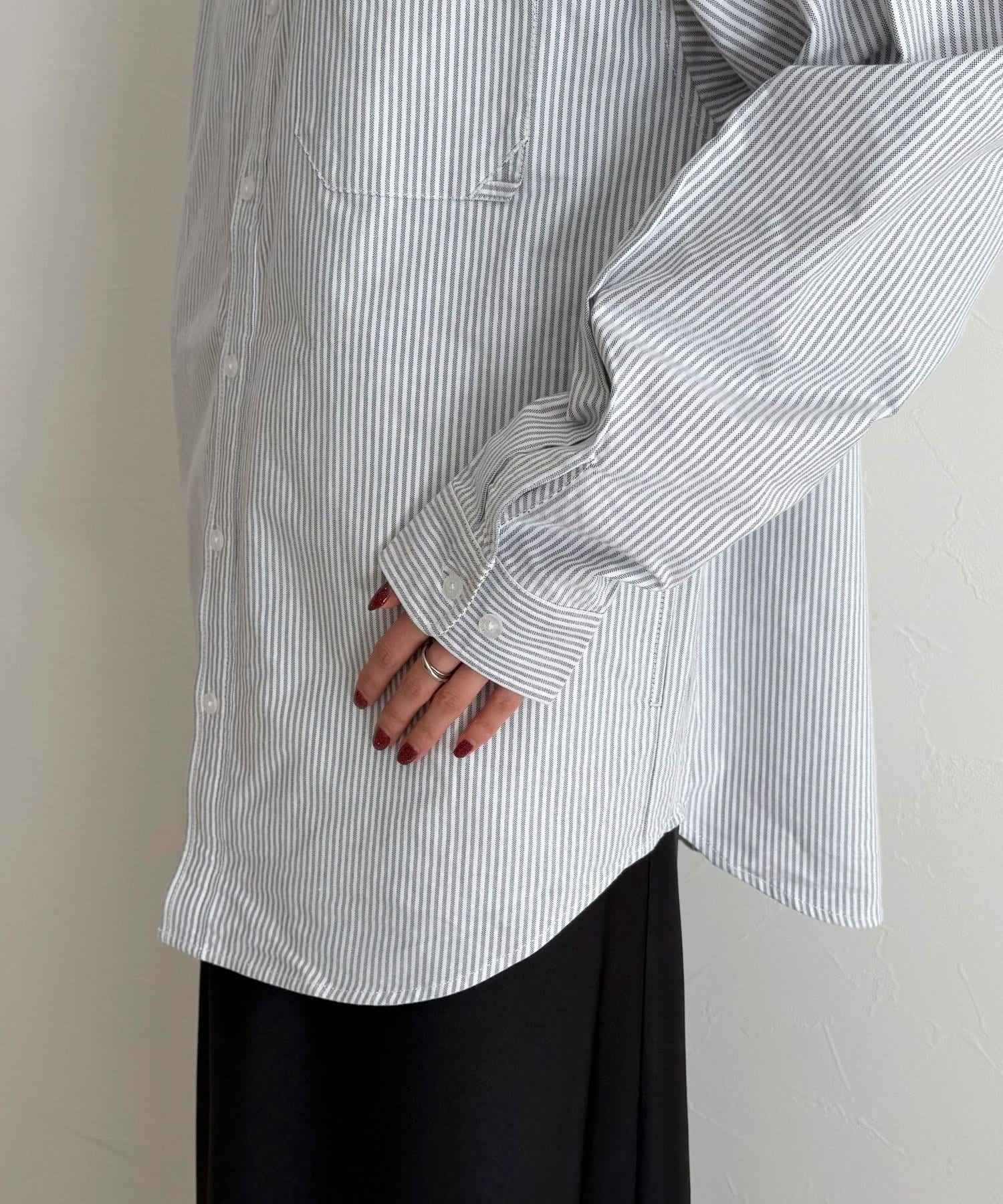 ・デニムやチノ、スラックスなどボトムを選ばず合わせやすく、デイリーコーデに取り入れやすい一着です
