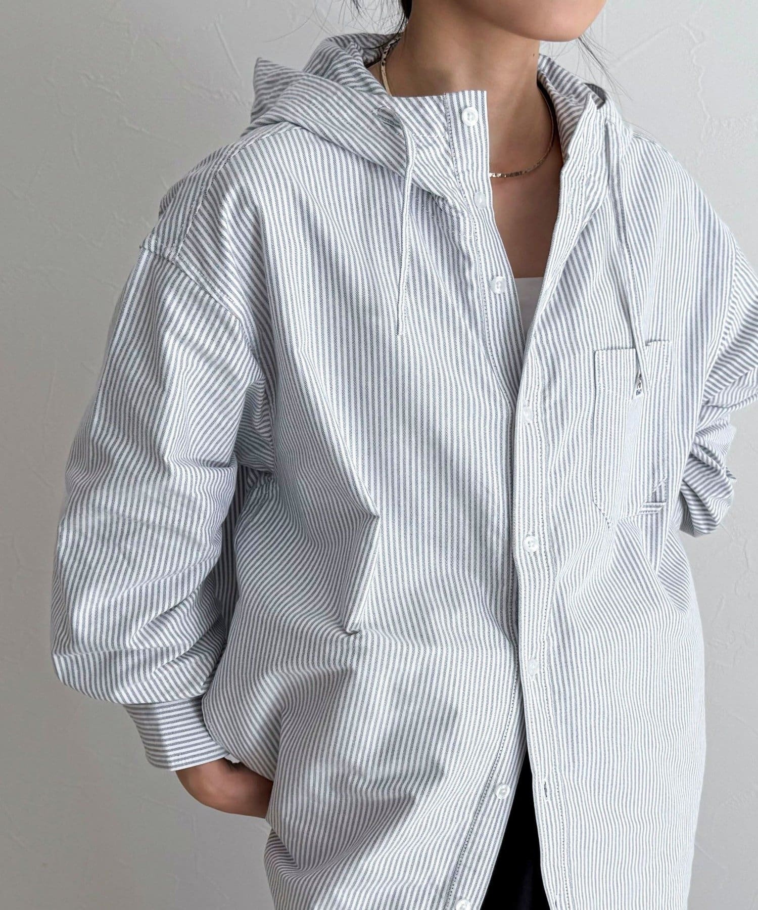 シャツ感覚で羽織れる、大人カジュアルフーディ