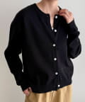 ・柔らかなコットン素材のラウンドネックカーディガン