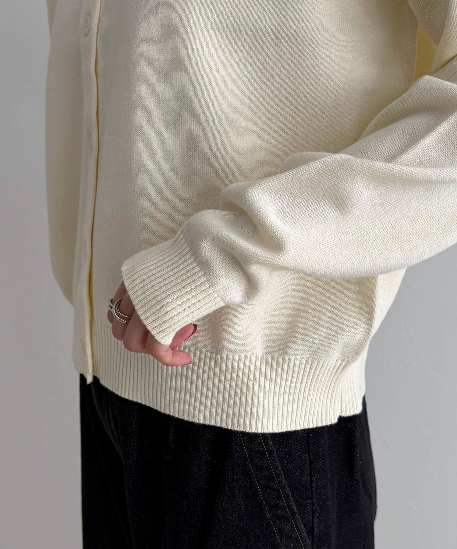 ・襟元、袖、裾はリブ仕様で程よくフィットしつつ上品な印象に