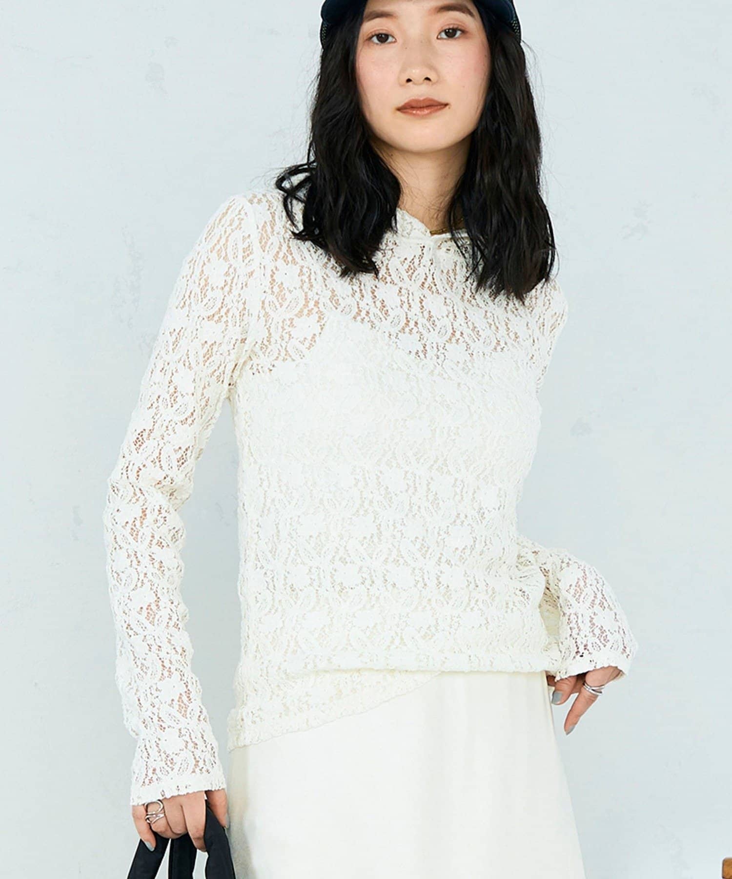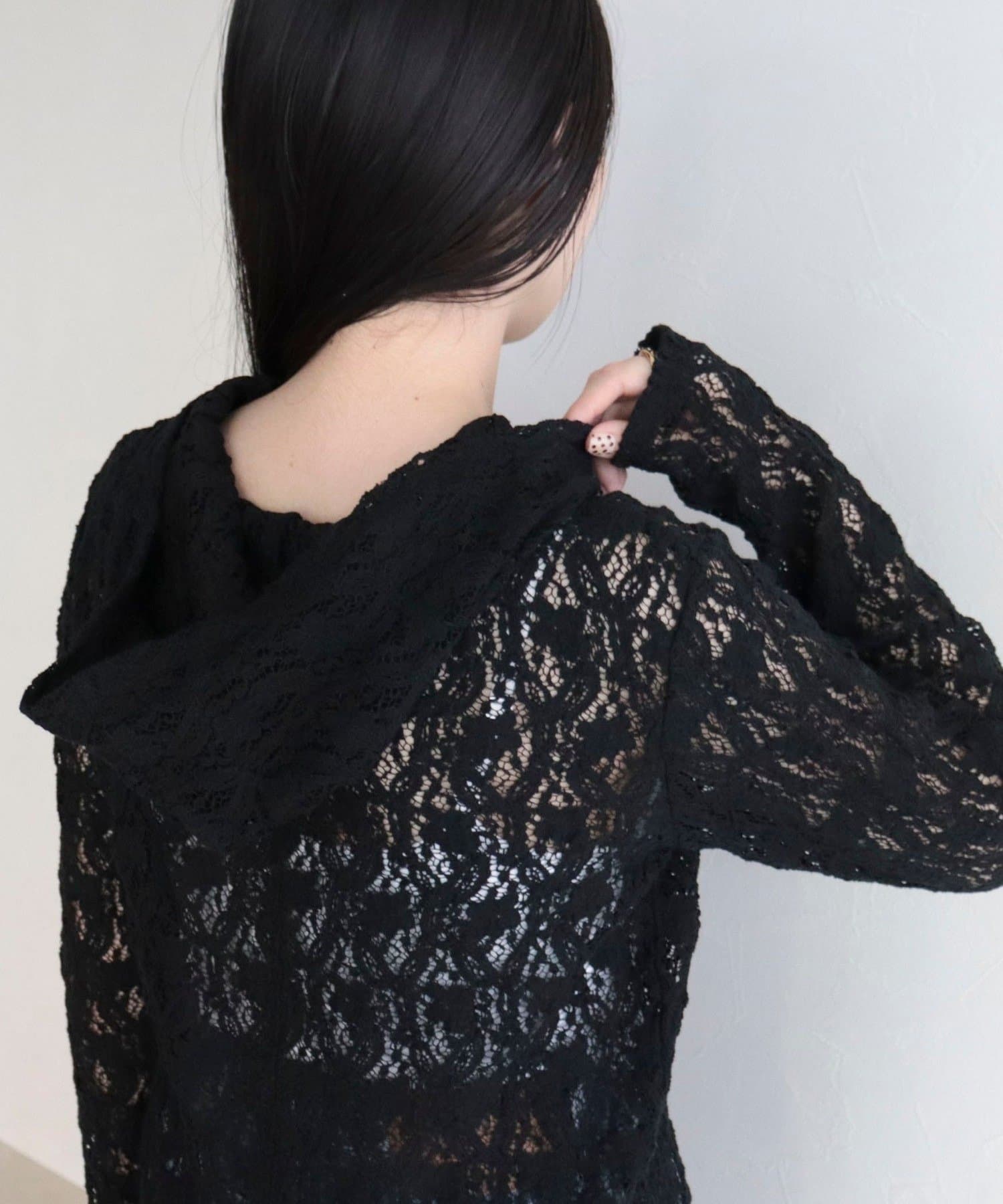 ・繊細なコットンレース素材を使用した軽やかなフーディ