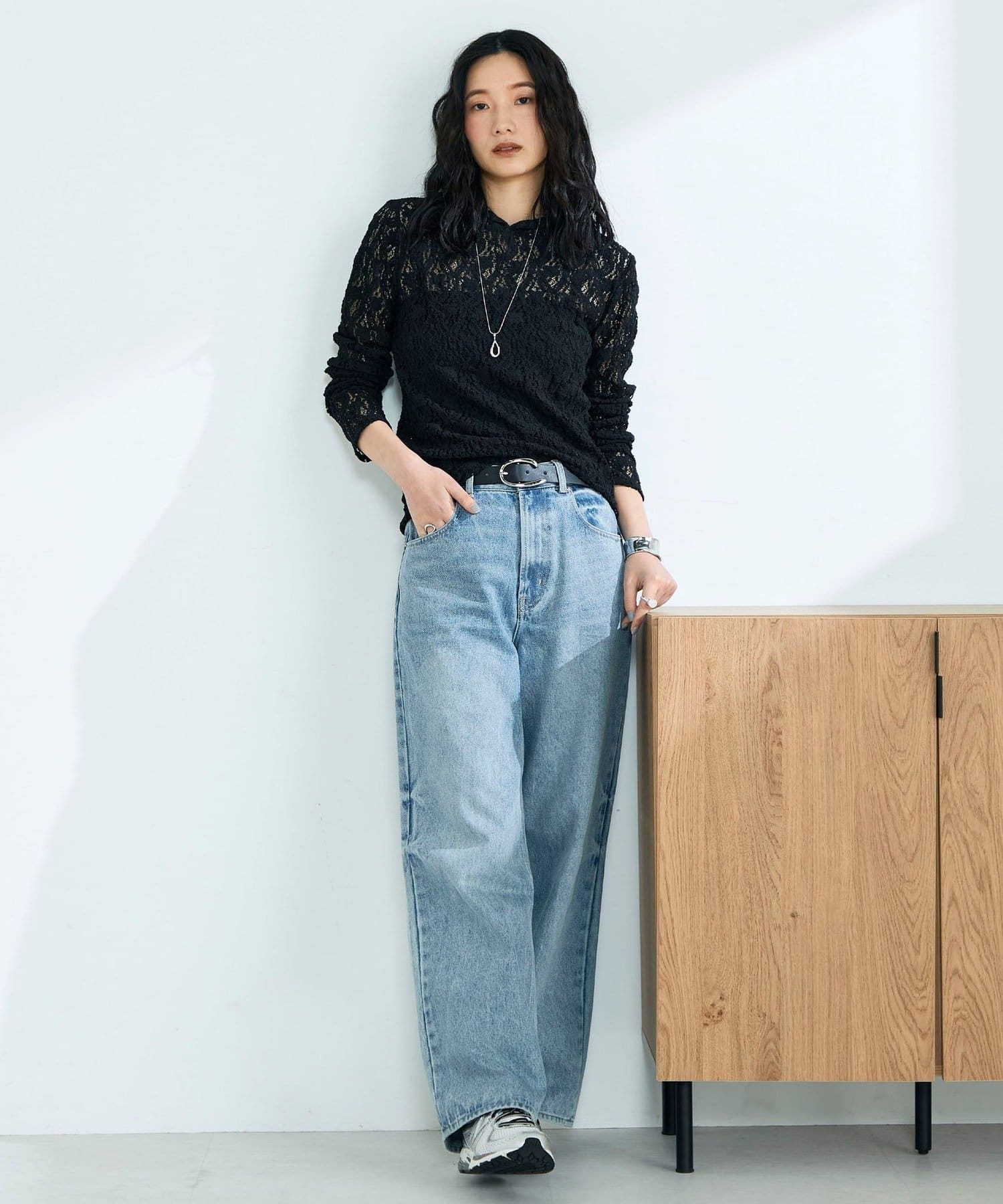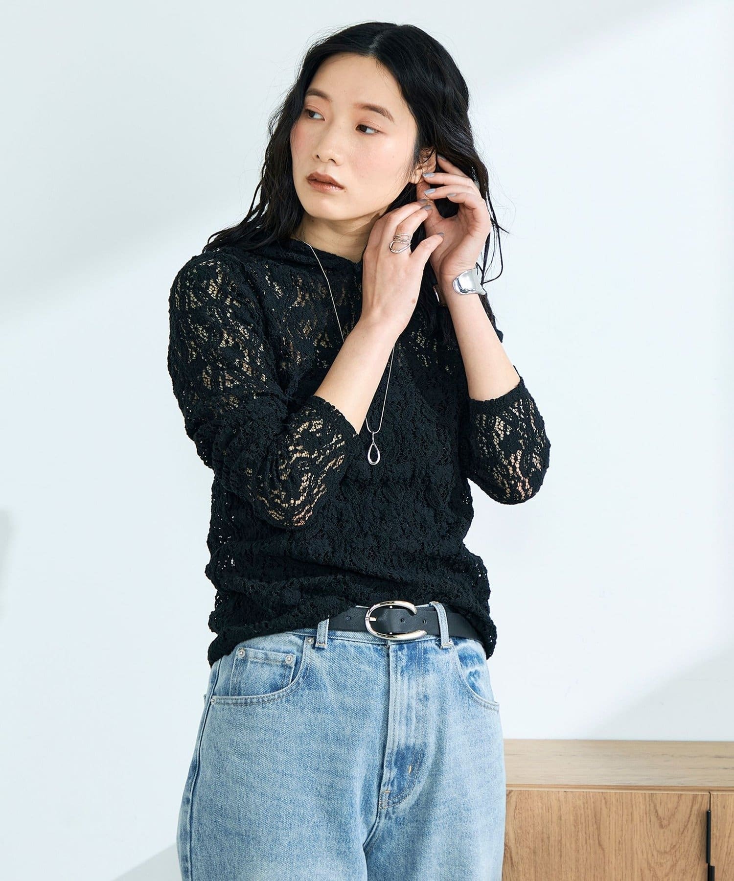 大人カジュアルに映えるレースフーディ
