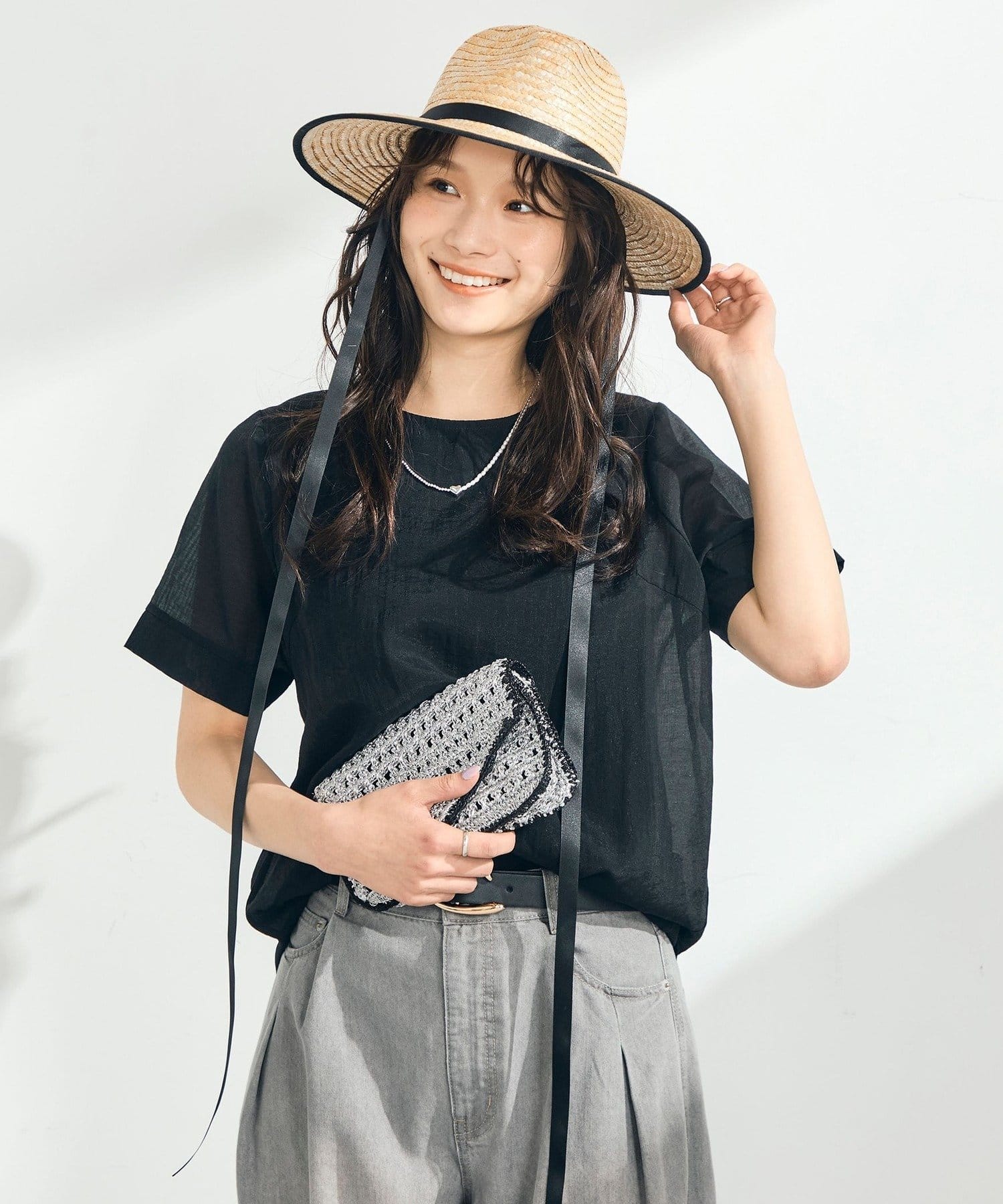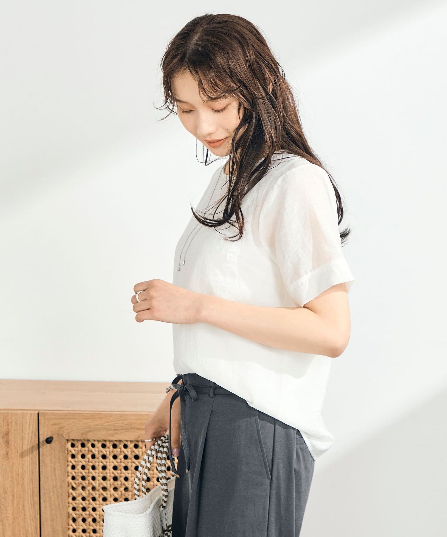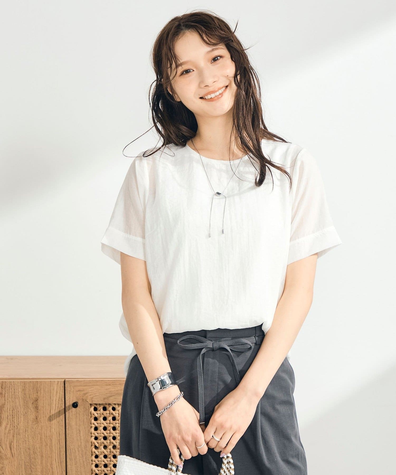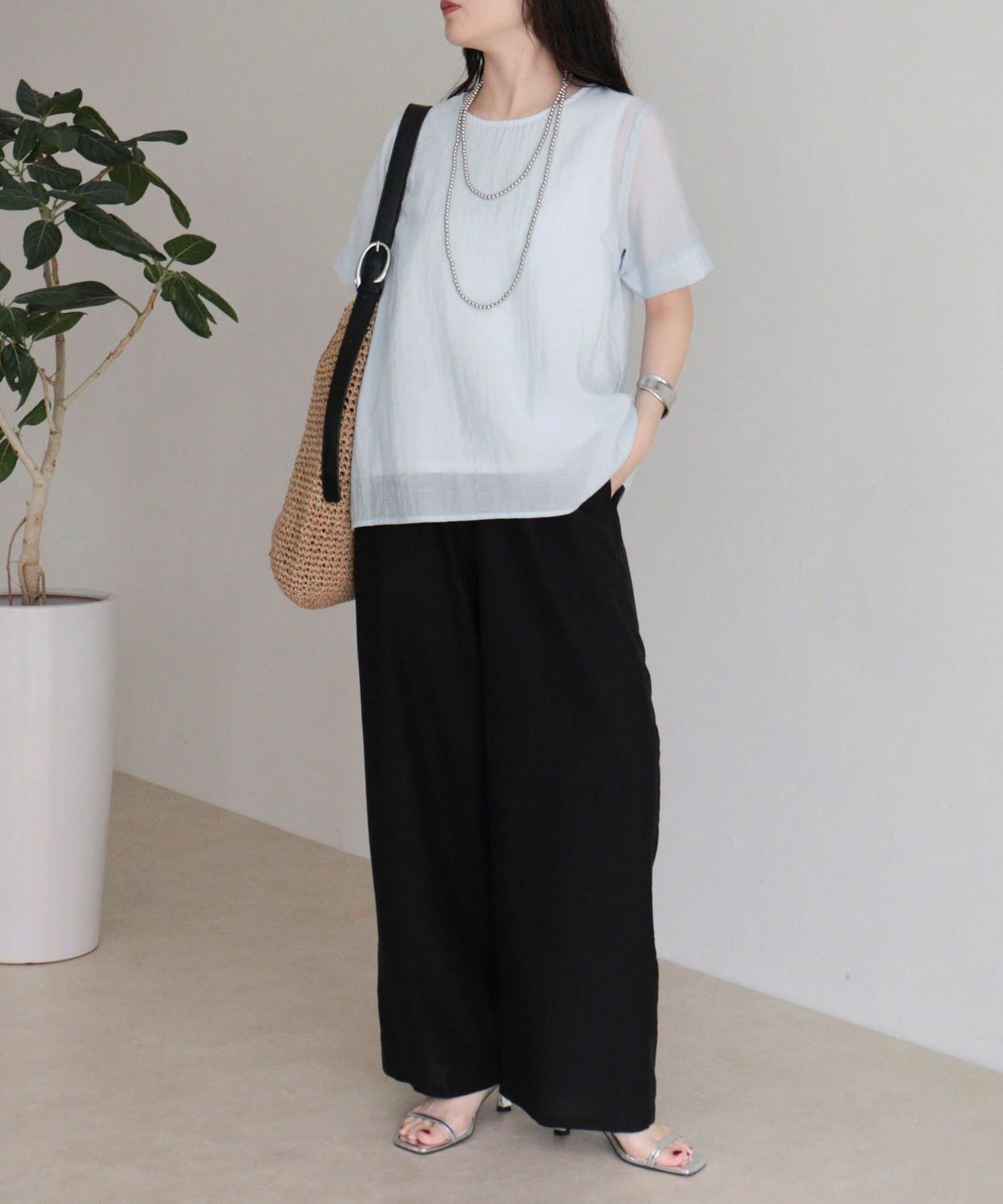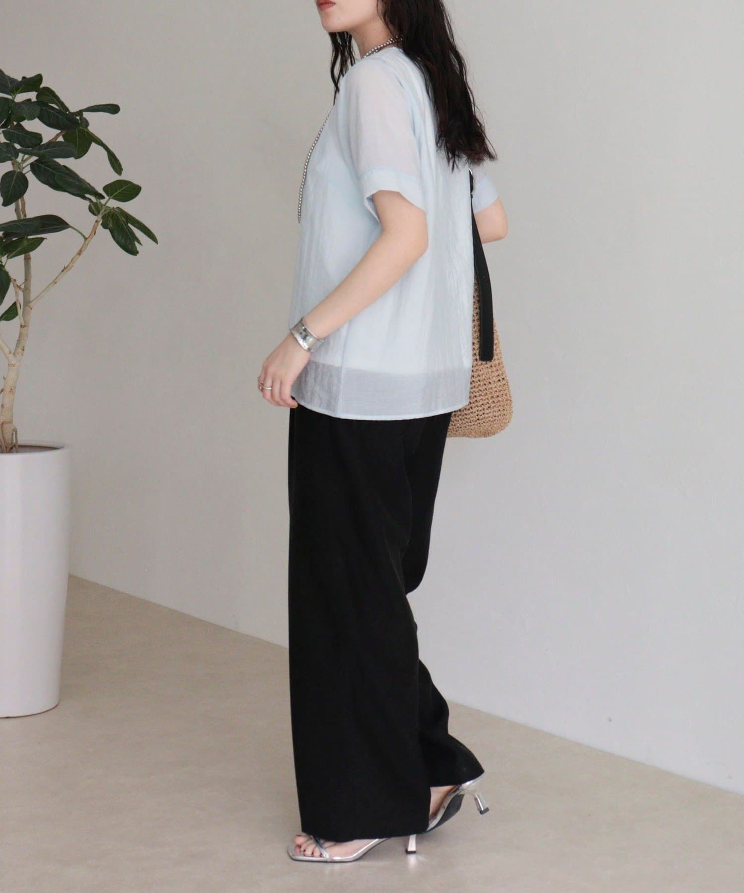 涼やかに重ねる、軽やかシアーブラウス