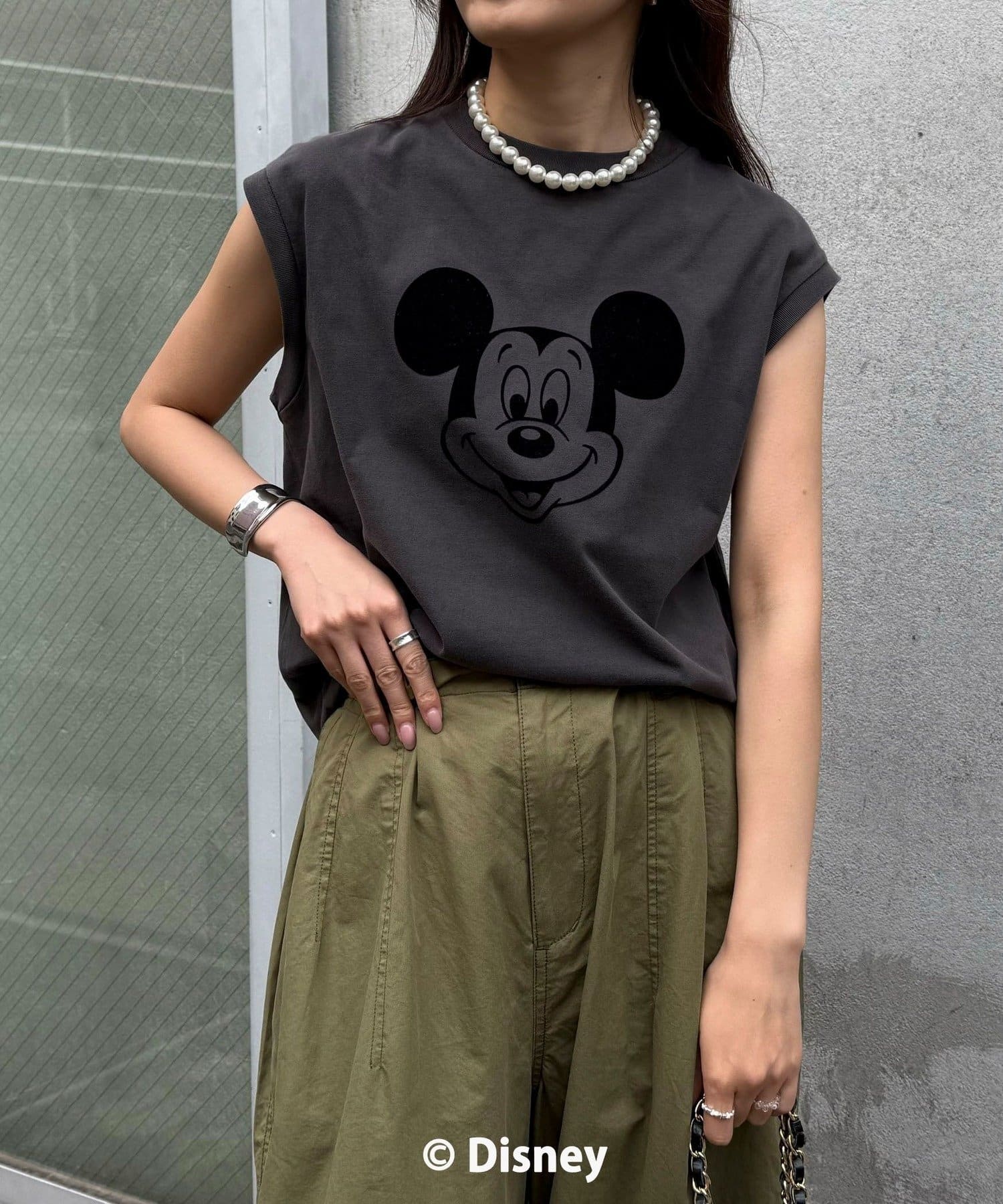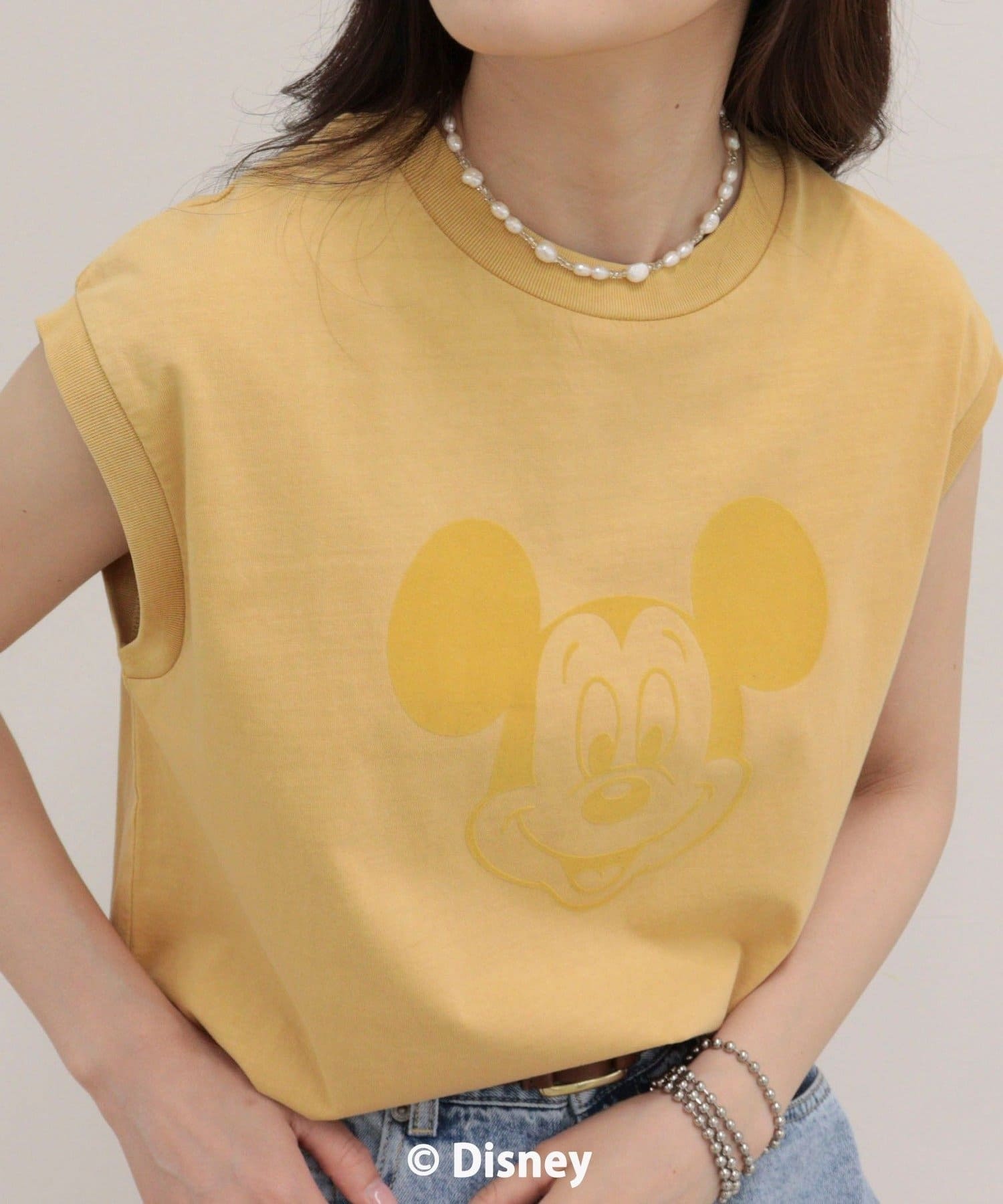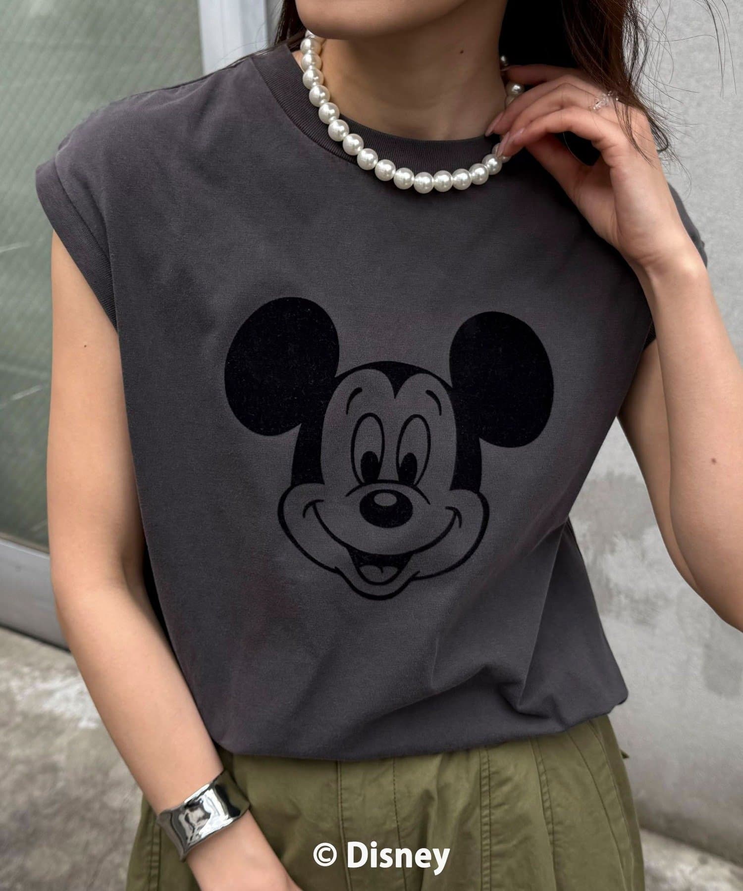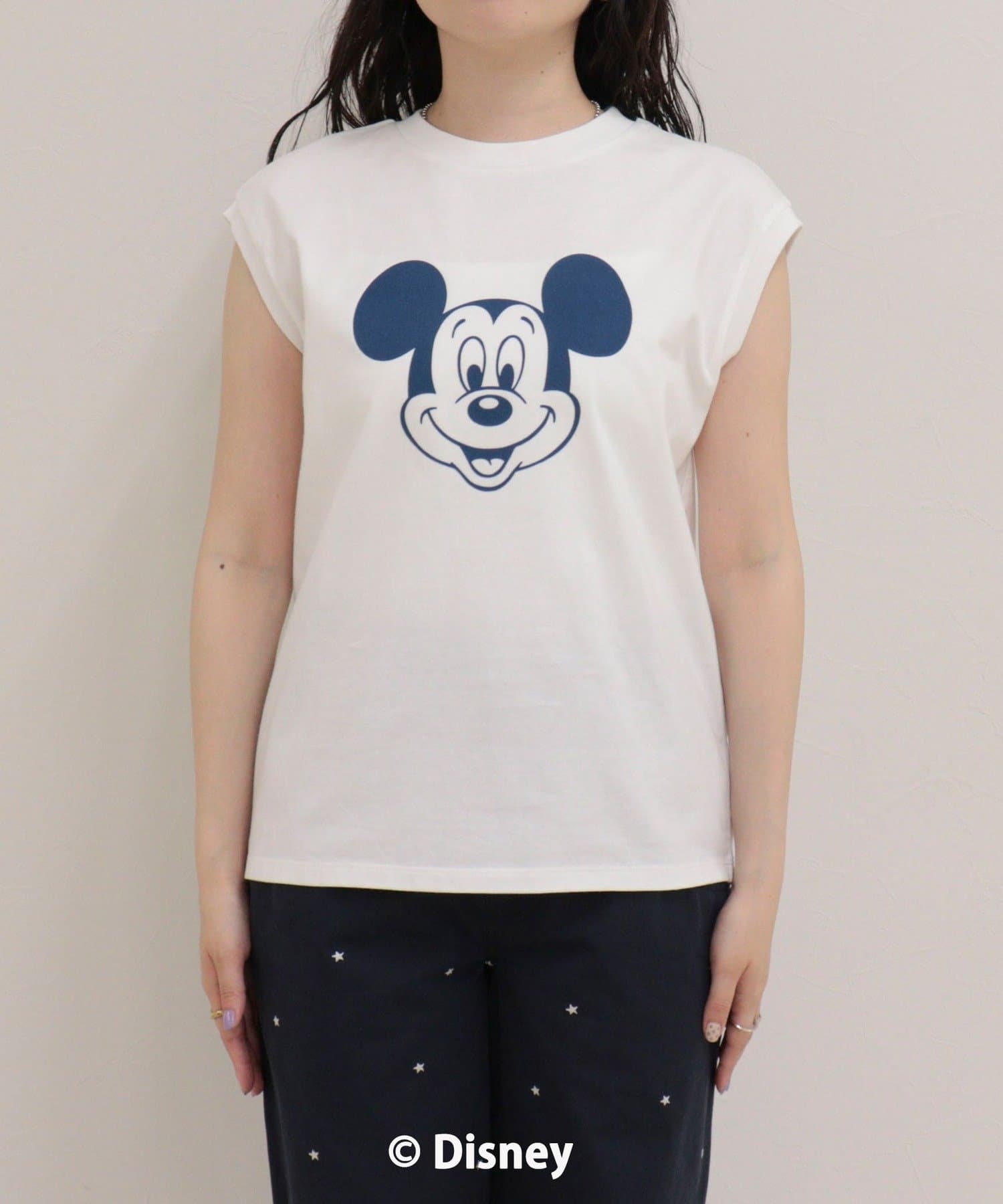 一枚でサマになるMICKEYフェイスプリントノースリーブTシャツ