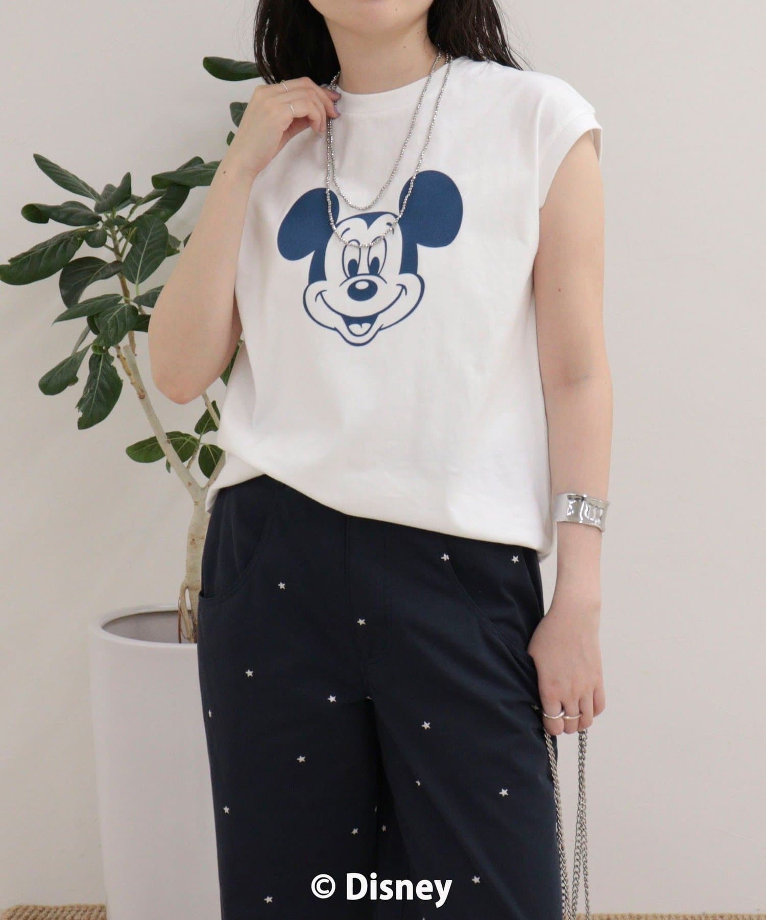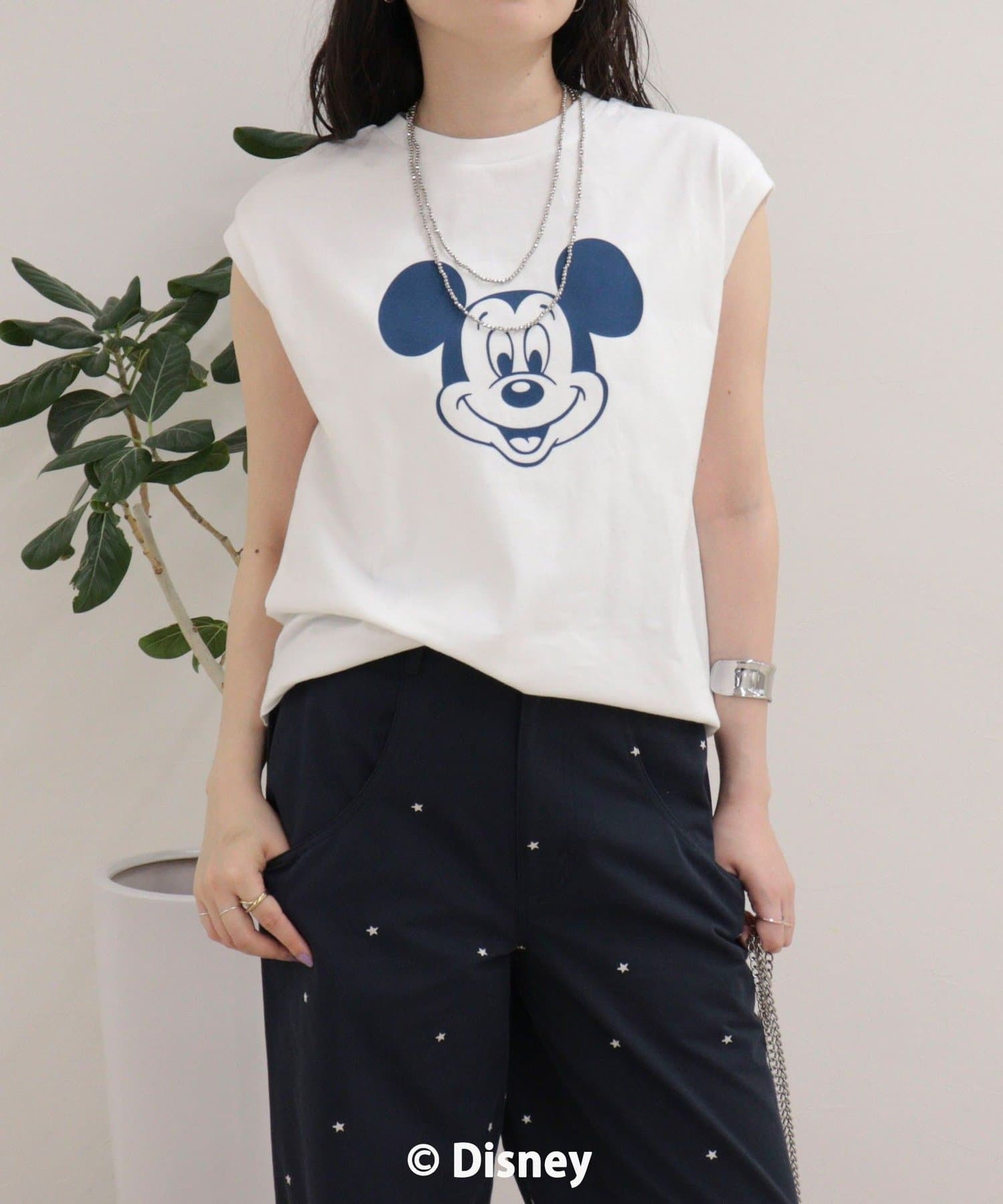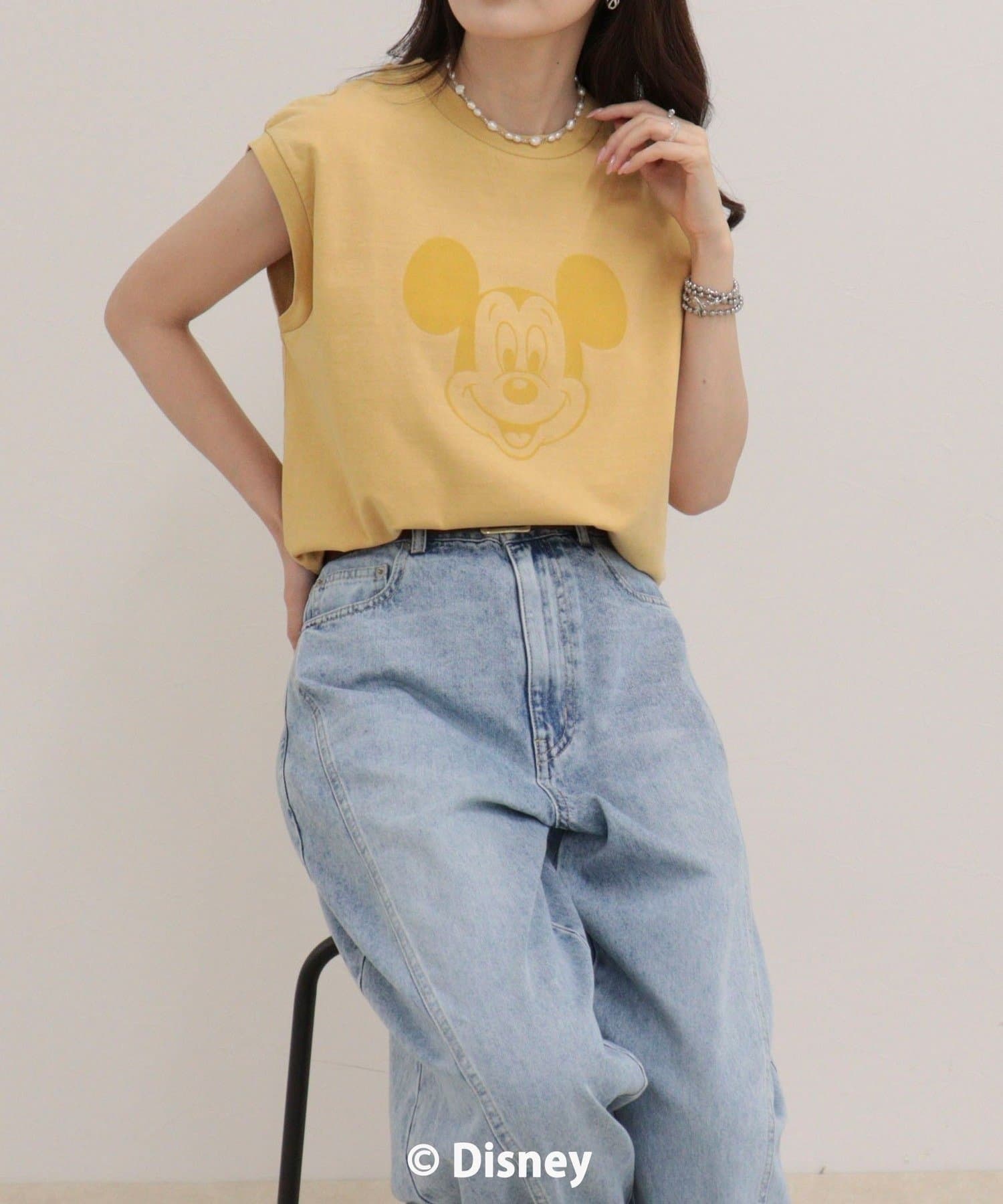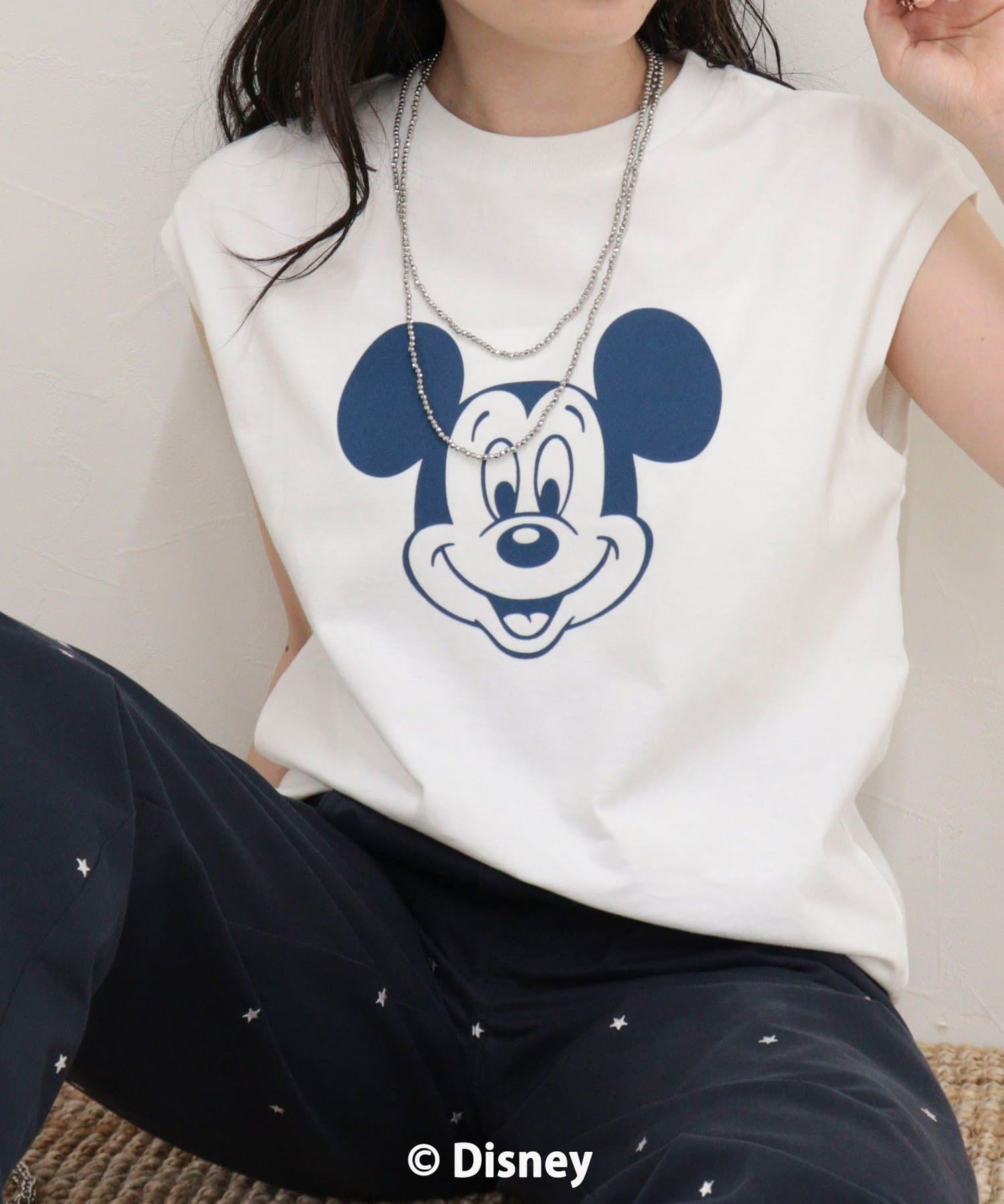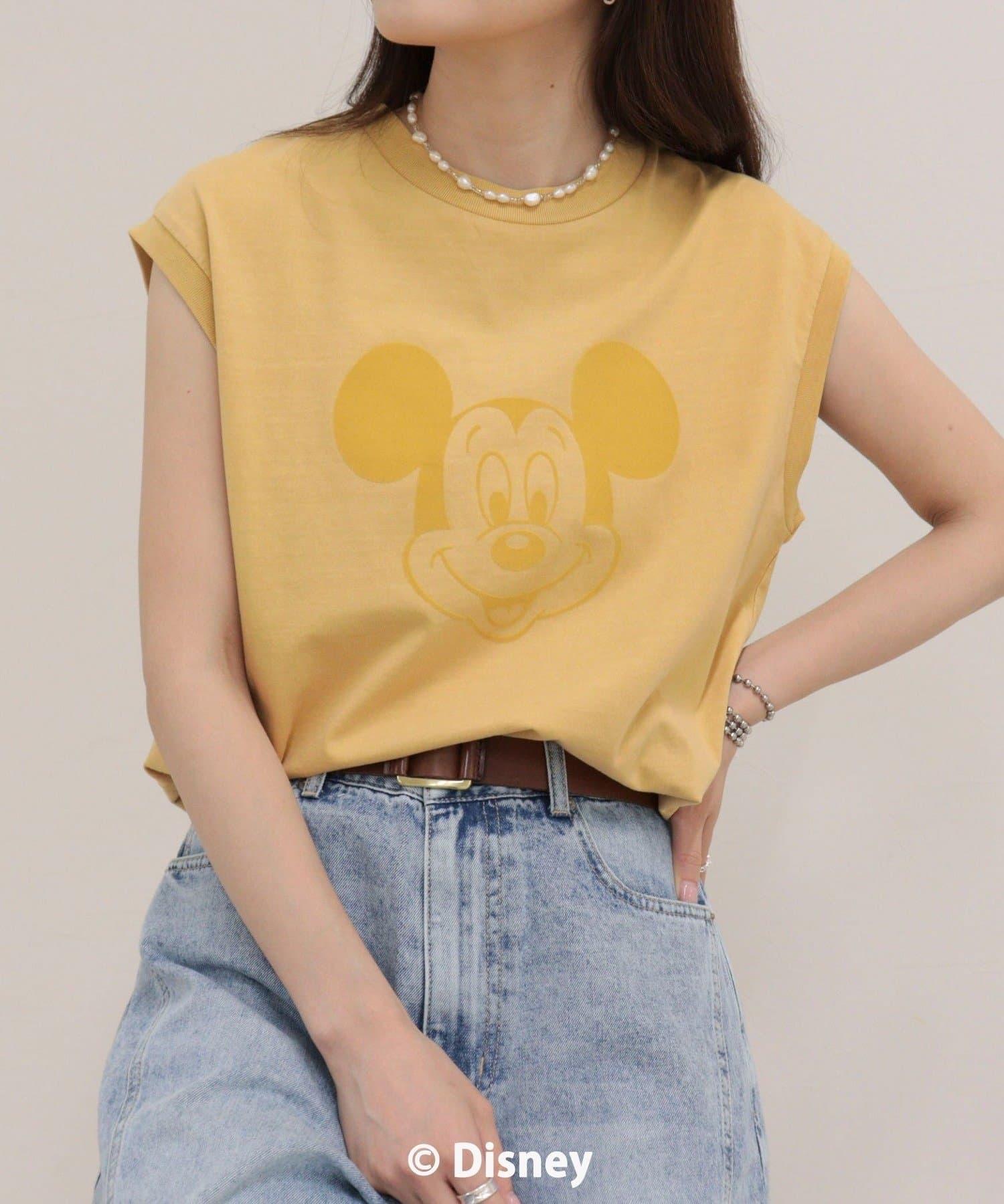 一枚でサマになるMICKEYフェイスプリントノースリーブTシャツ