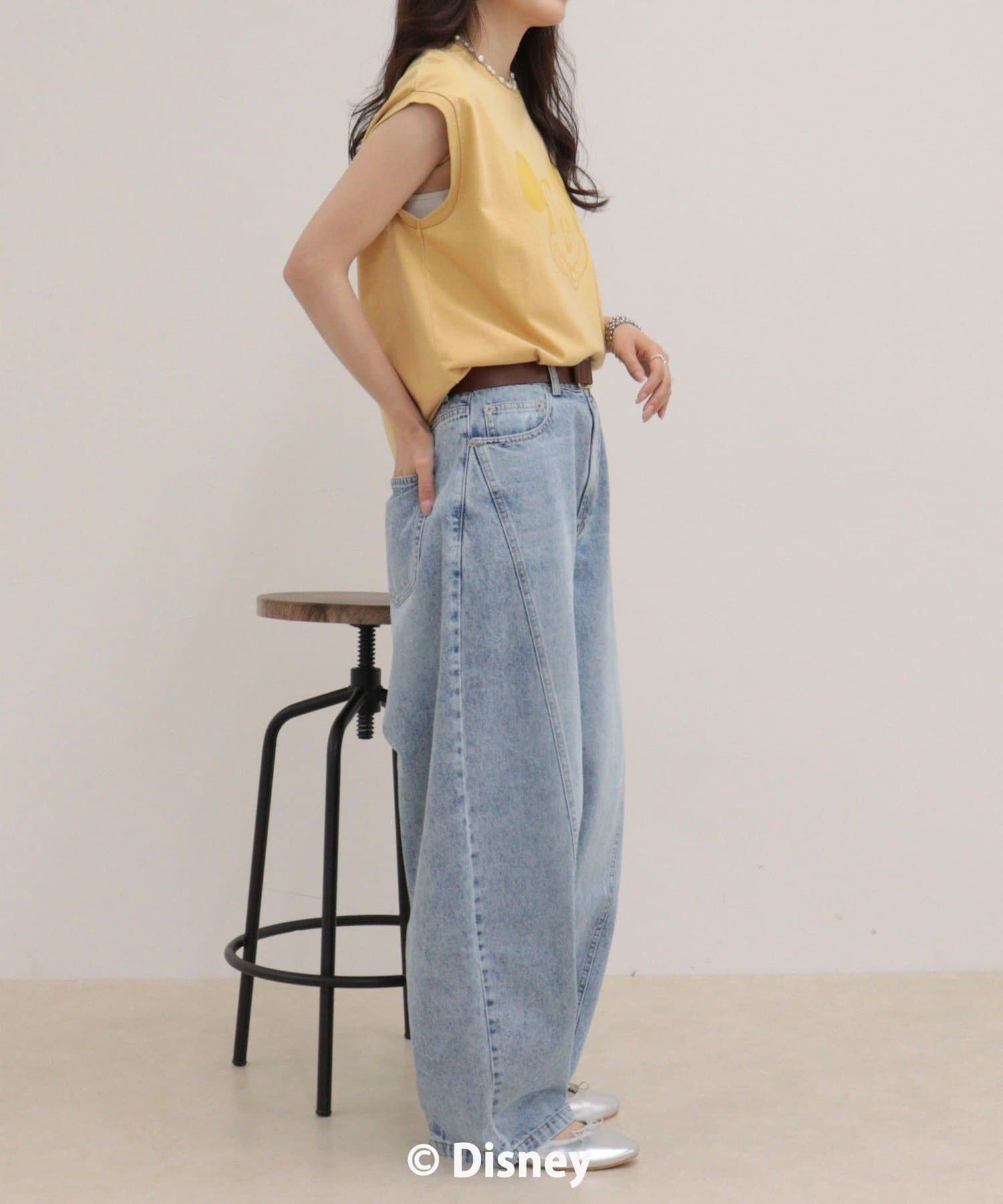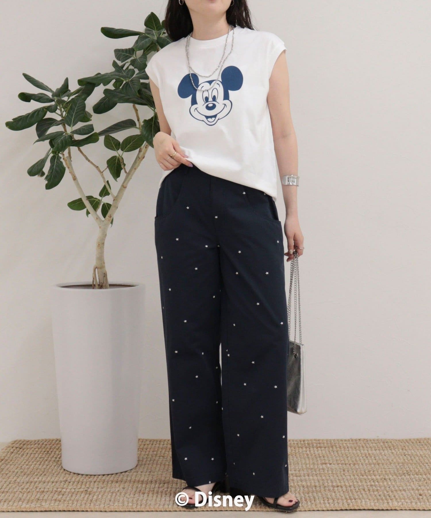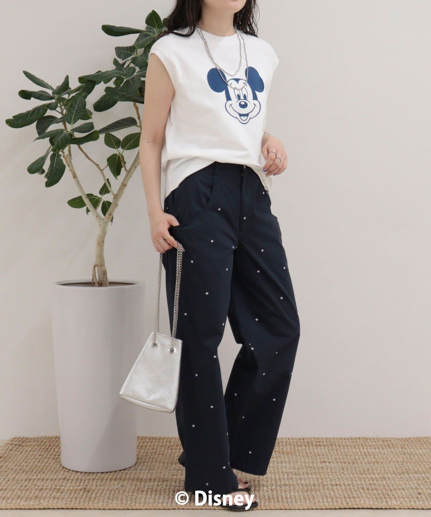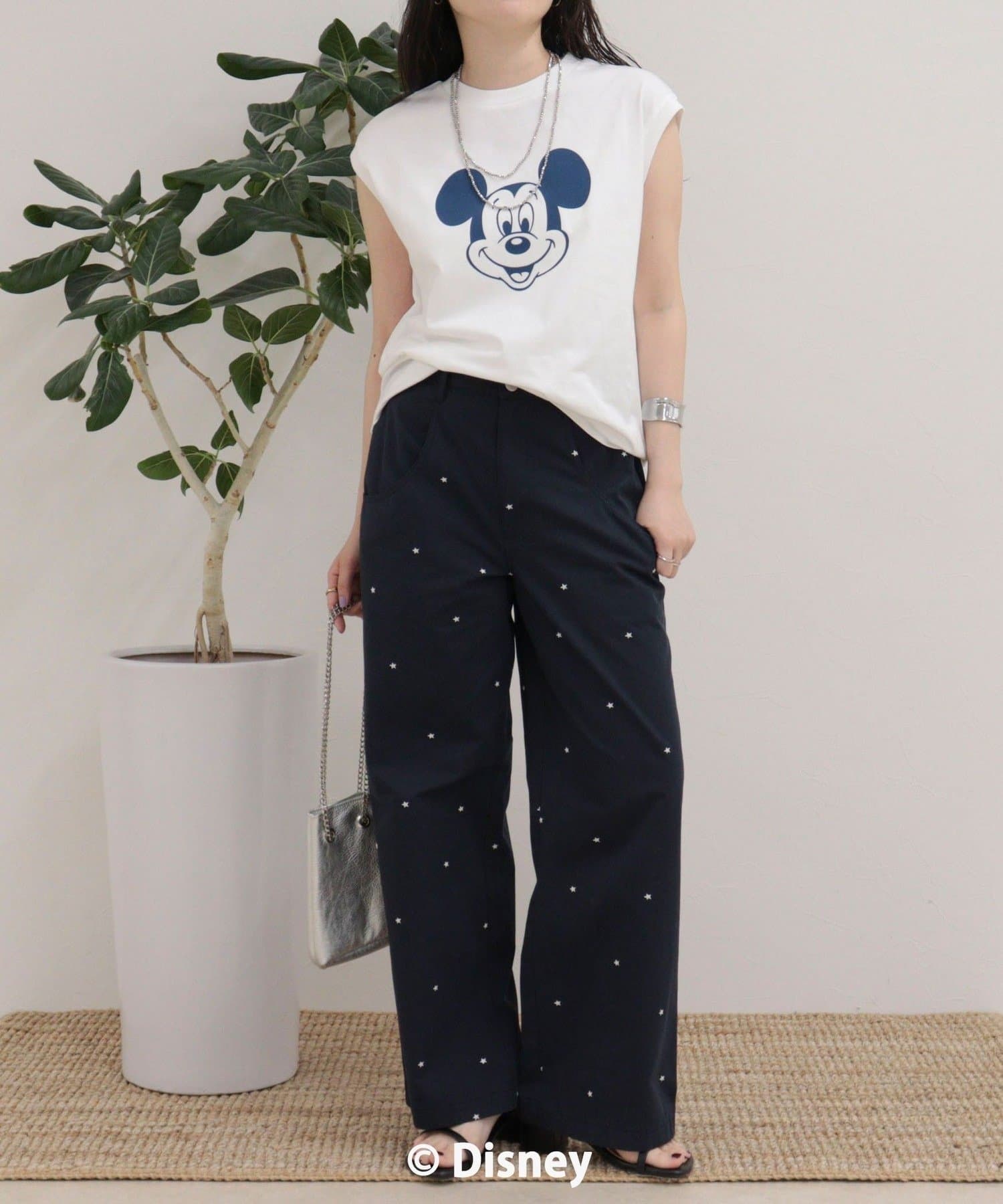 一枚でサマになるMICKEYフェイスプリントノースリーブTシャツ