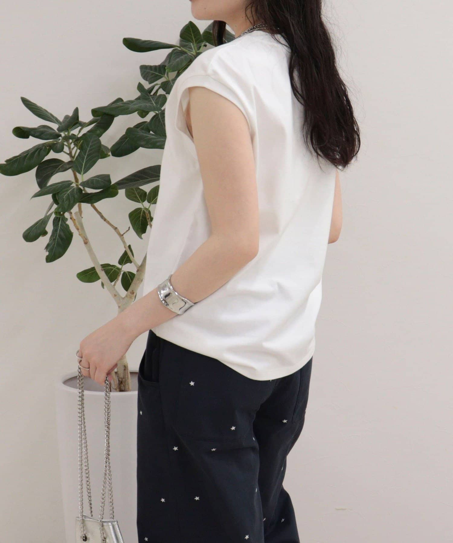 ・肩に少しかかる絶妙なスリーブで、華奢見え効果も◎