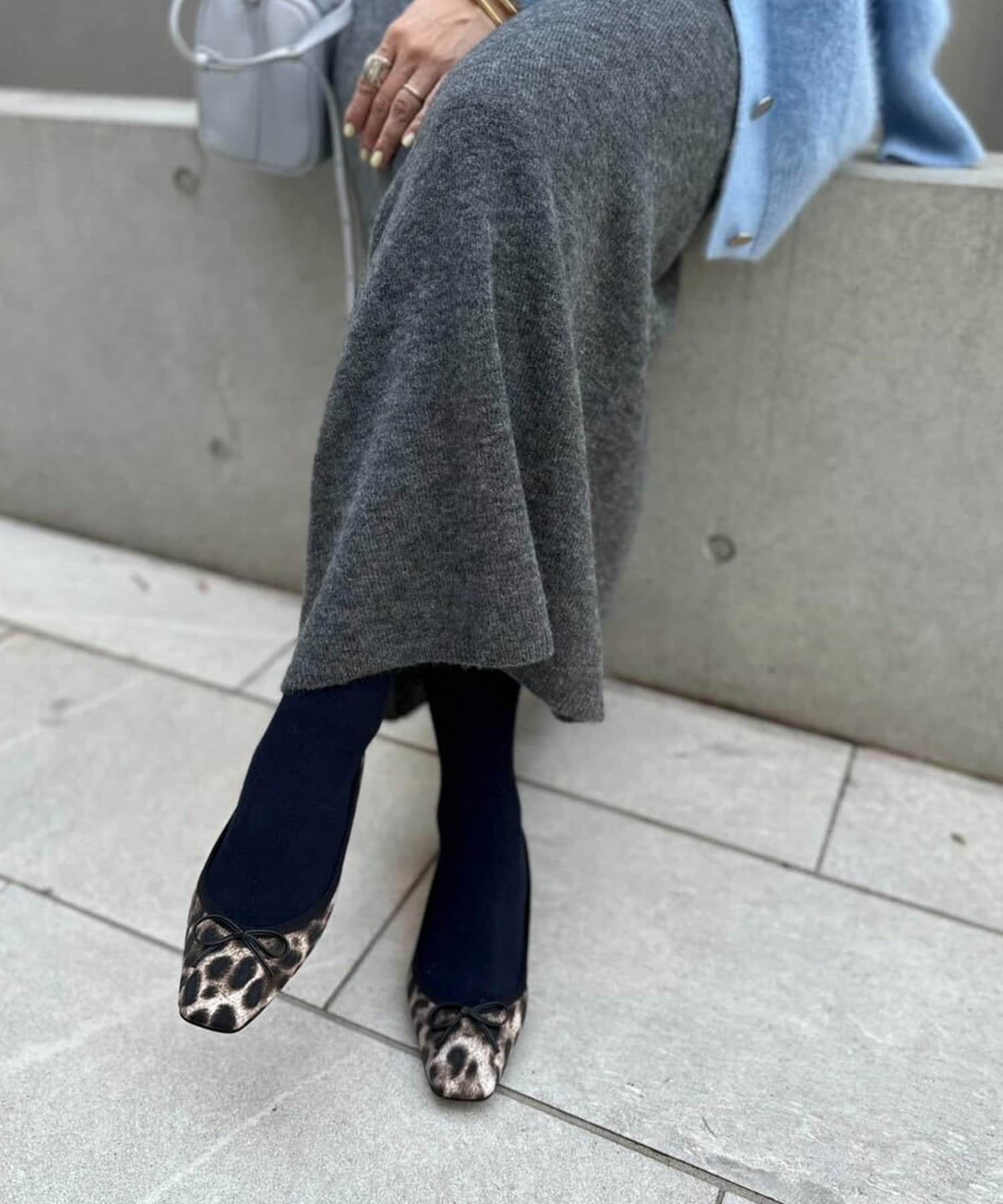 ・上品なスクエアトゥと、コーディネートにスパイスを与えてくれるレオパード柄がポイントのバレエシューズ