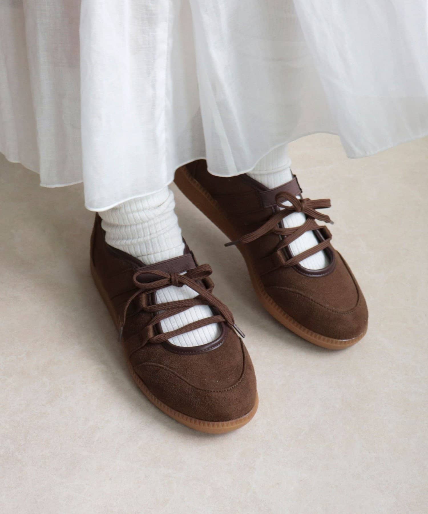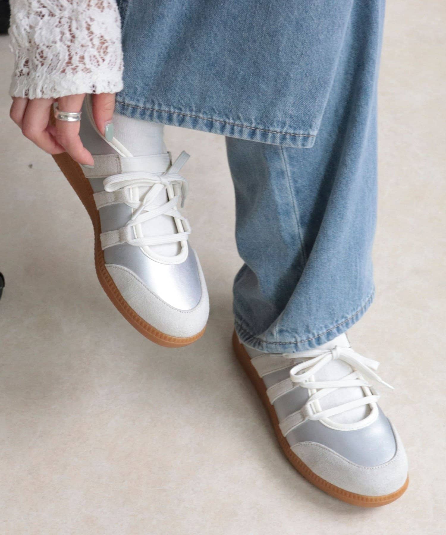 メリージェーンとスニーカーをかけ合わせたトレンドシューズ