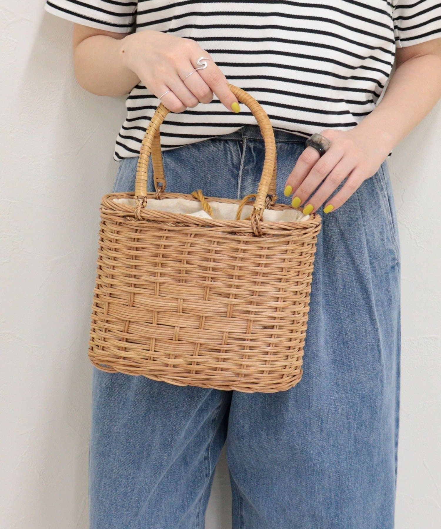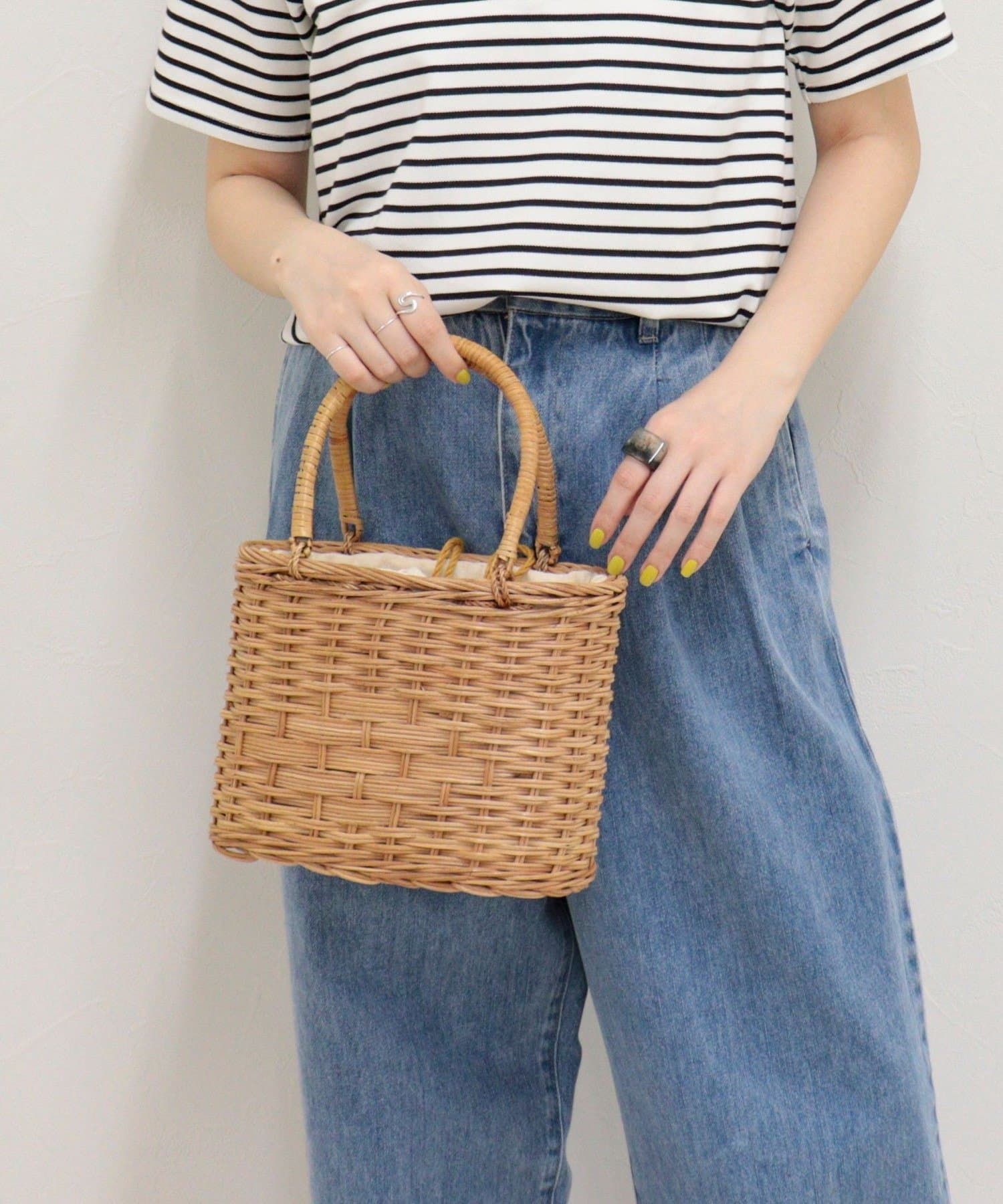 シーズンムード高まるラタン素材のボックス型トートバッグ