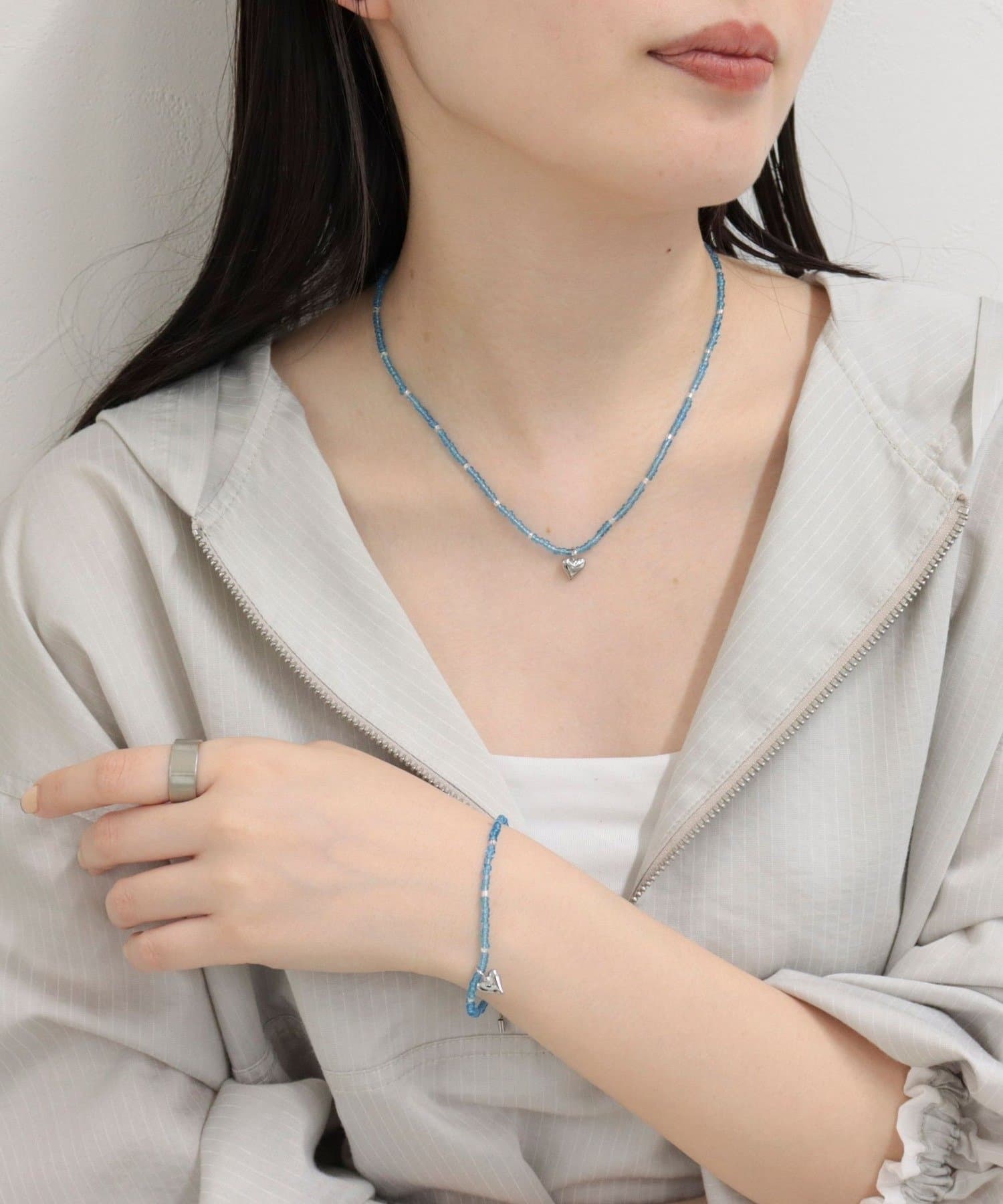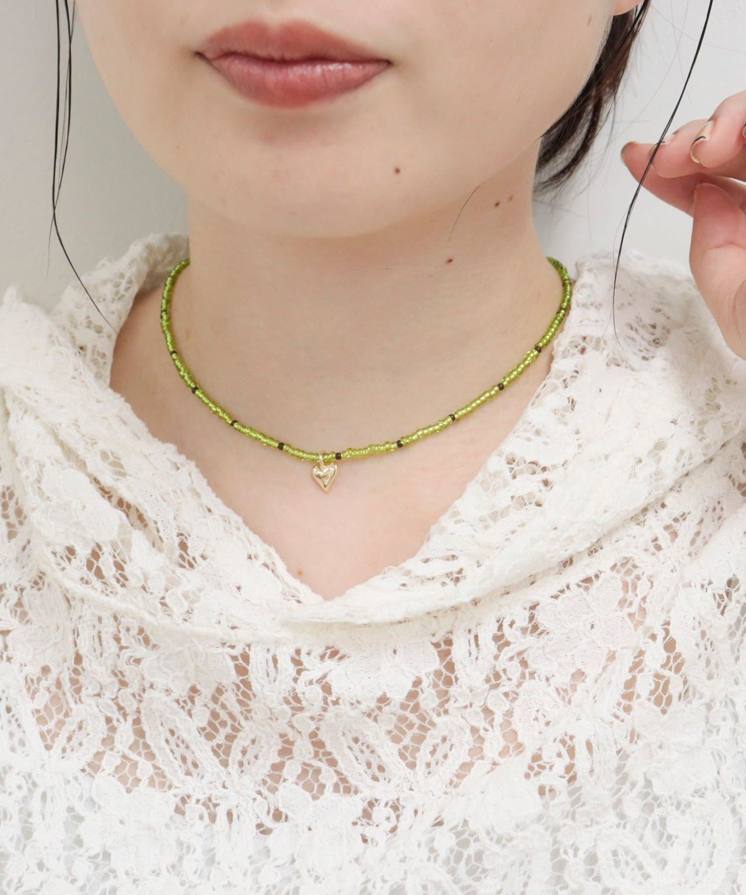 ビーズ×ハートトップネックレス