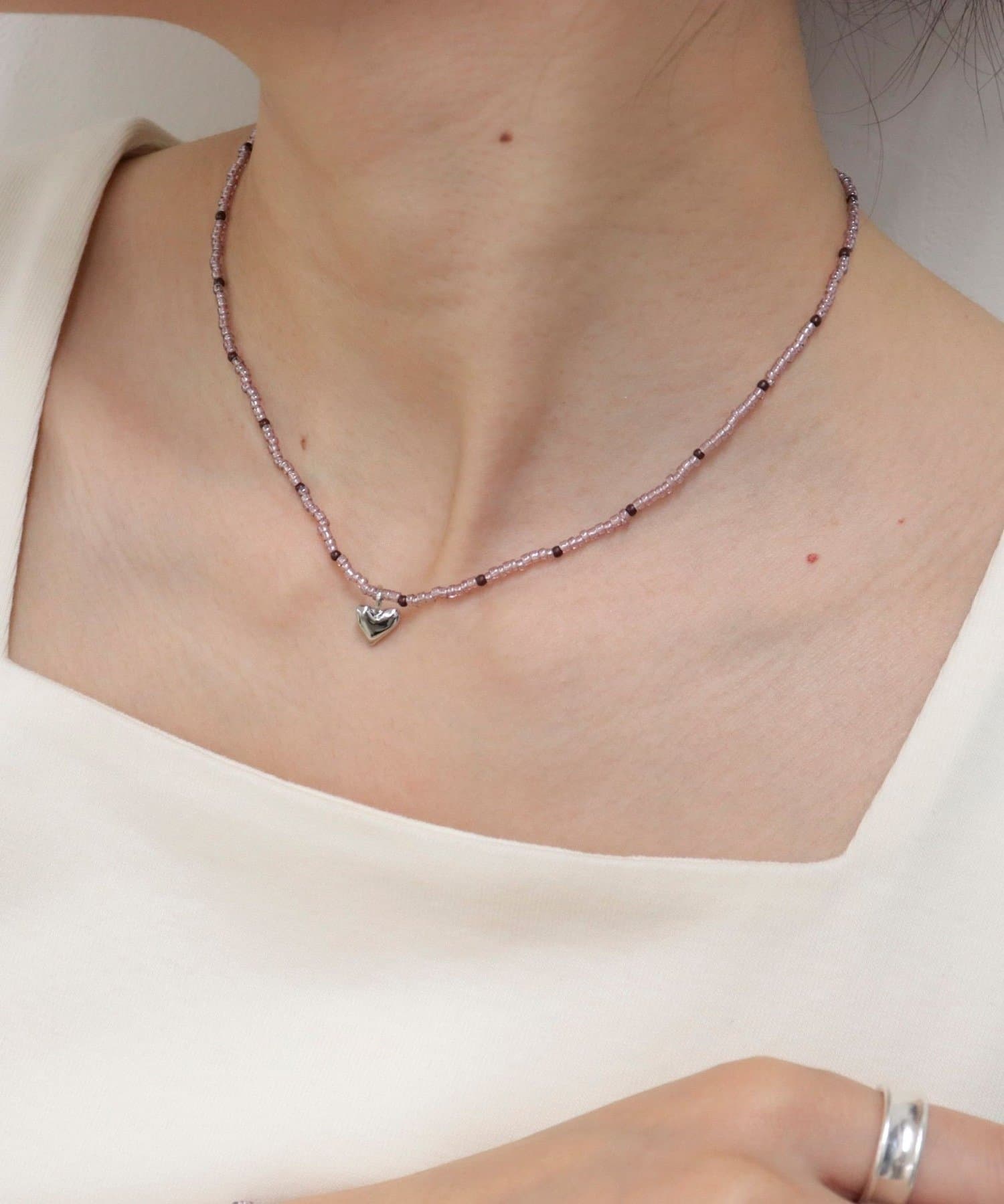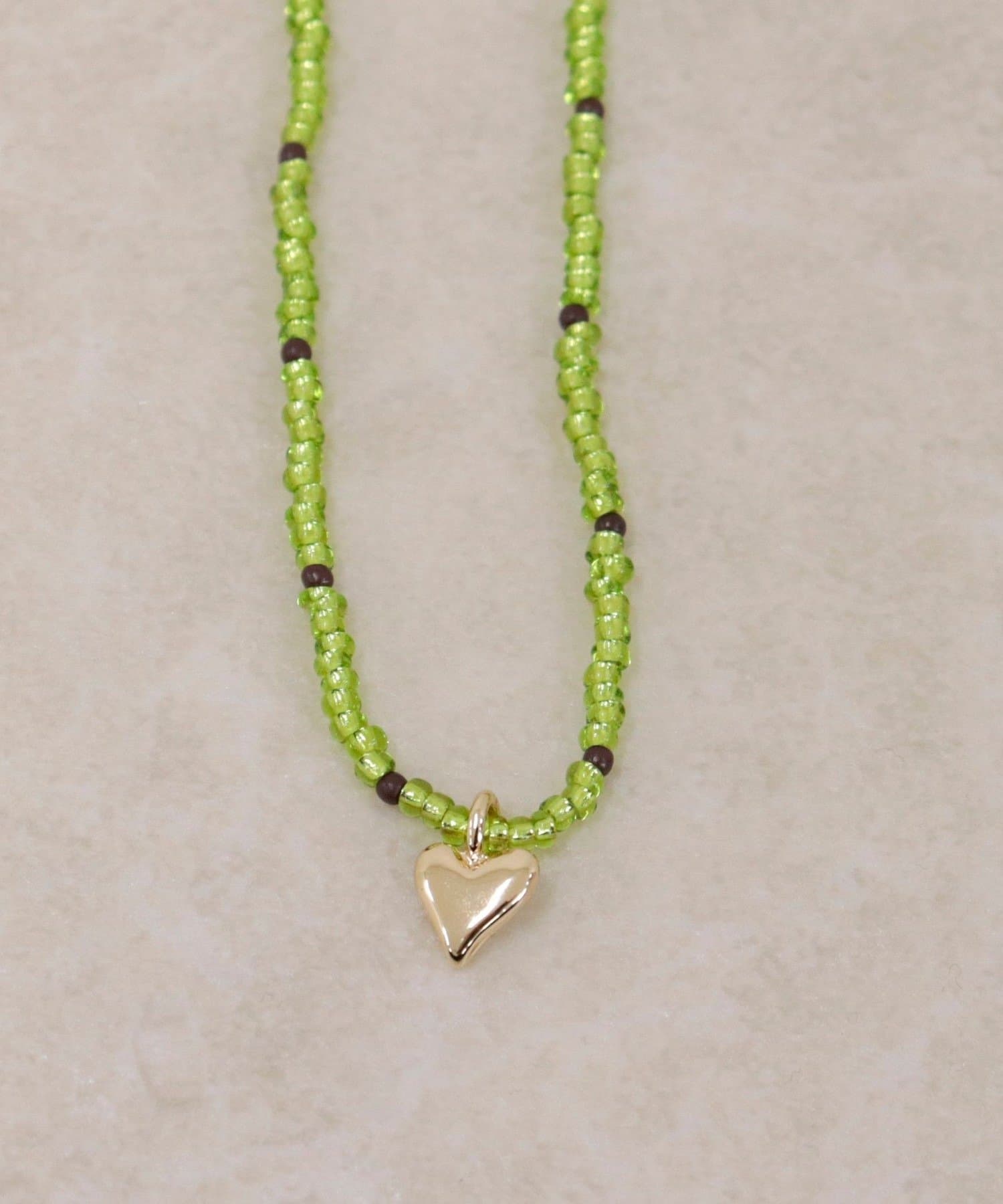 ・小さめのカラービーズ×ハートモチーフが大人可愛いネックレス