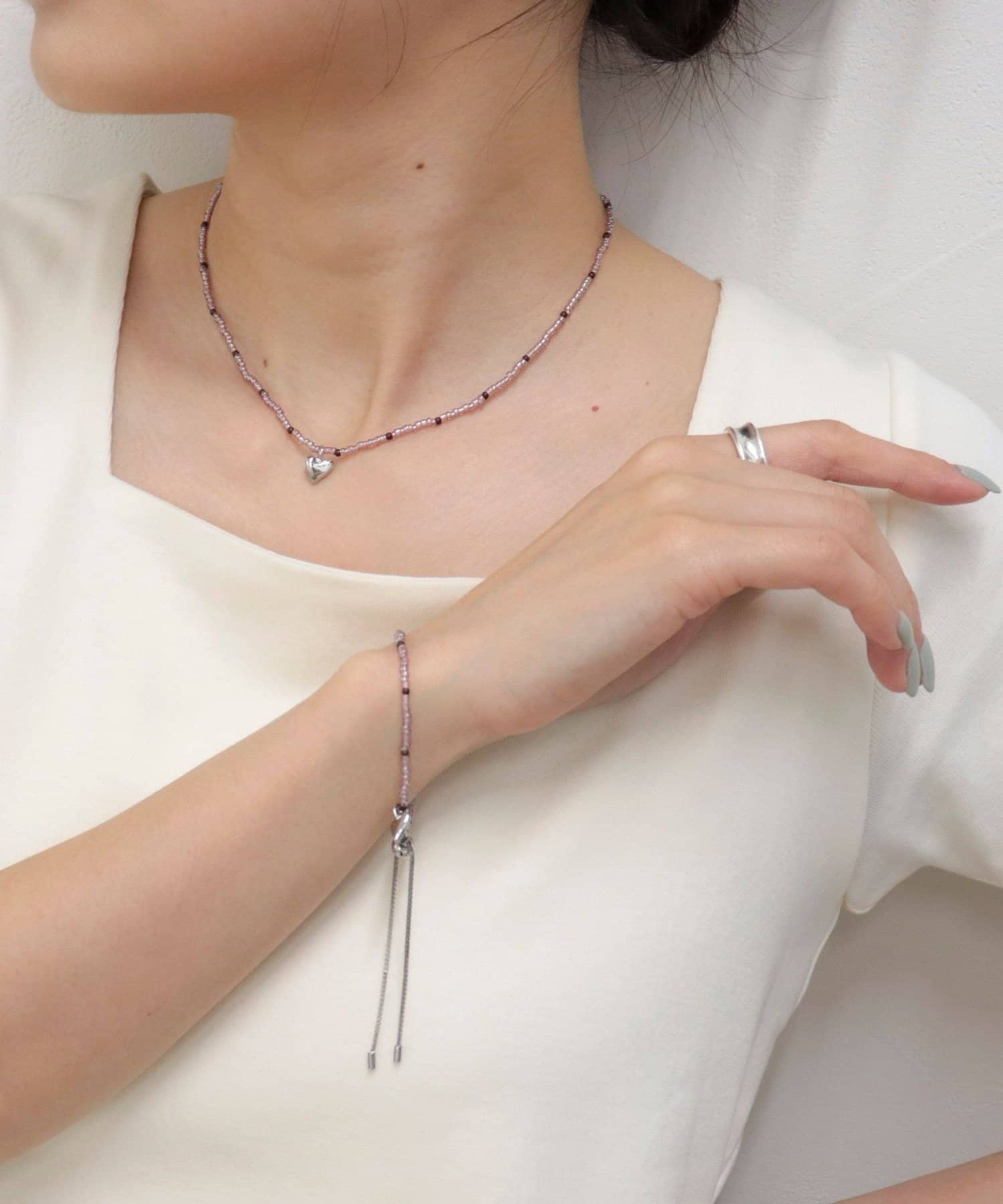 FREDY & GLOSTER(フレディ アンド グロスター) ビーズ×ハートトップネックレス
