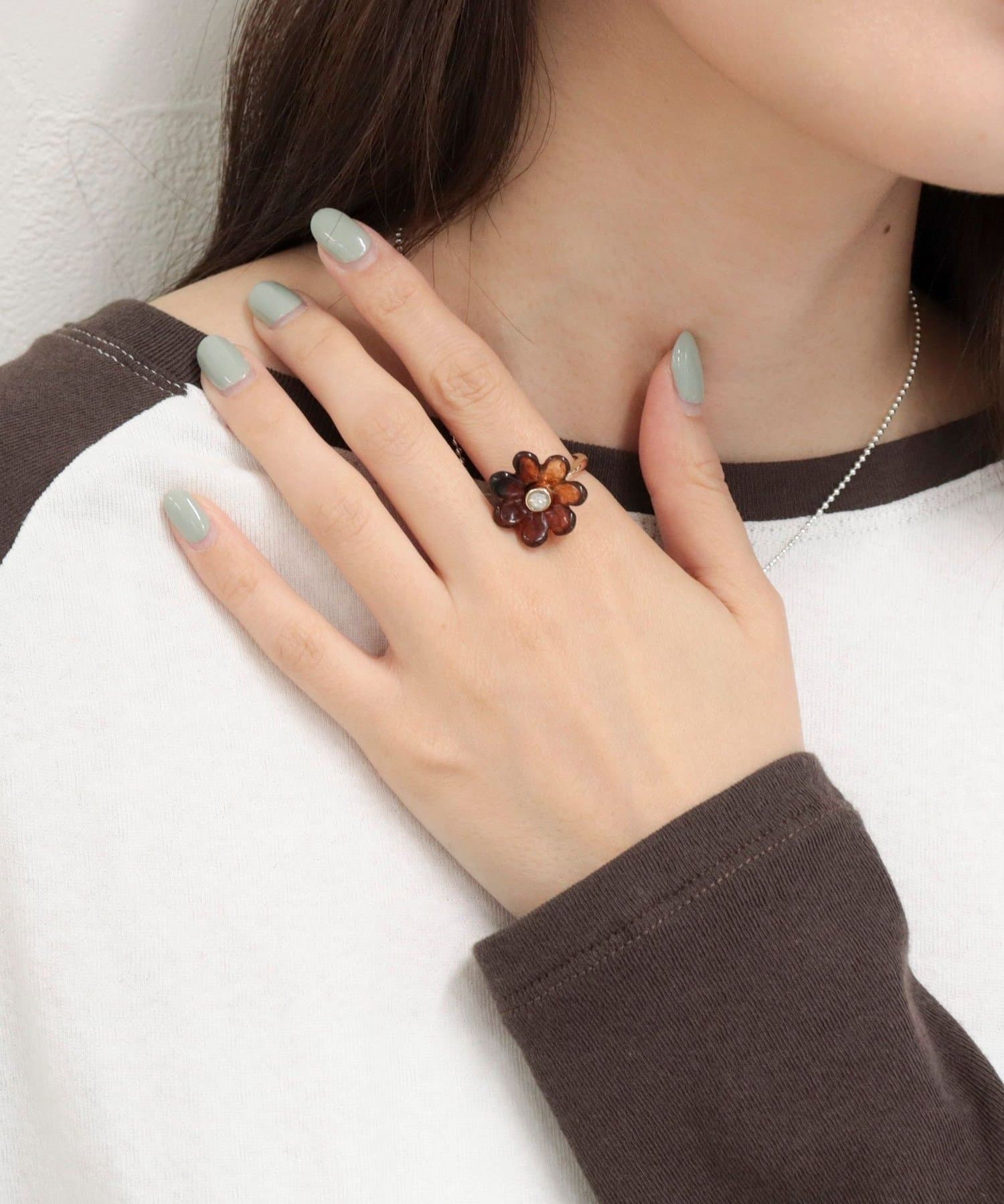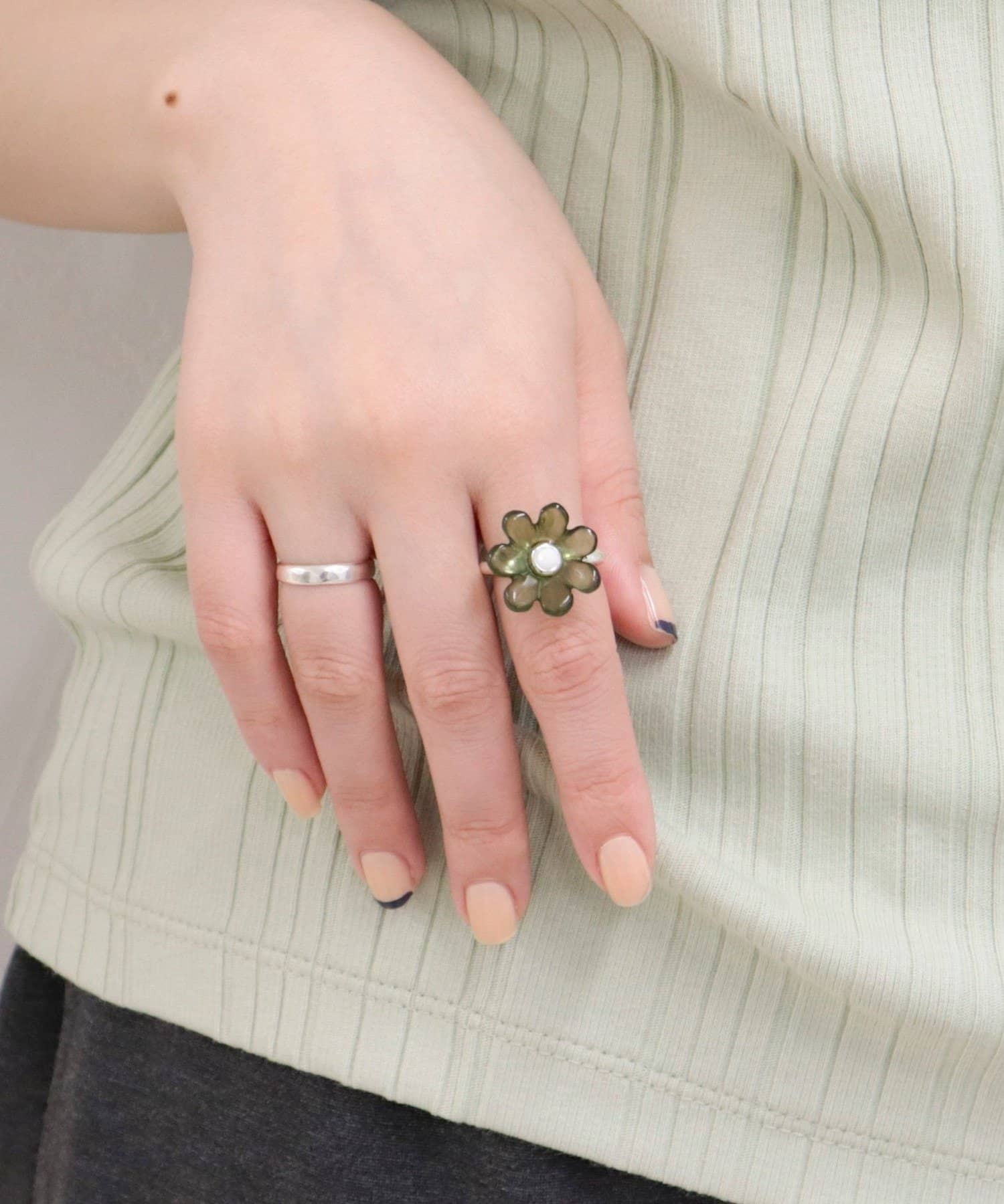 ・クリアの透け感が魅力のフラワーモチーフにビジューを組み合わせたリング