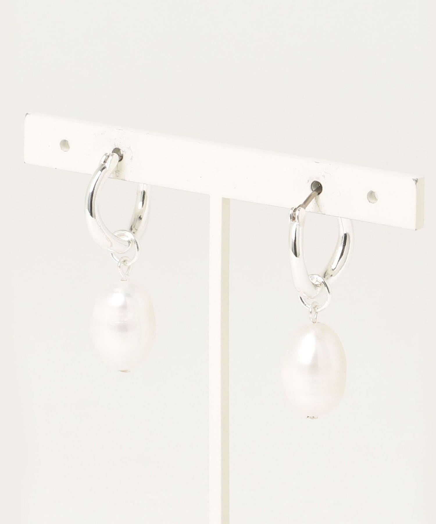 淡水パールがワンポイントになったフープピアス