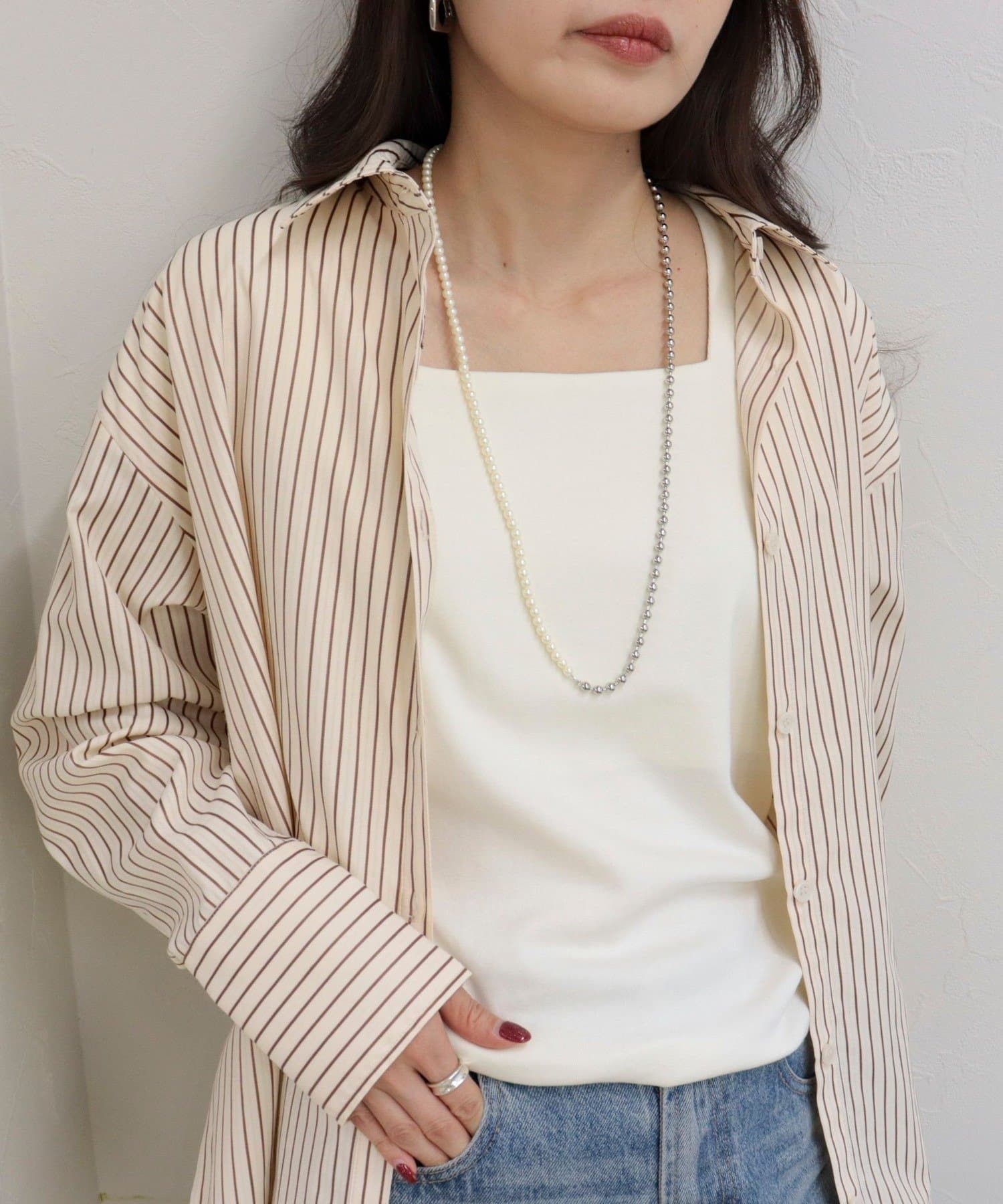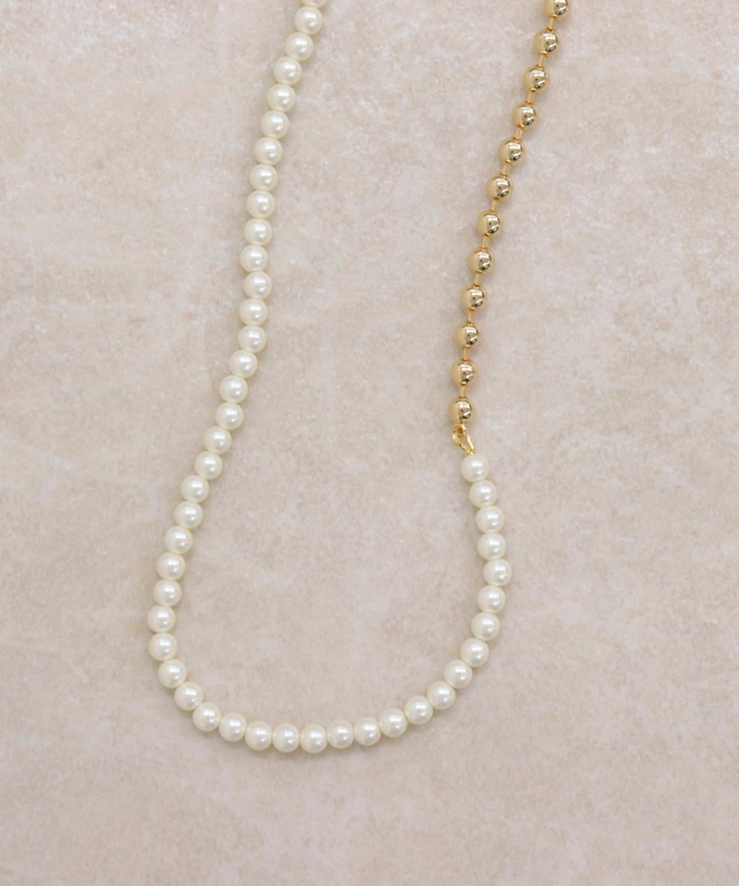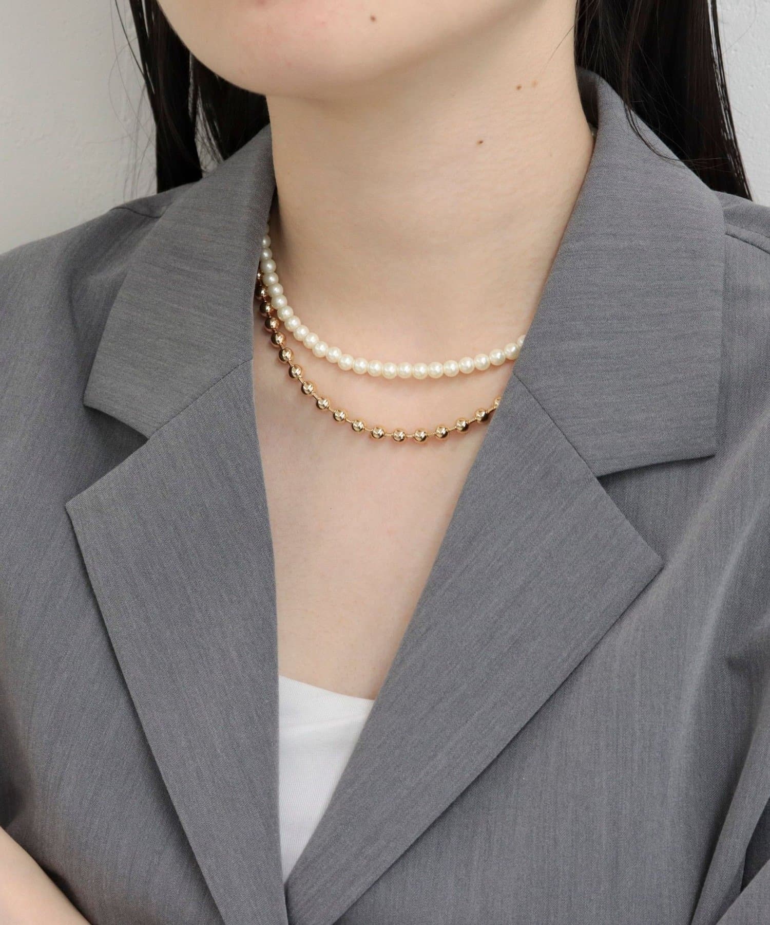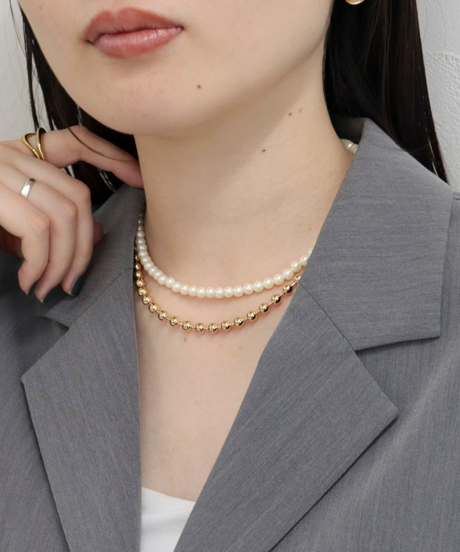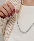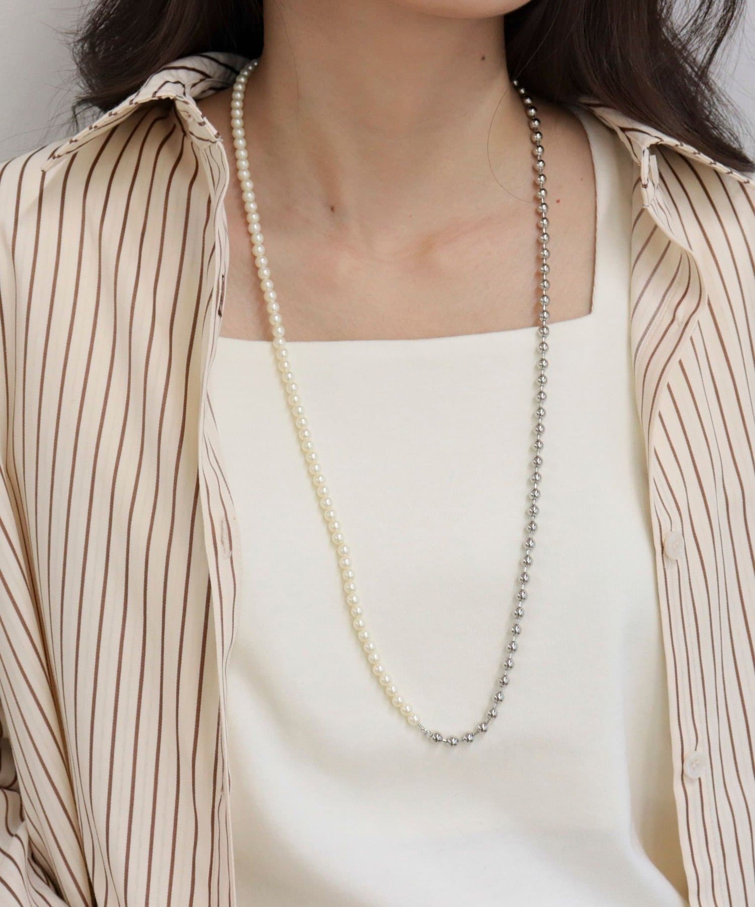・ボールチェーンとパールを繋げたトレンド感と高級感を兼ね備えたデザイン