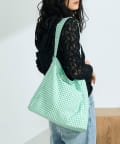 ・ストライプ&ギンガムチェックの柄が目を惹くワンショルダーバッグ