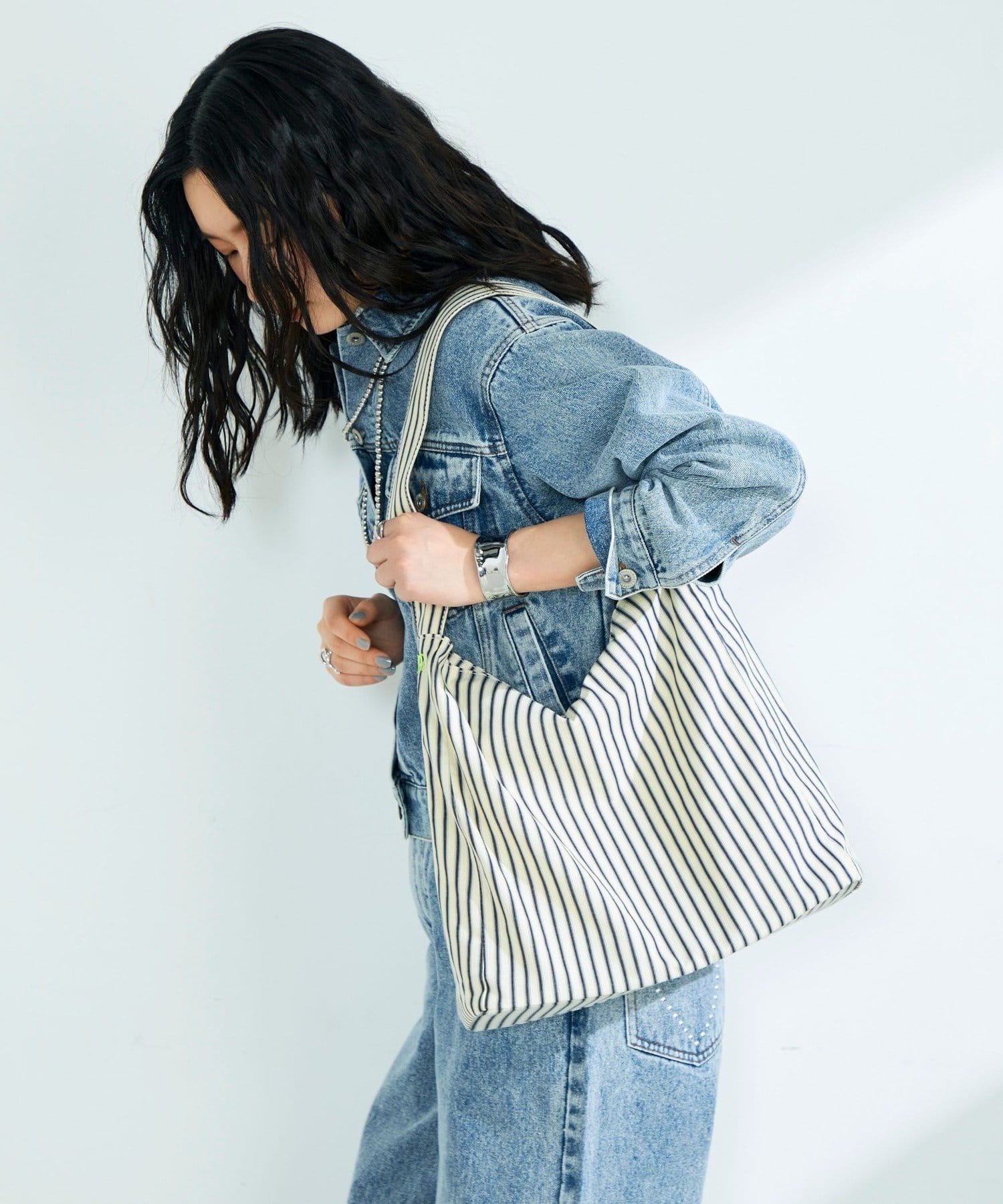 ストライプ/ギンガムワンショルバッグ