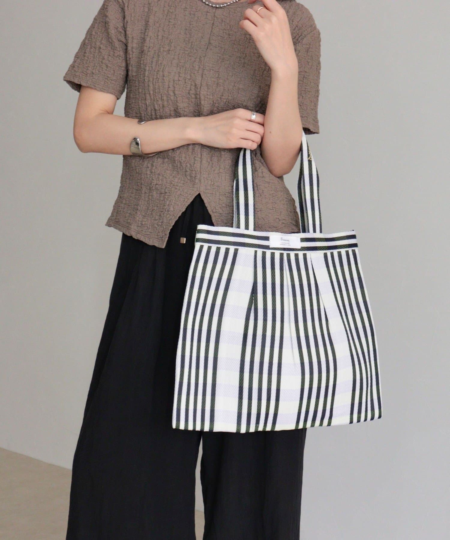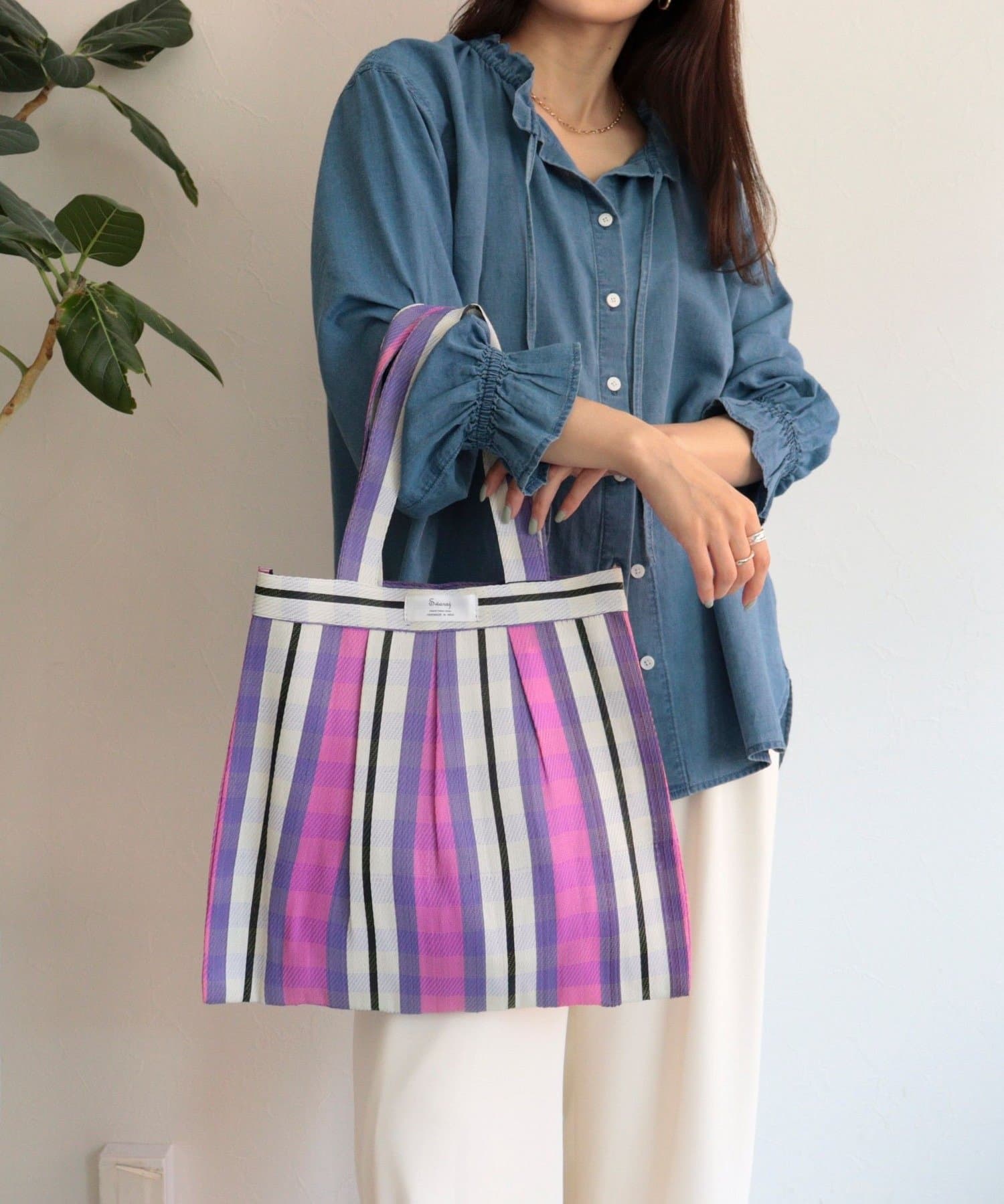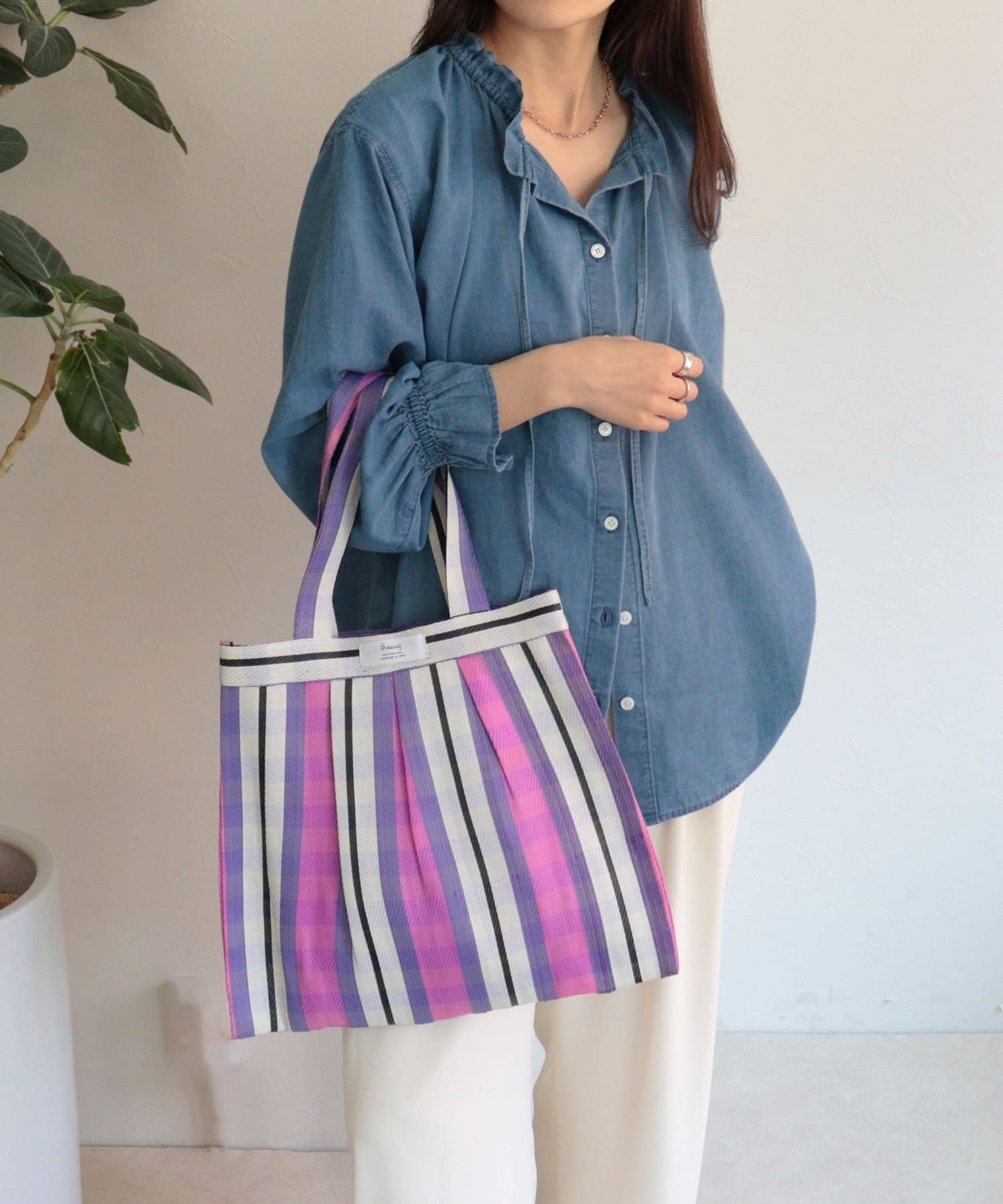 コーデに映える柄チュールタックトートバッグ