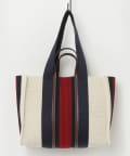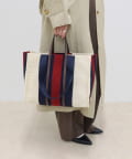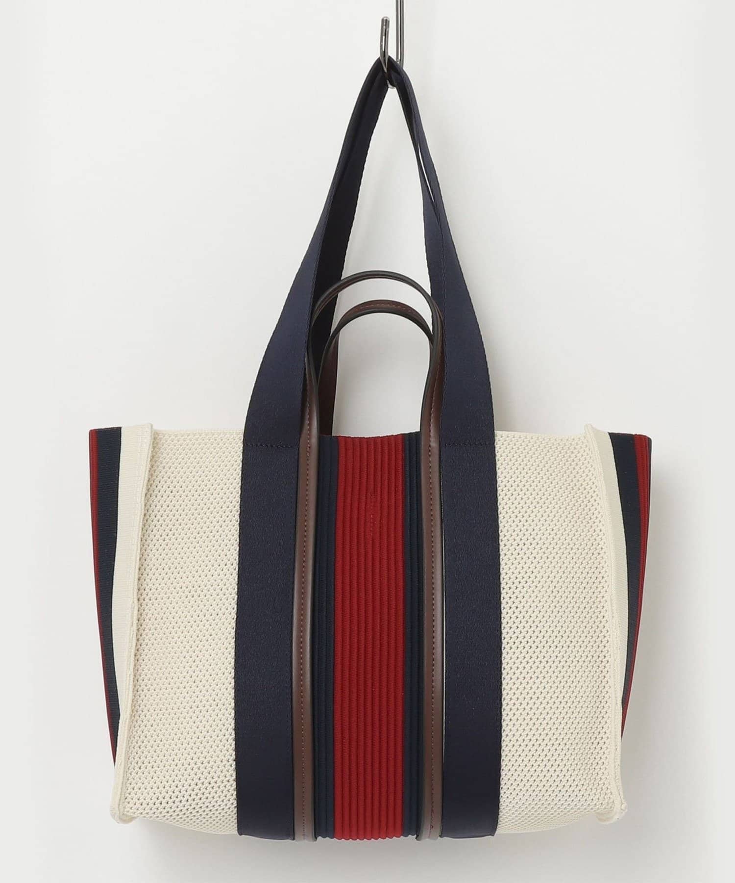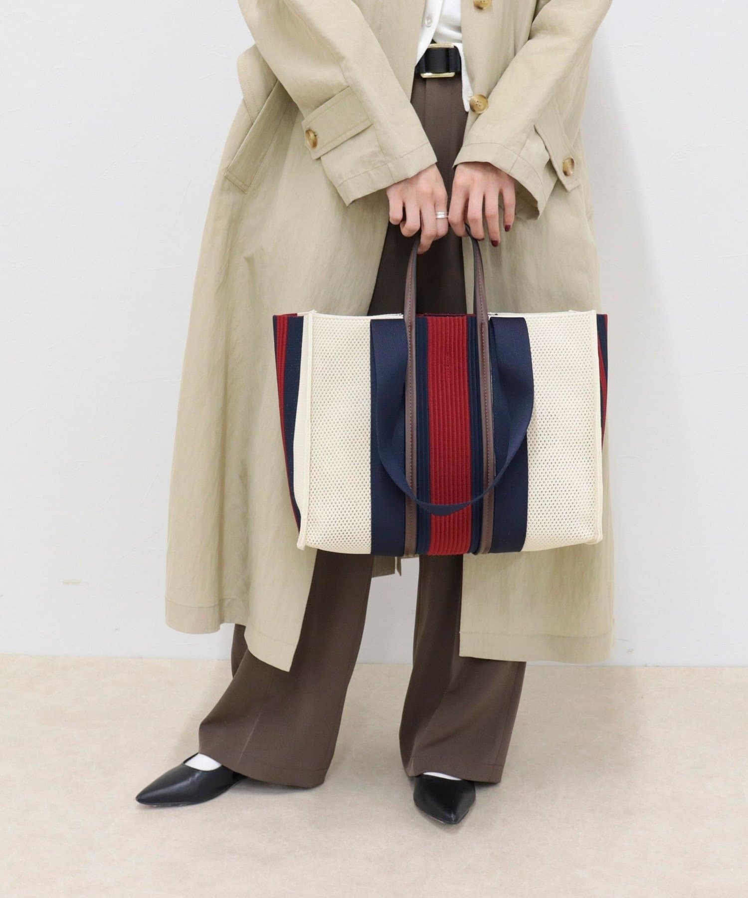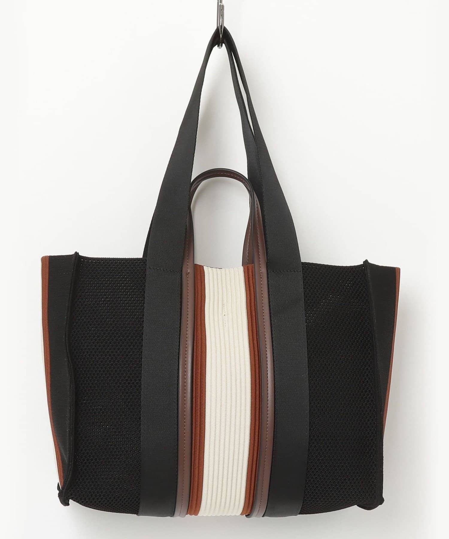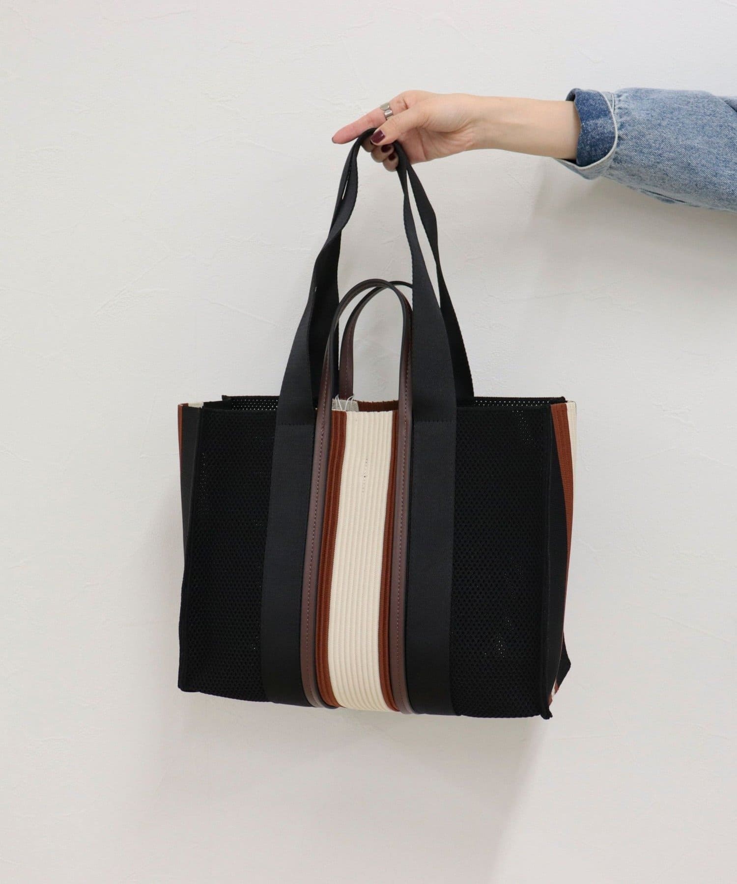 ・涼しげなメッシュと立体的な表情を持つストライプ柄を大胆に組み合わせたトートバッグ