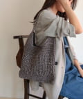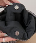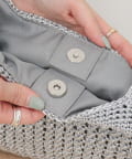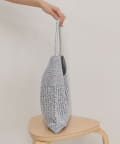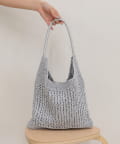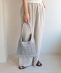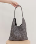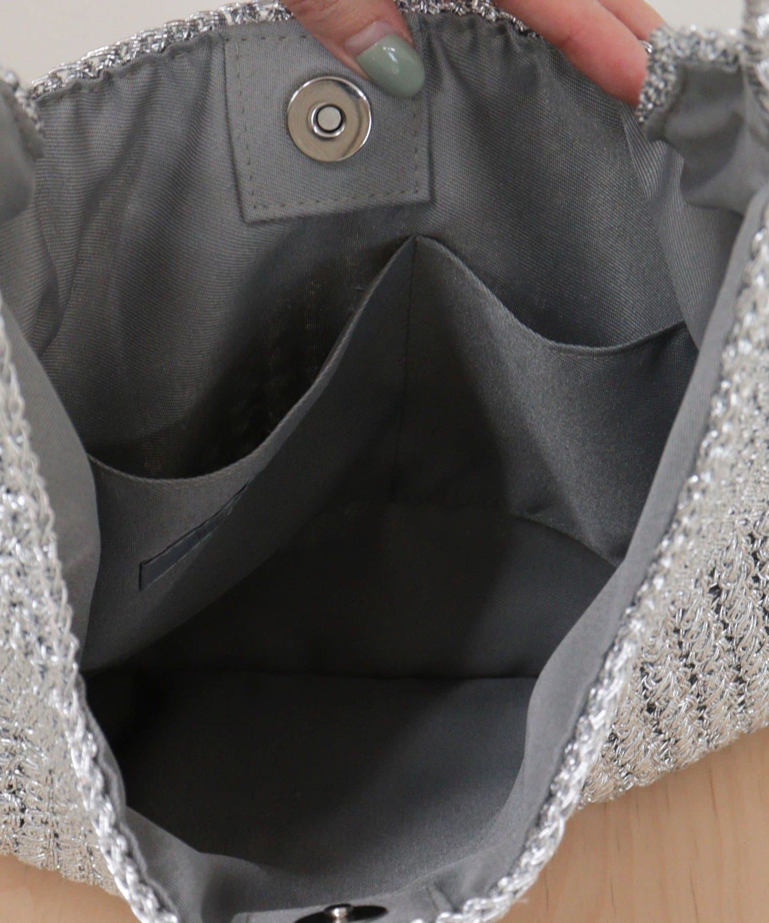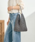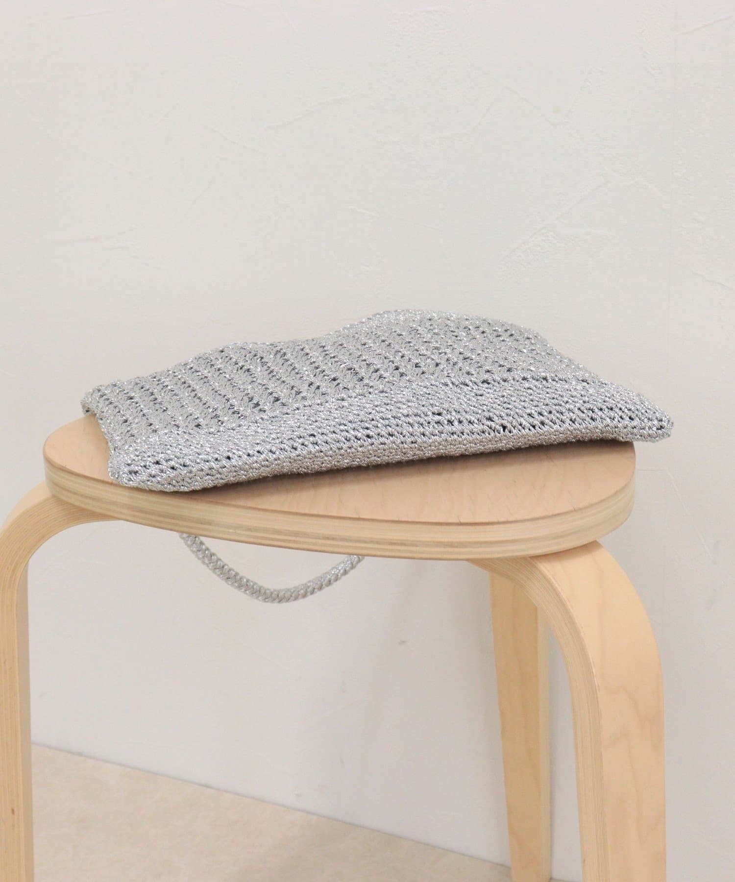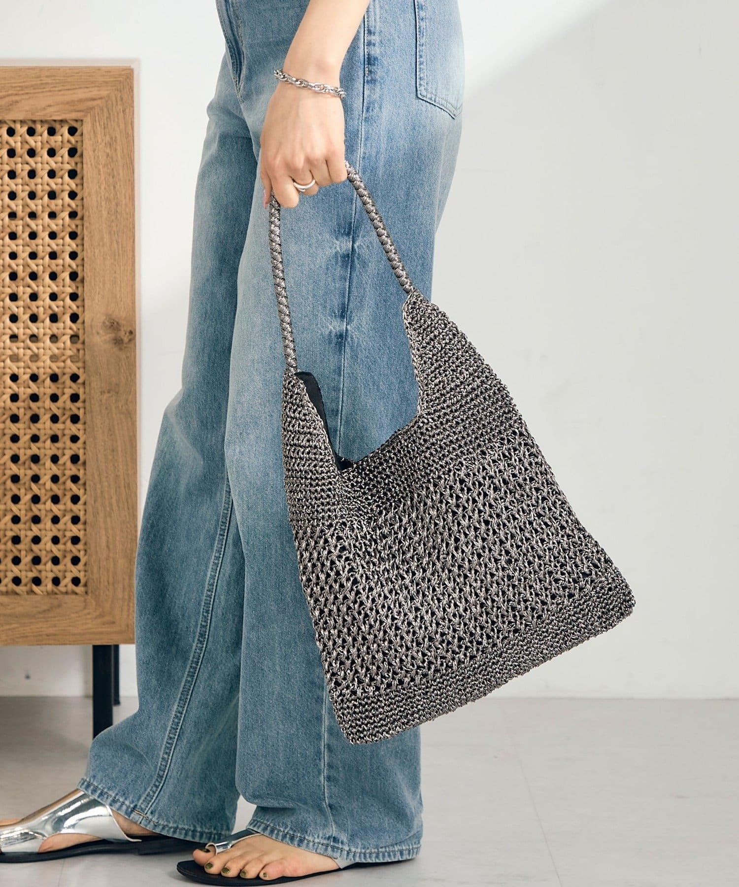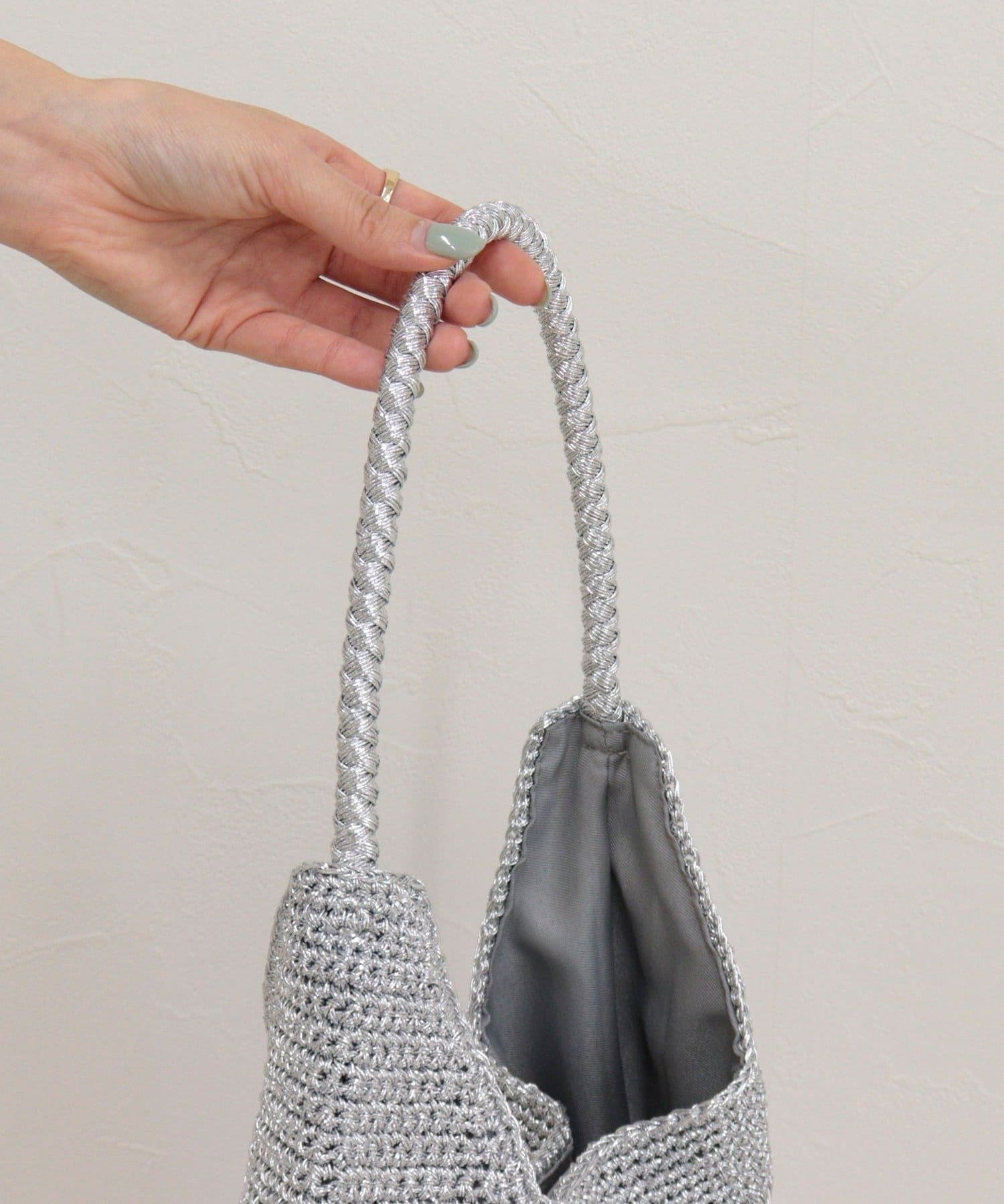 ・メタリックコードを編み込んだ、シンプルながら存在感のある柄編みバッグ
