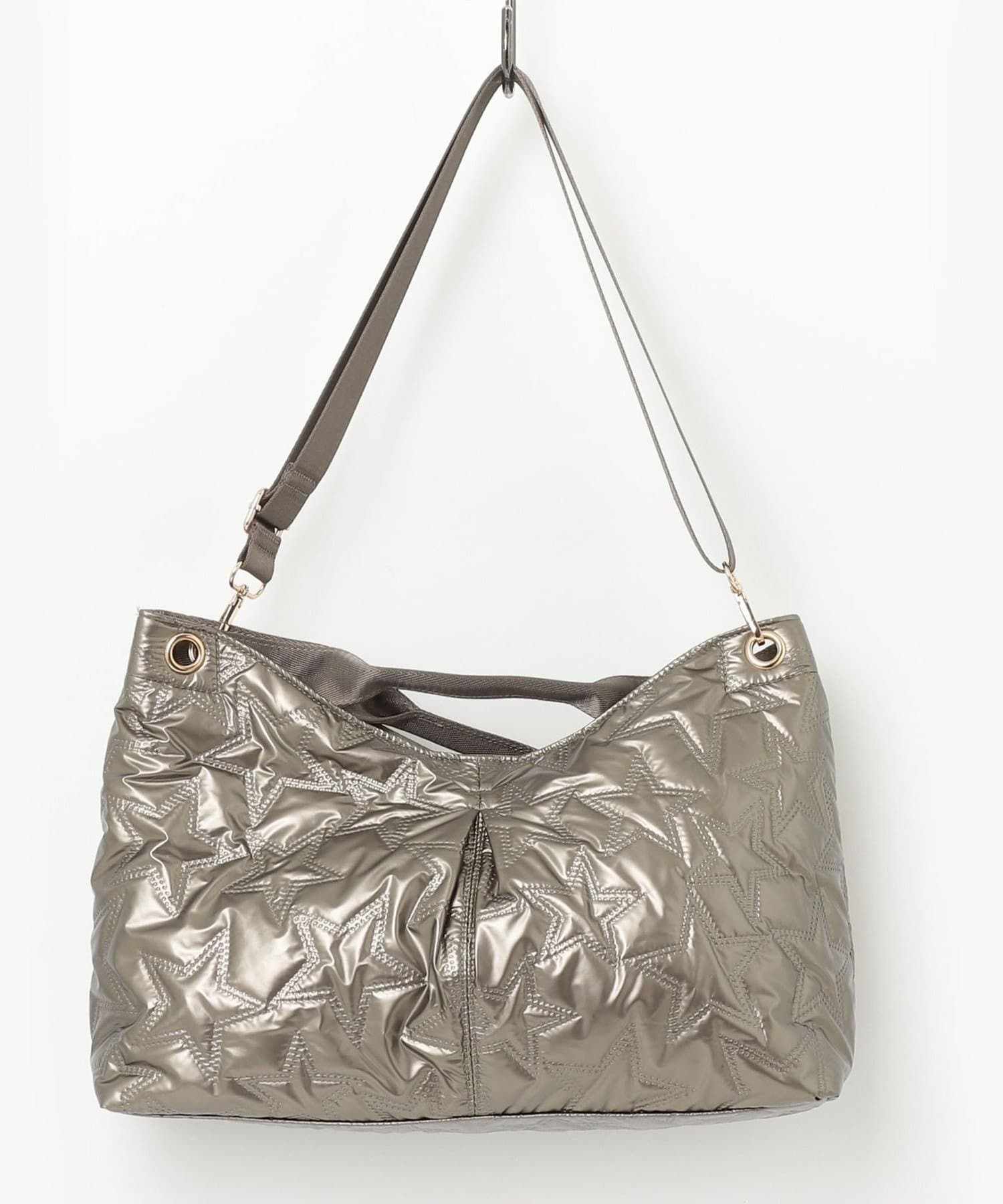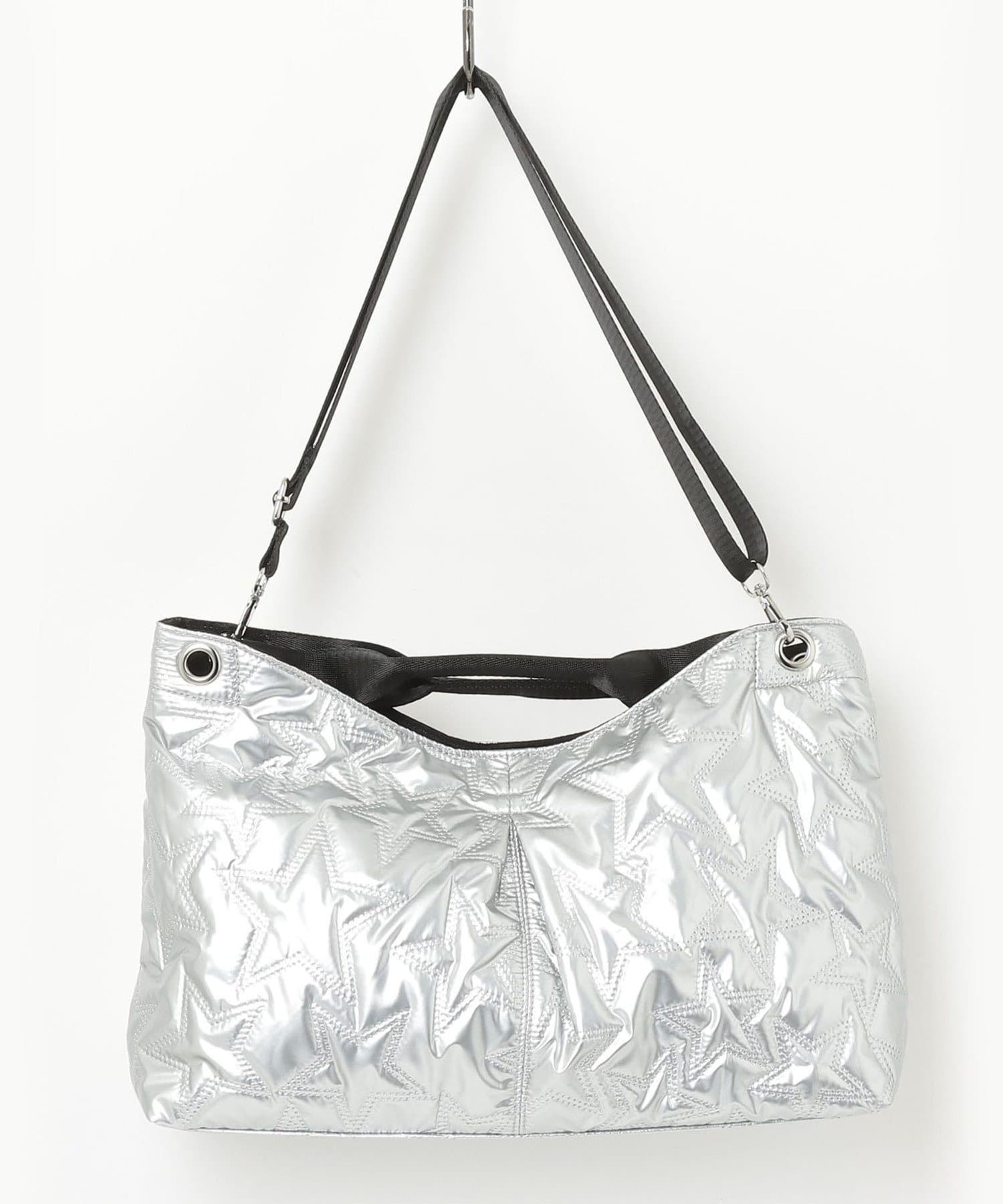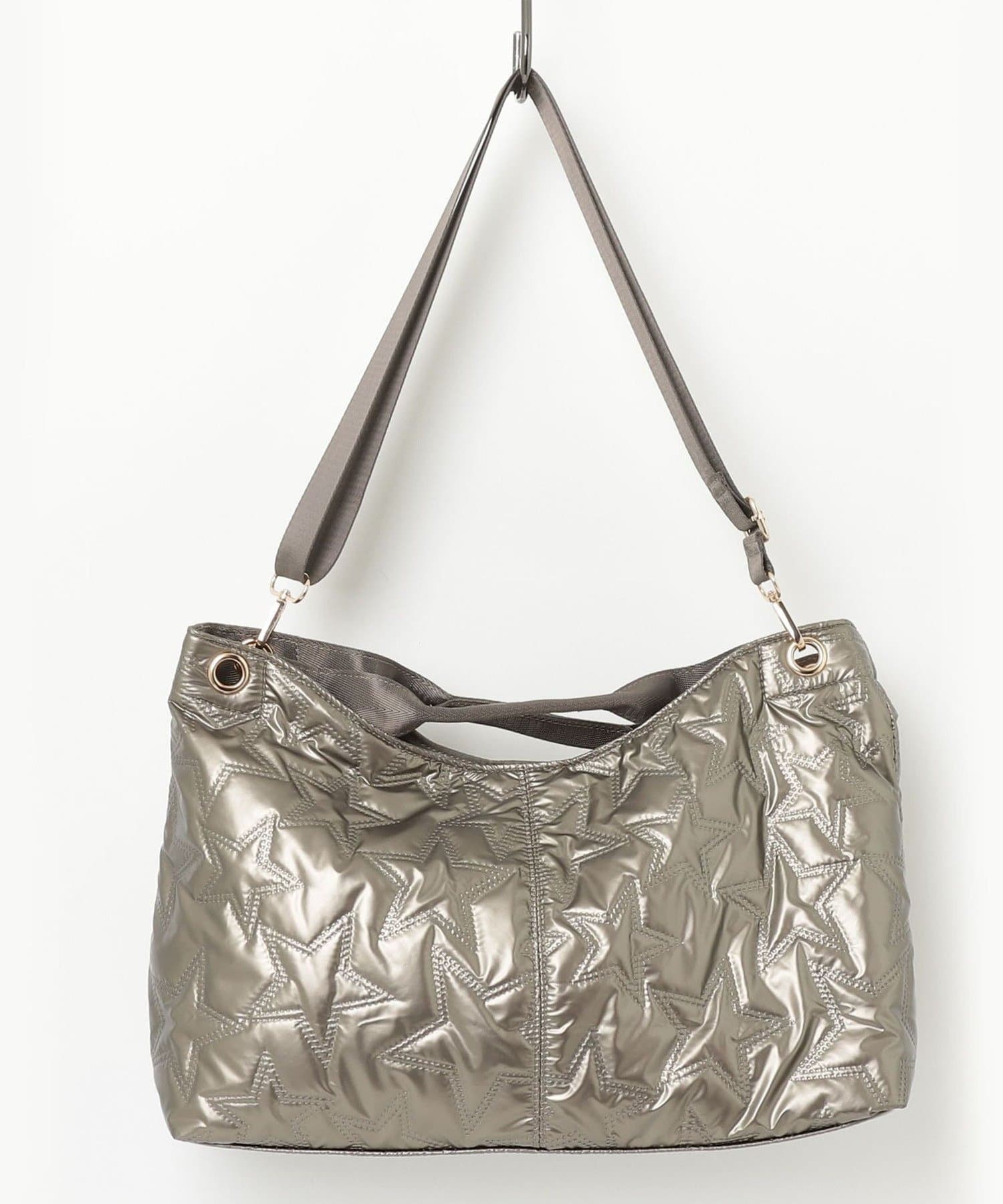 メタルな素材感がコーデのポイントになる星キルティングトート