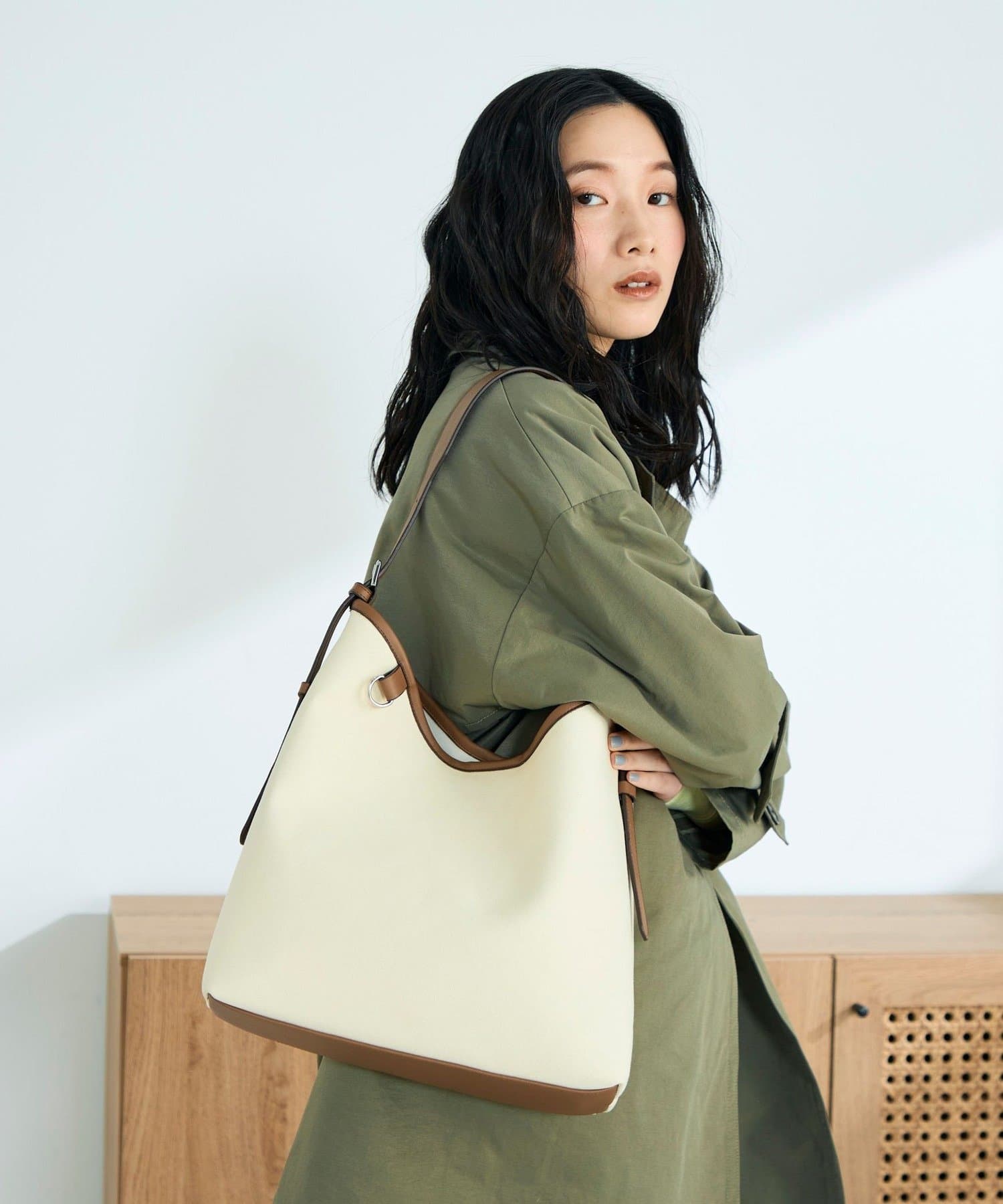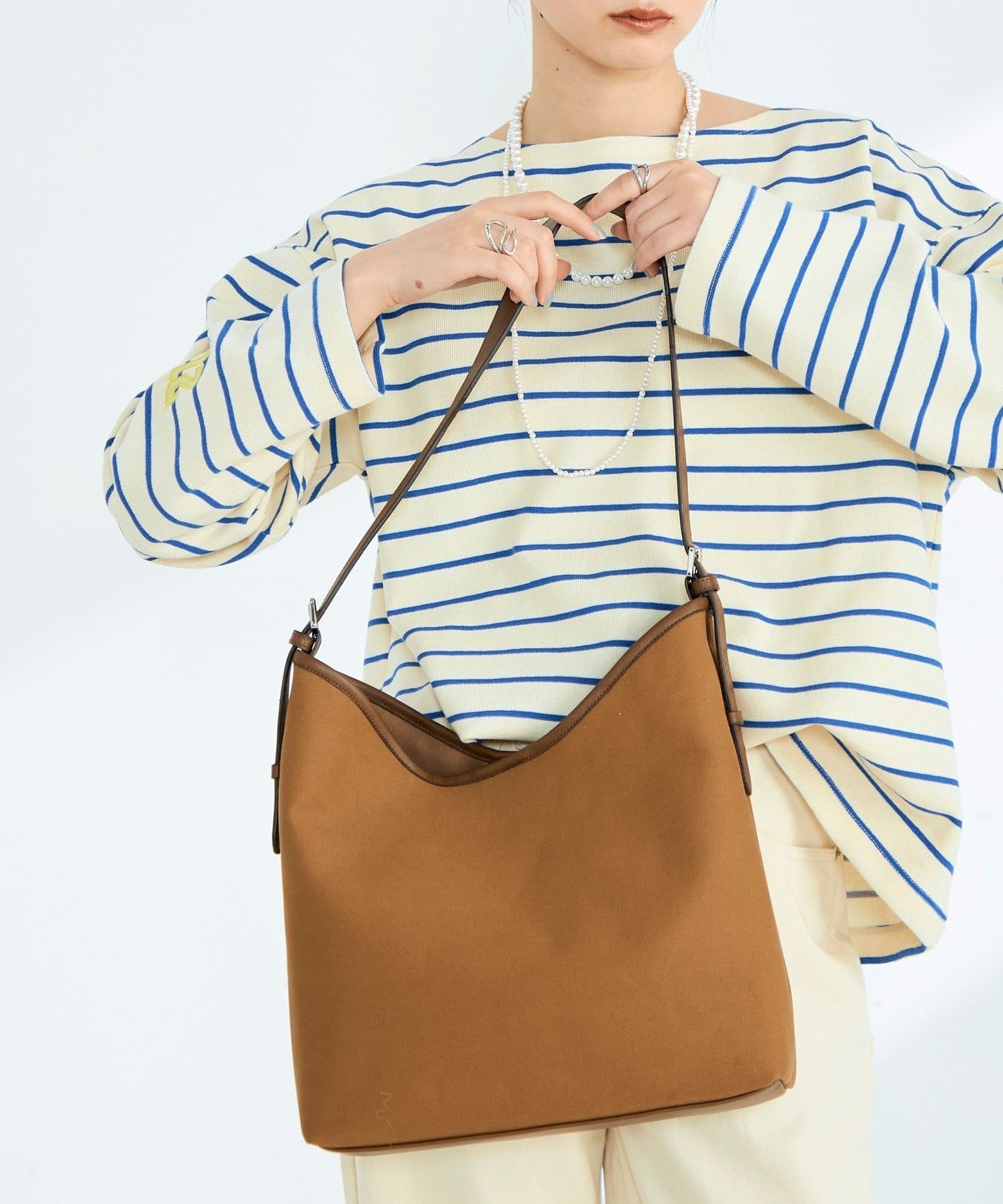 持つだけで格上げ。異素材コンビワンハンドルバッグ