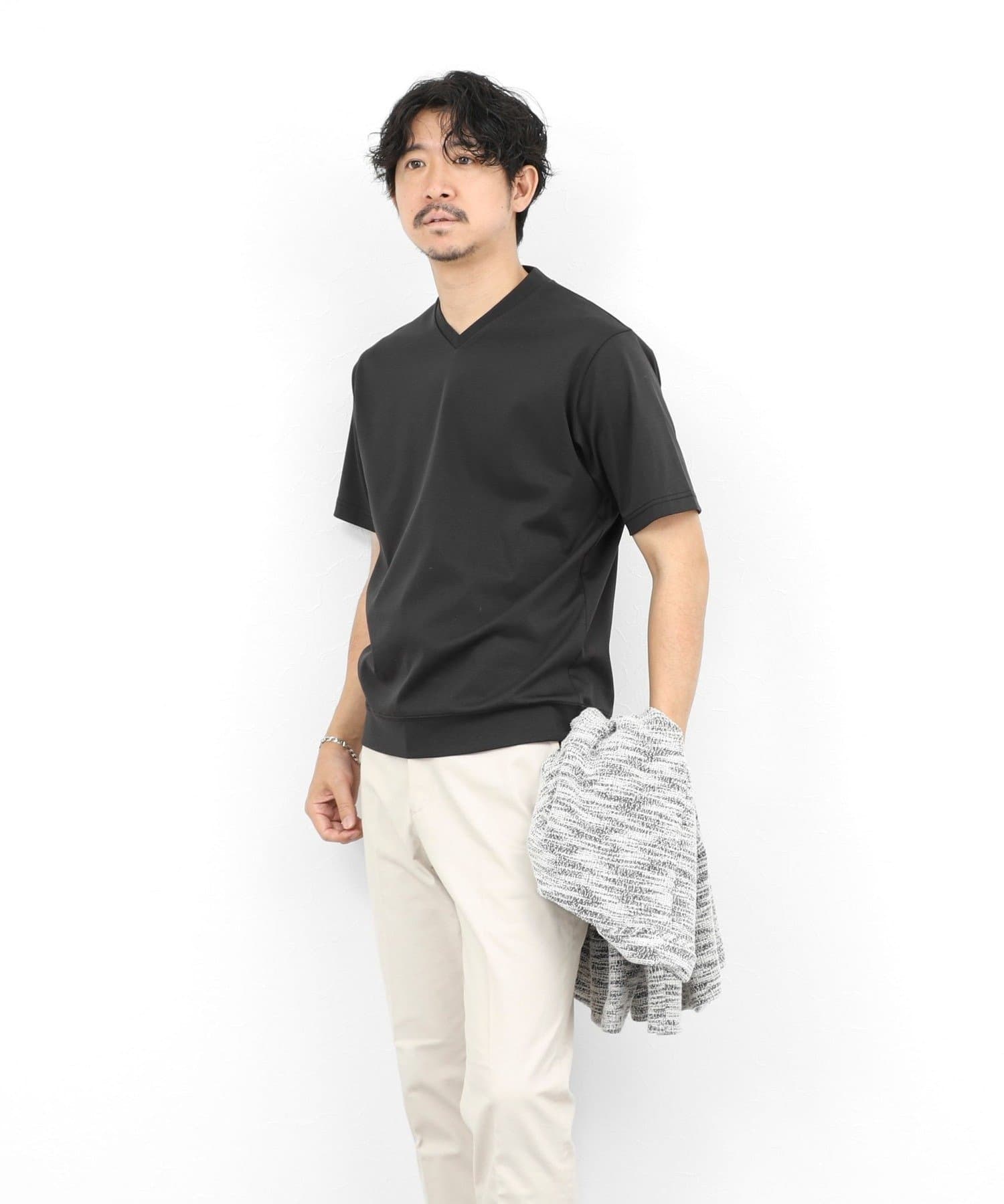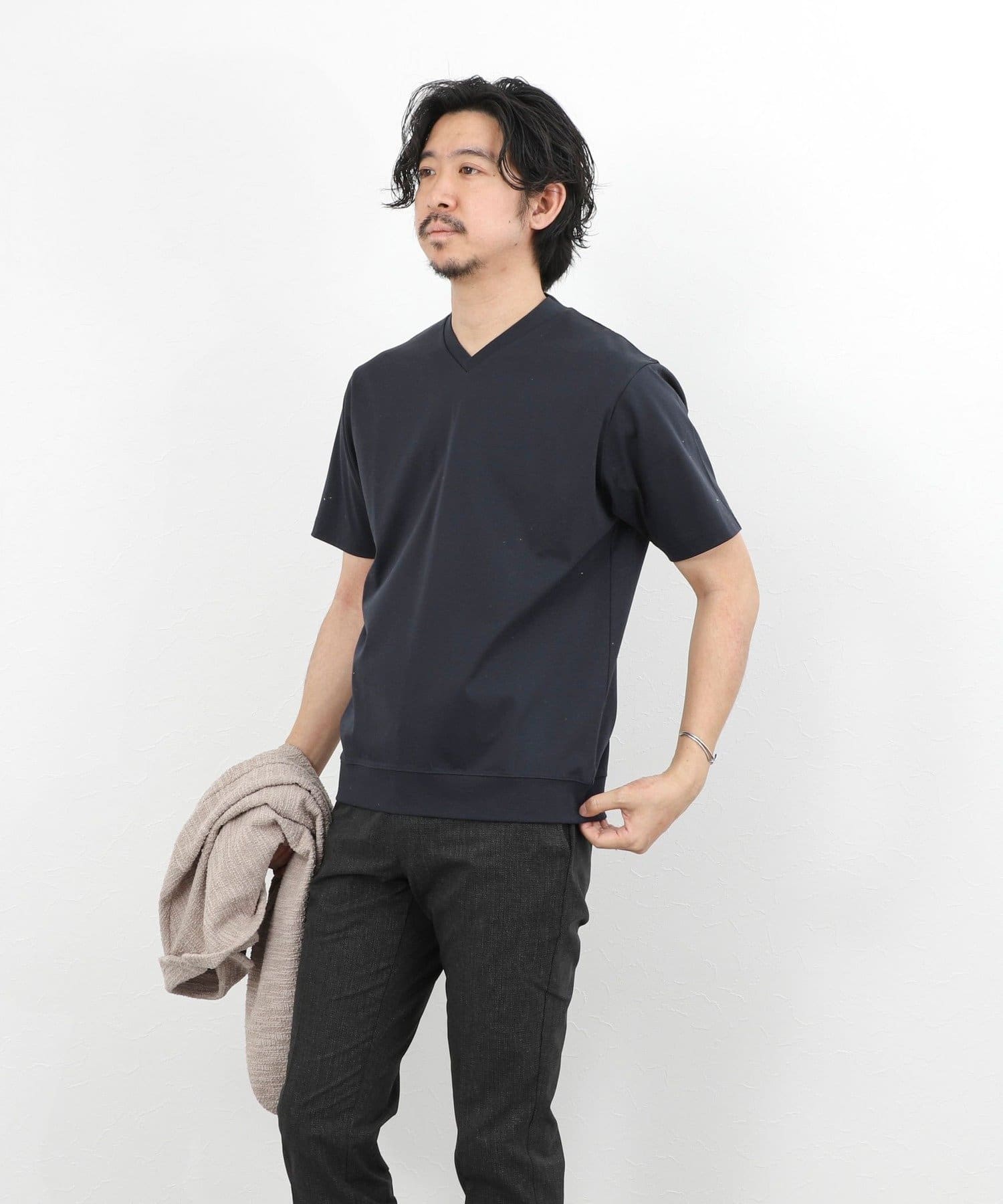 《ビジカジ対応》シルケットスムース VネックドレスTシャツ