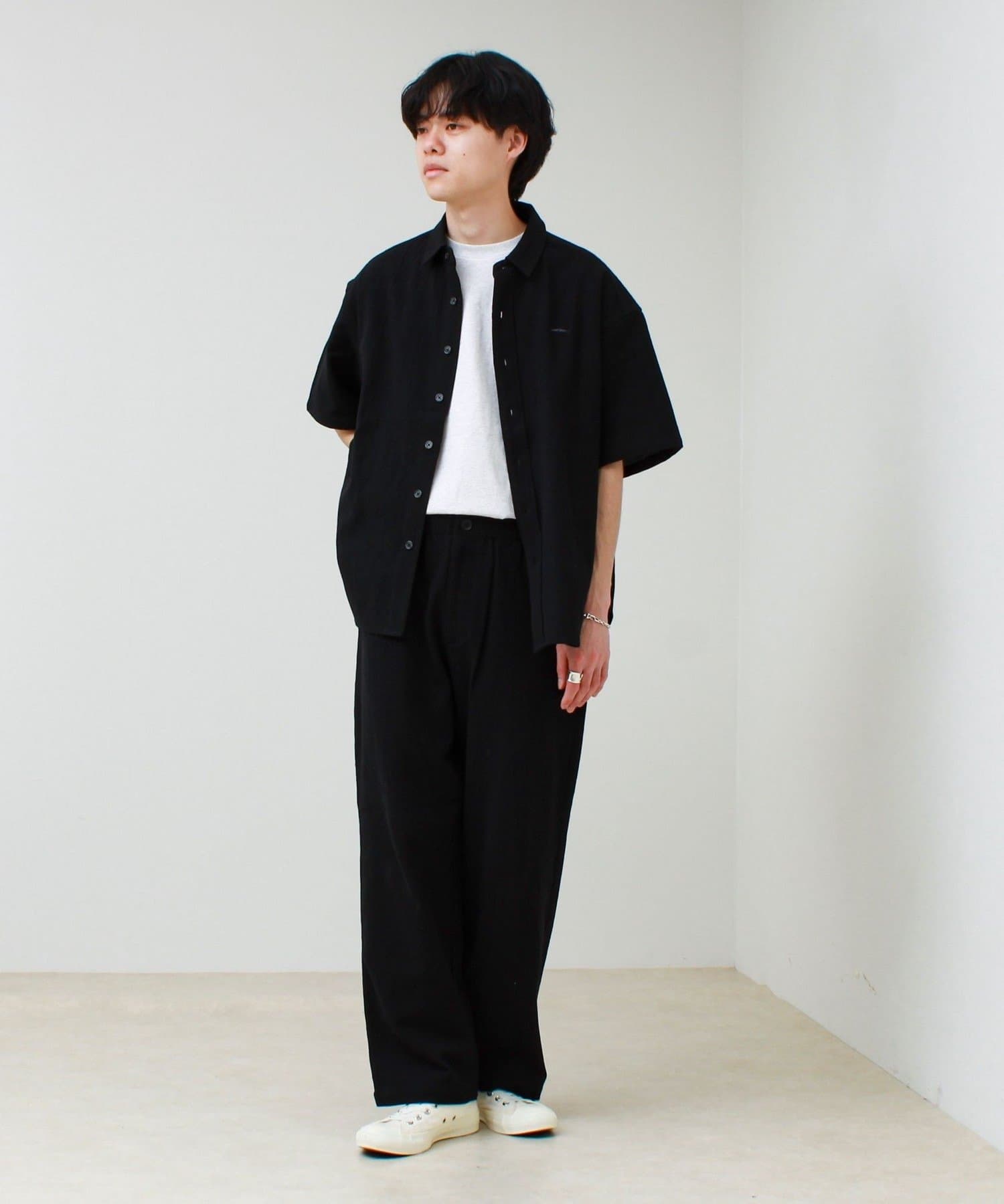 同素材パンツと合わせて、きれいめだけど抜け感のある着こなしに。