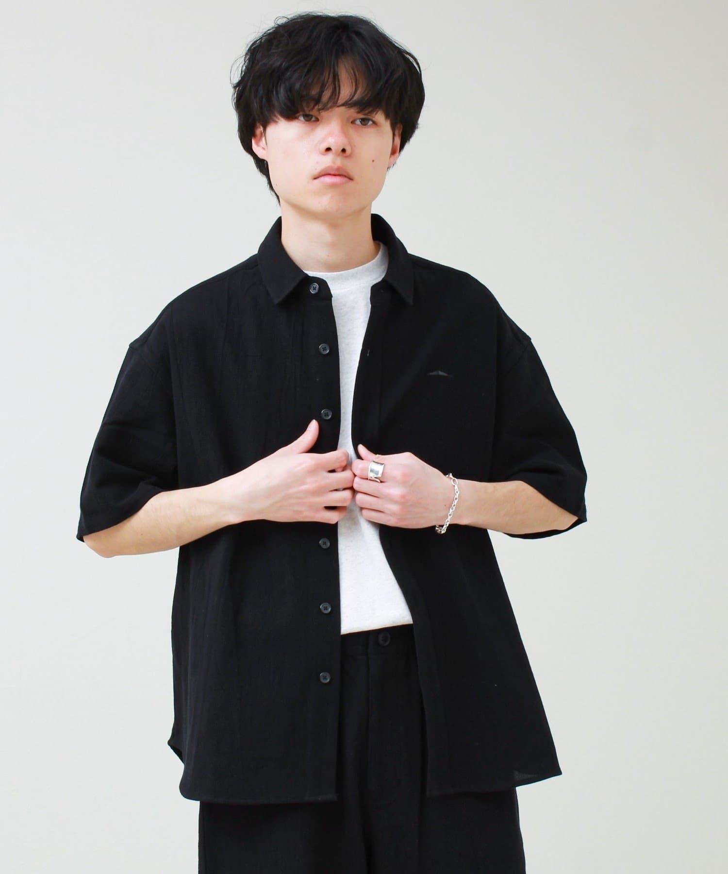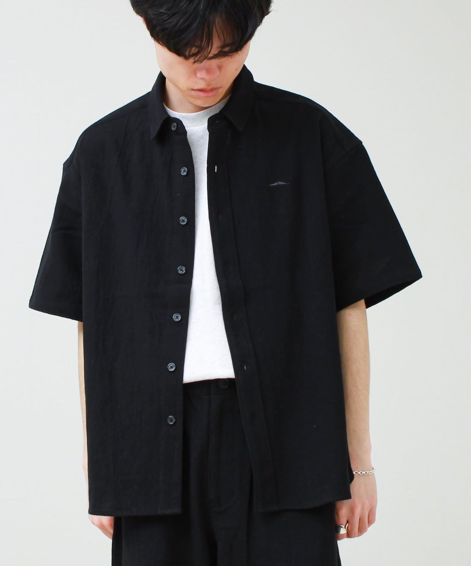 程よくゆとりのあるボックスシルエットで、1枚でも羽織でも使いやすい。