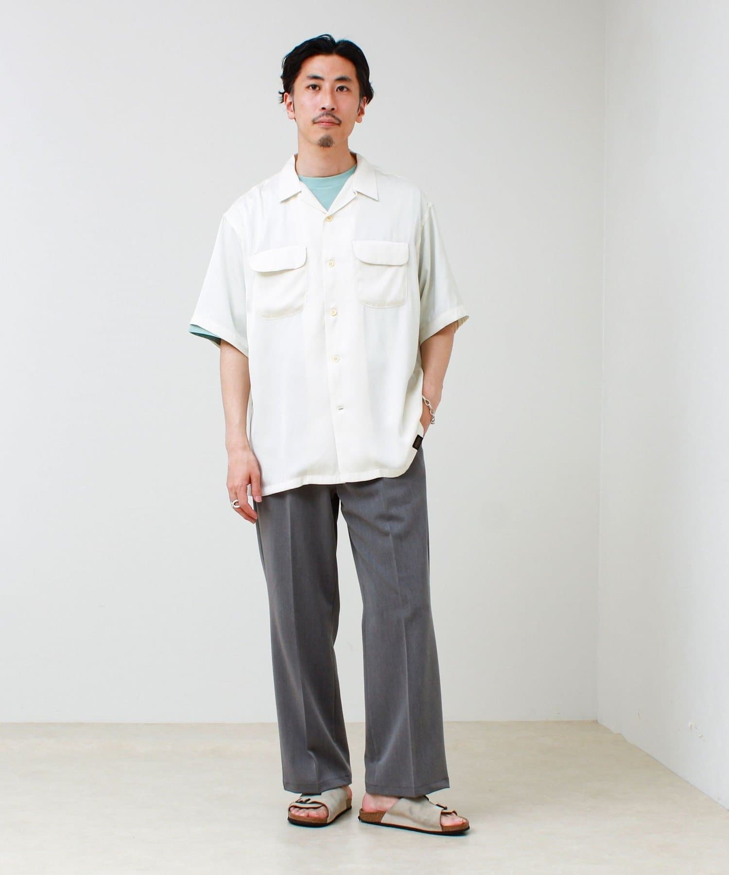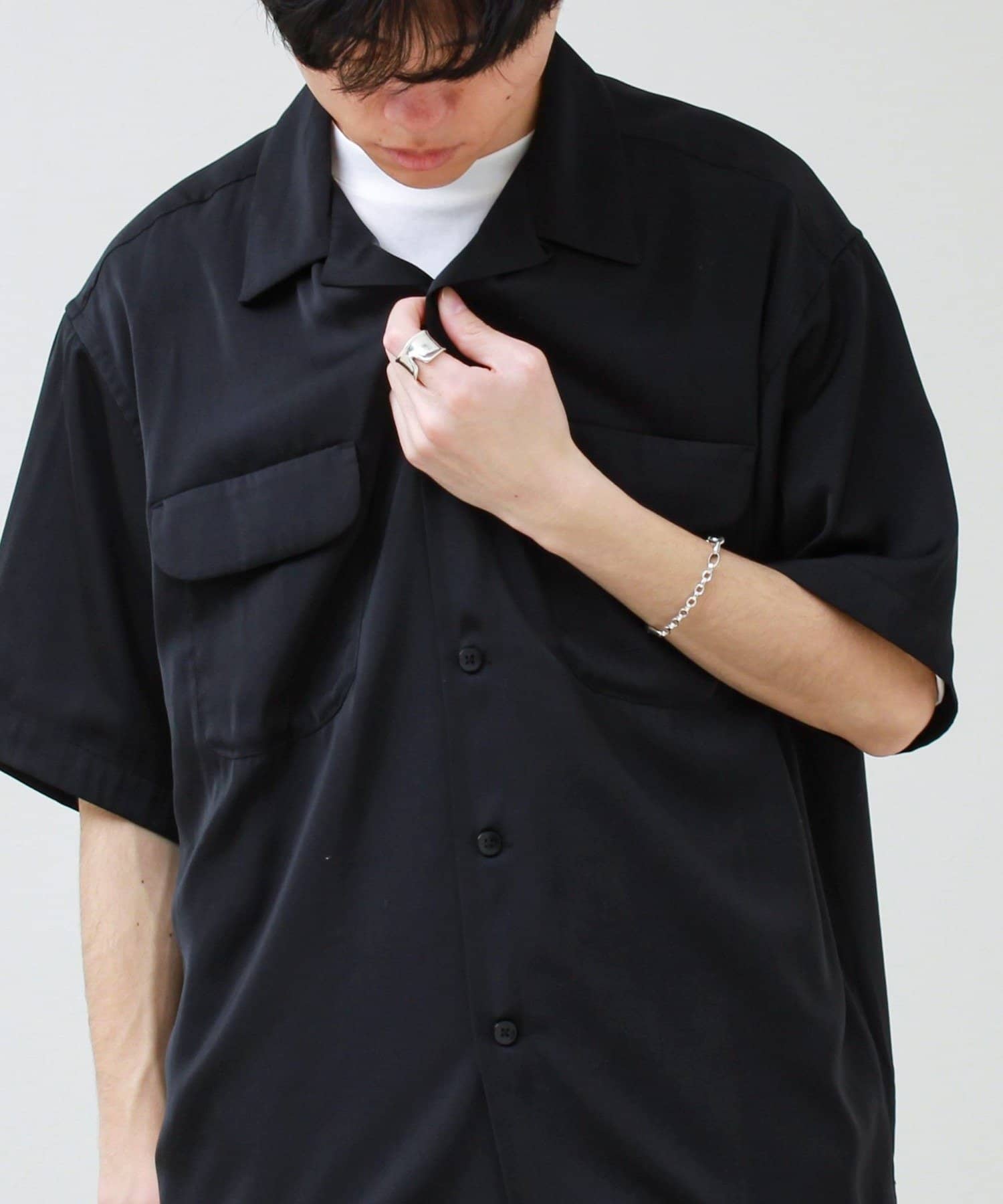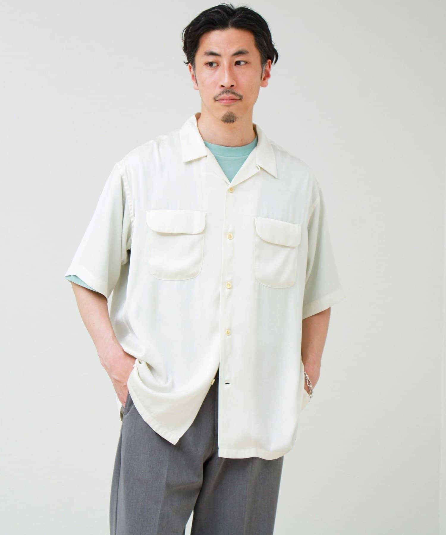 上品な落ち感が魅力のオープンカラーシャツ