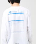 胸元はコンパクトなロゴ配置で使いやすく、背面は配送ラベル風デザインやロゴが並ぶインパクトある仕様。1枚でコーデの主役になるバランス。