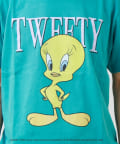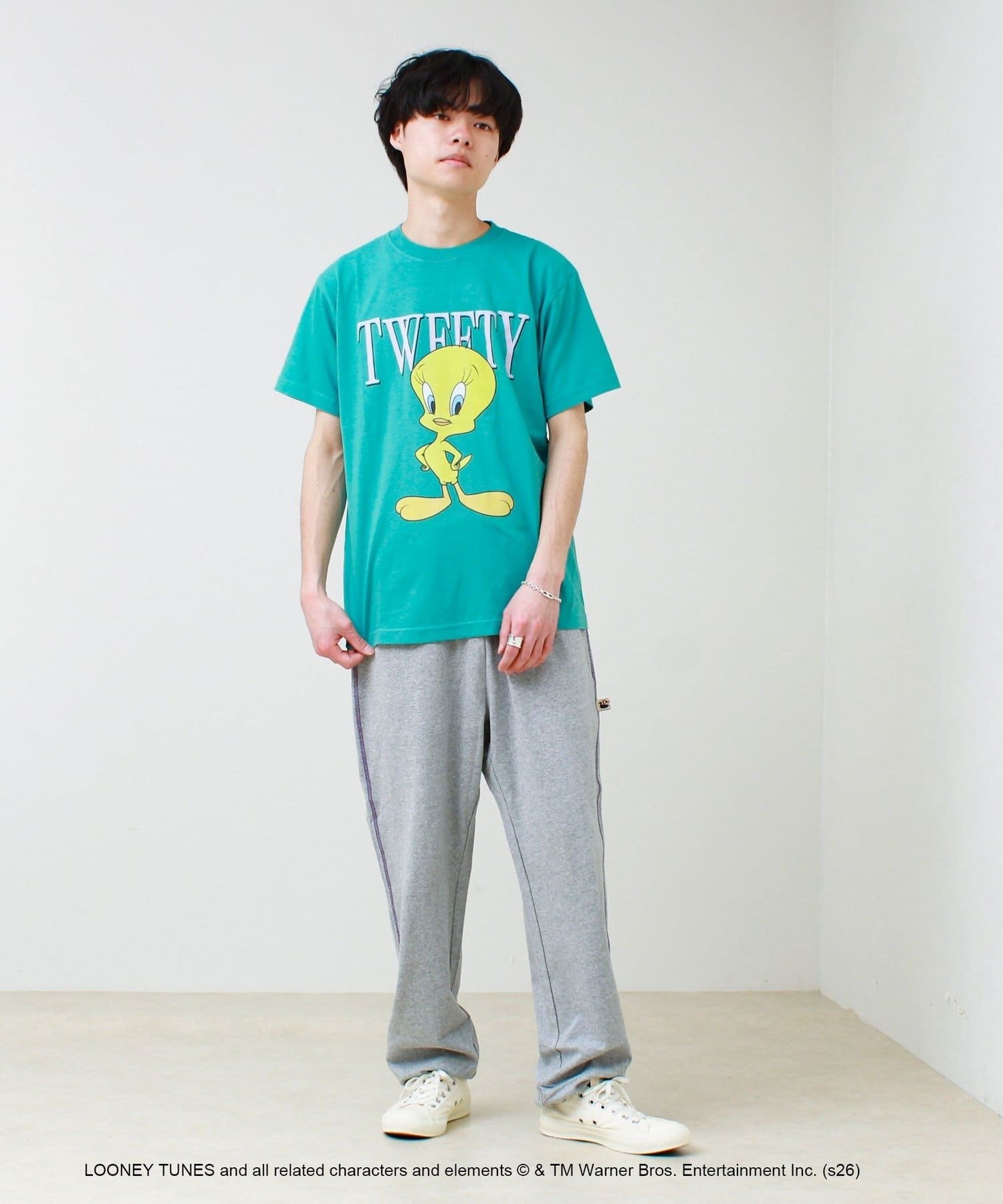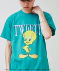 トゥイーティーを大胆に配置したグラフィックで、1枚でスタイリングが完成する主役級デザイン。