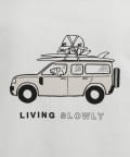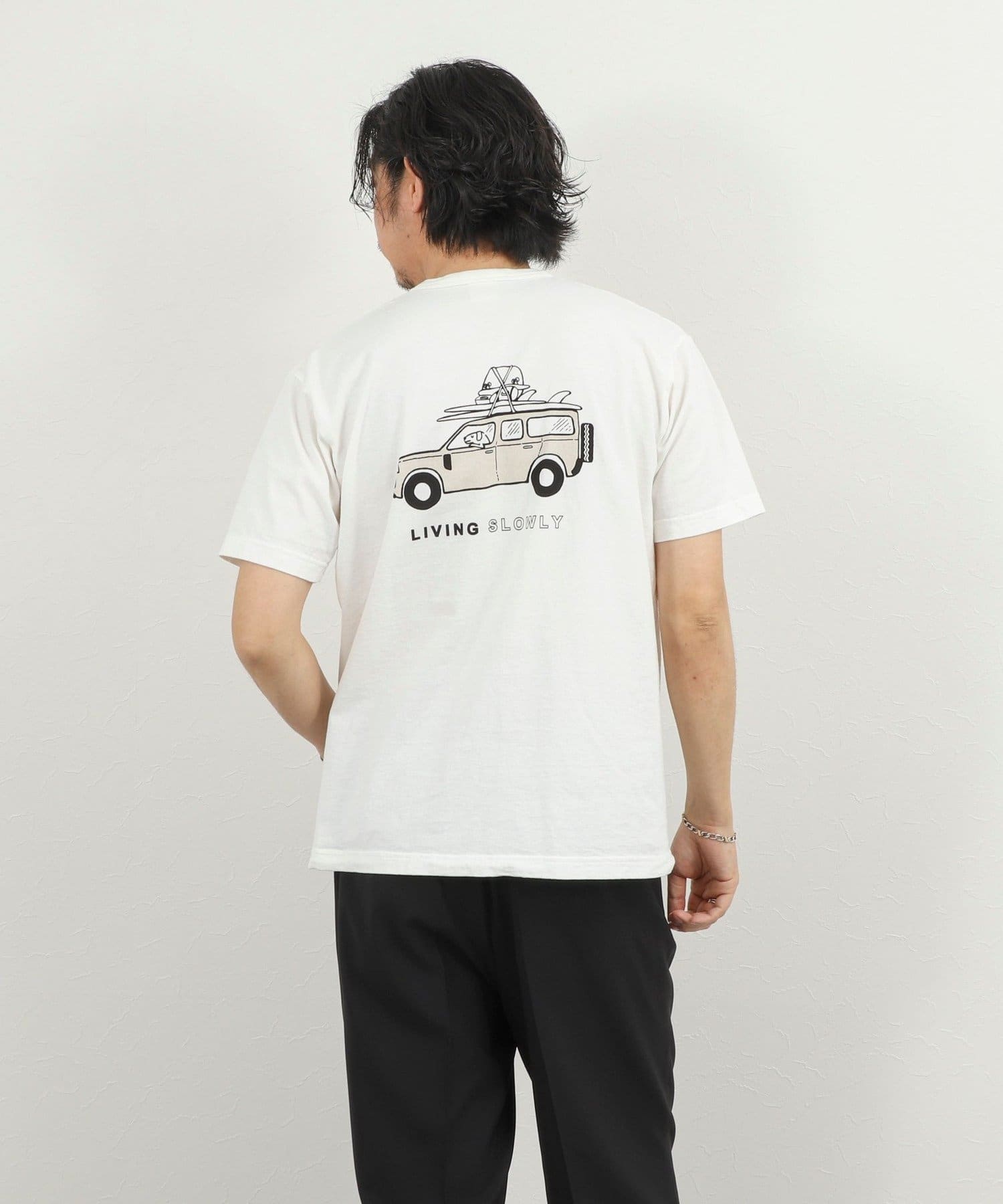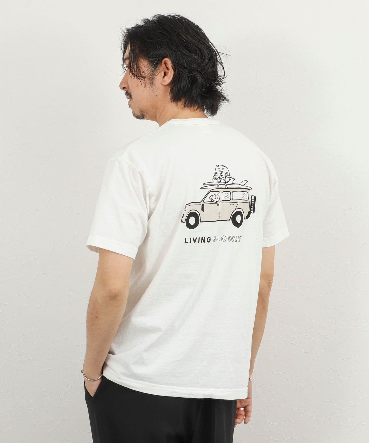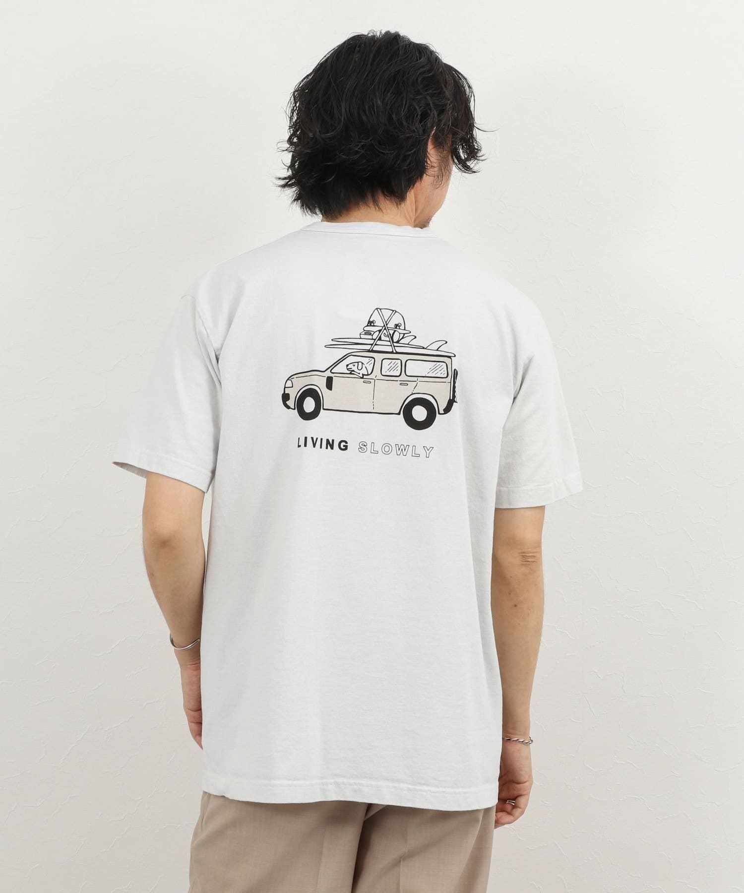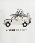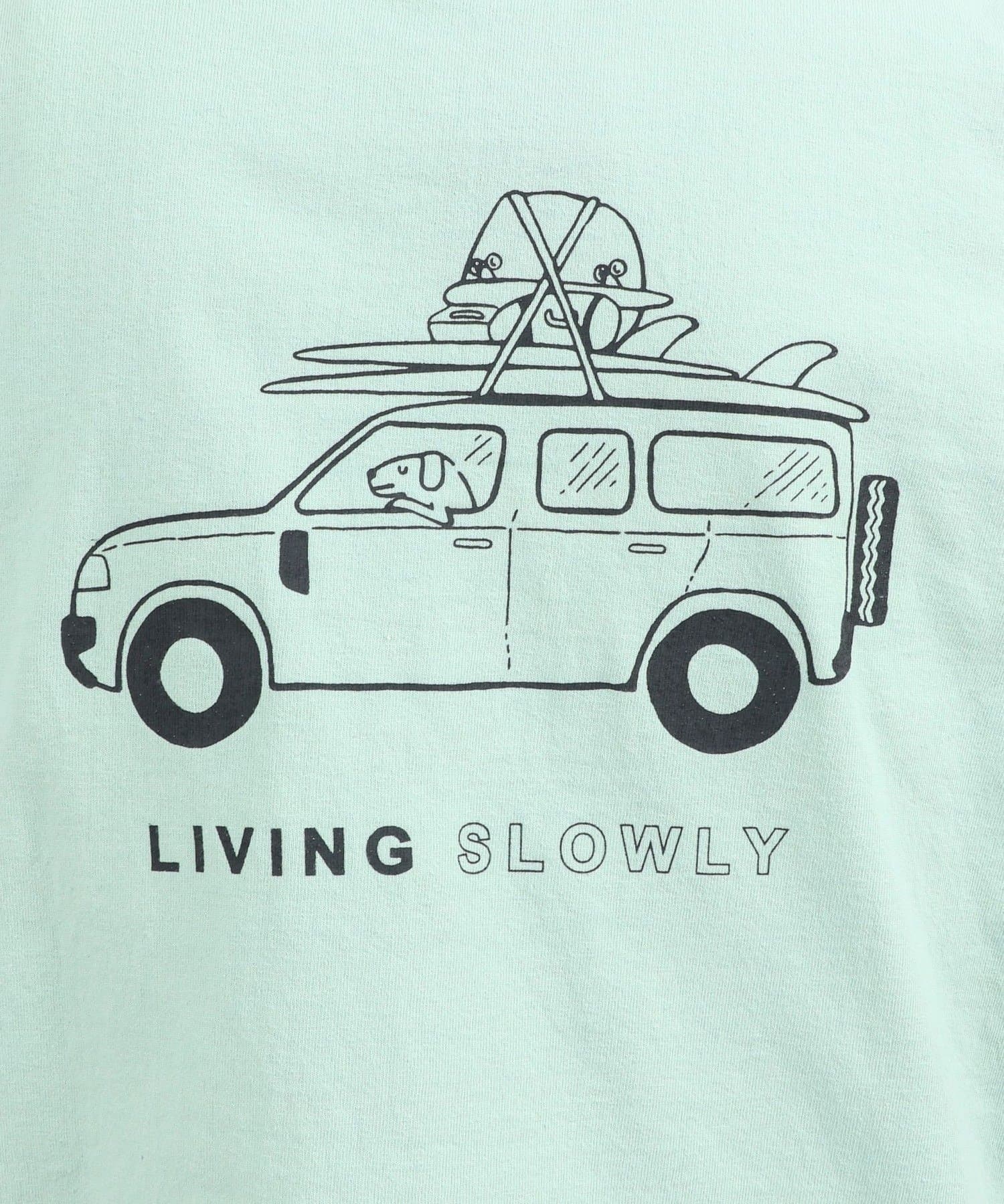 ・犬と車と「LIVING SLOWLY」のバックプリント