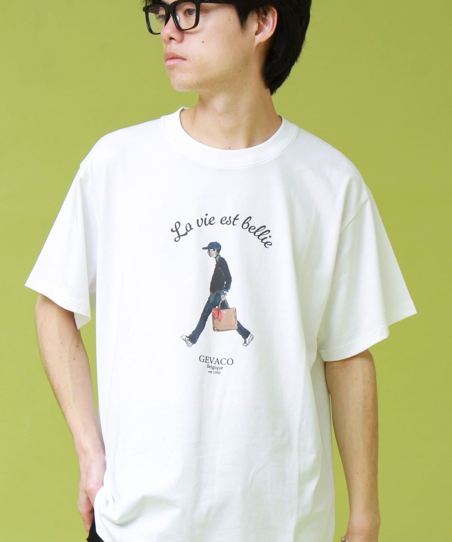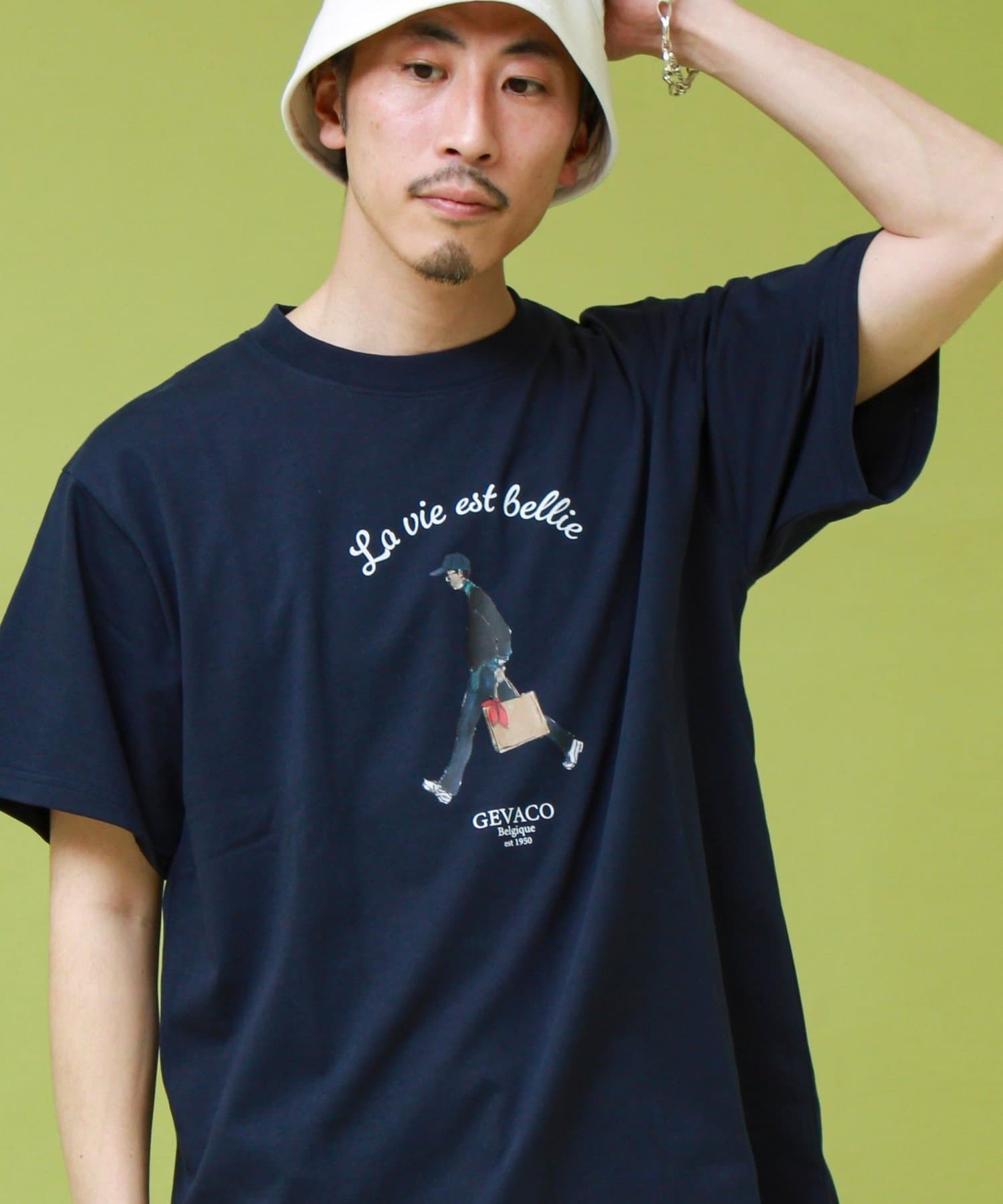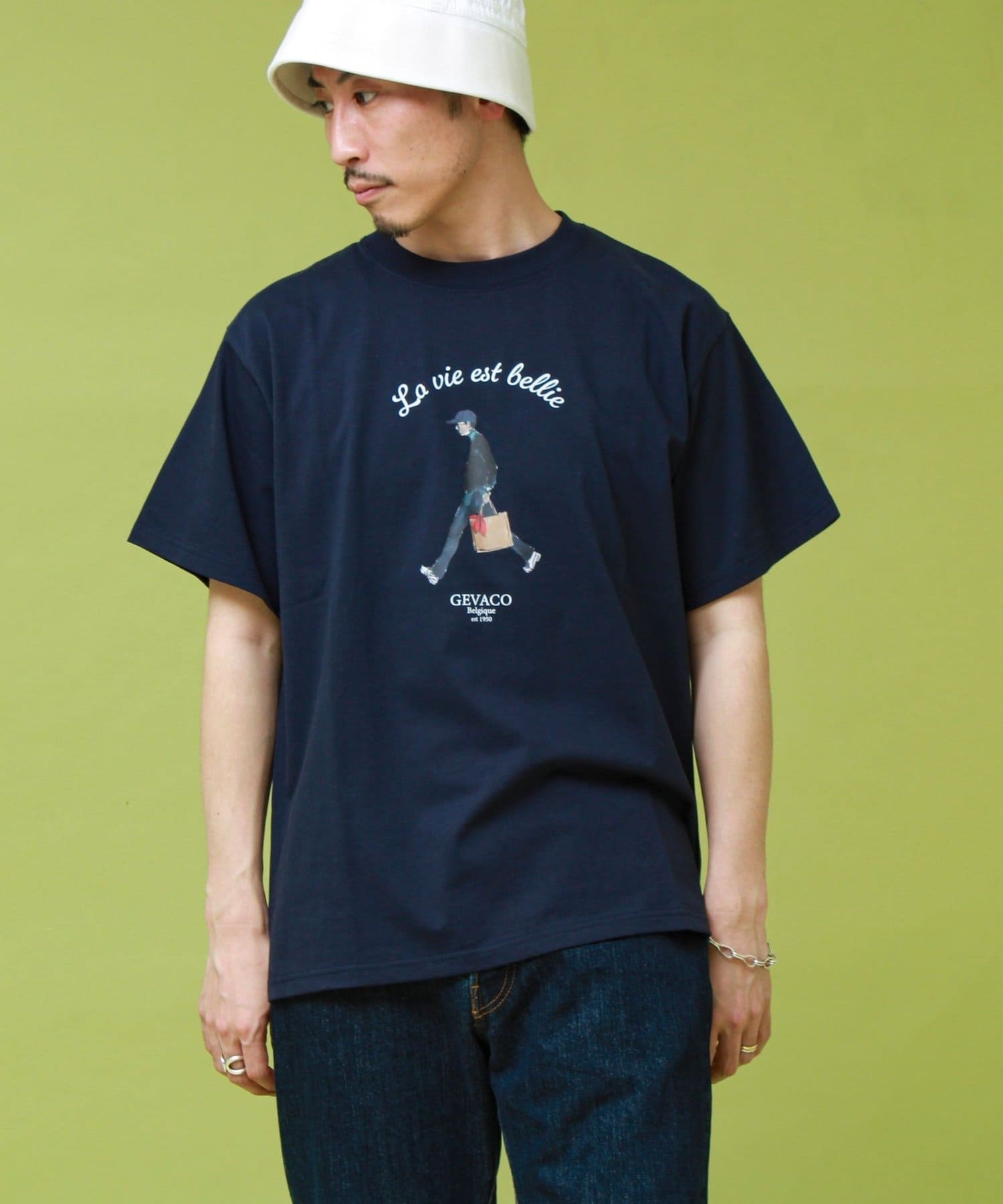 フレンチメッセージとイラストが目を引く。GEVACOグラフィックTシャツ