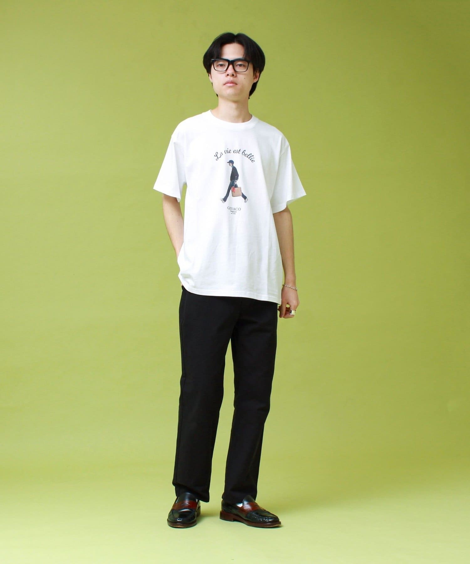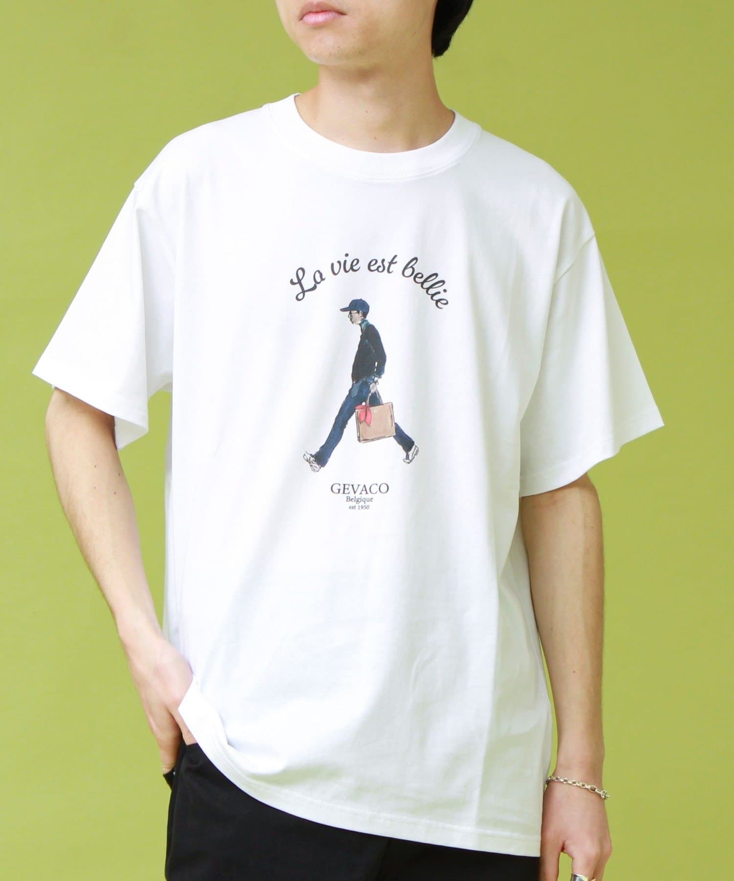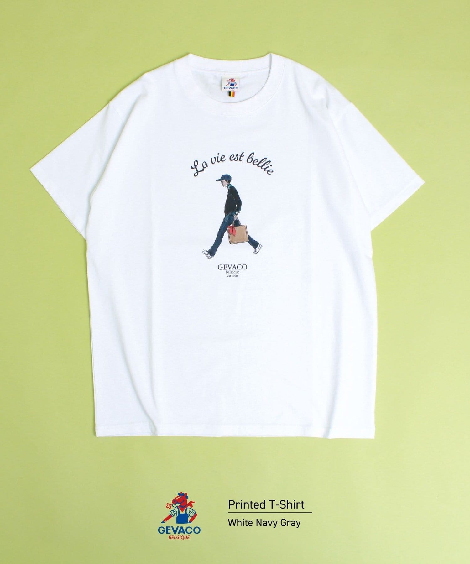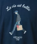 フレンチメッセージとイラストが目を引く。GEVACOグラフィックTシャツ