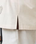 首元がすっきり見える開襟デザインで、1枚でも羽織でもサマになる。