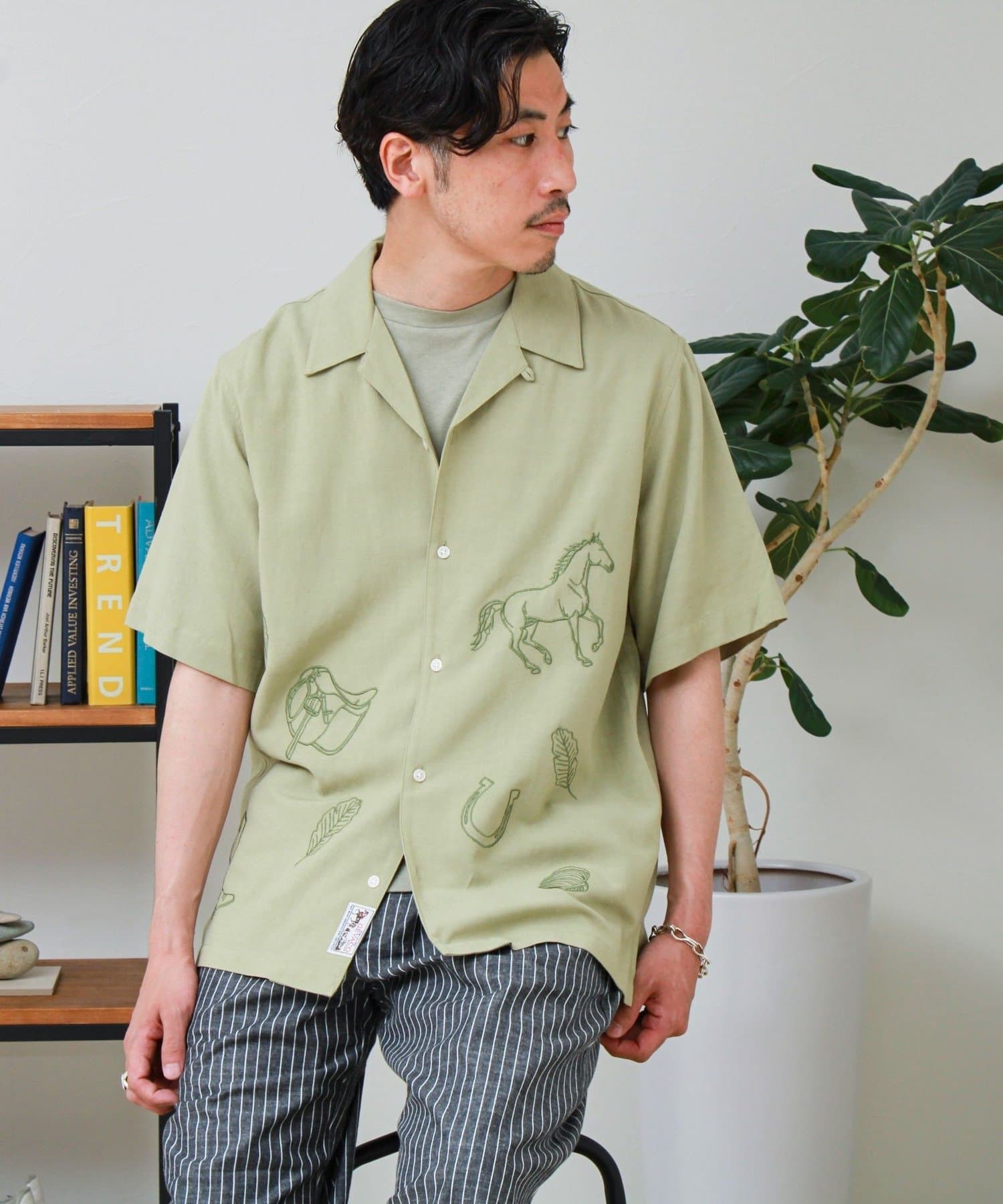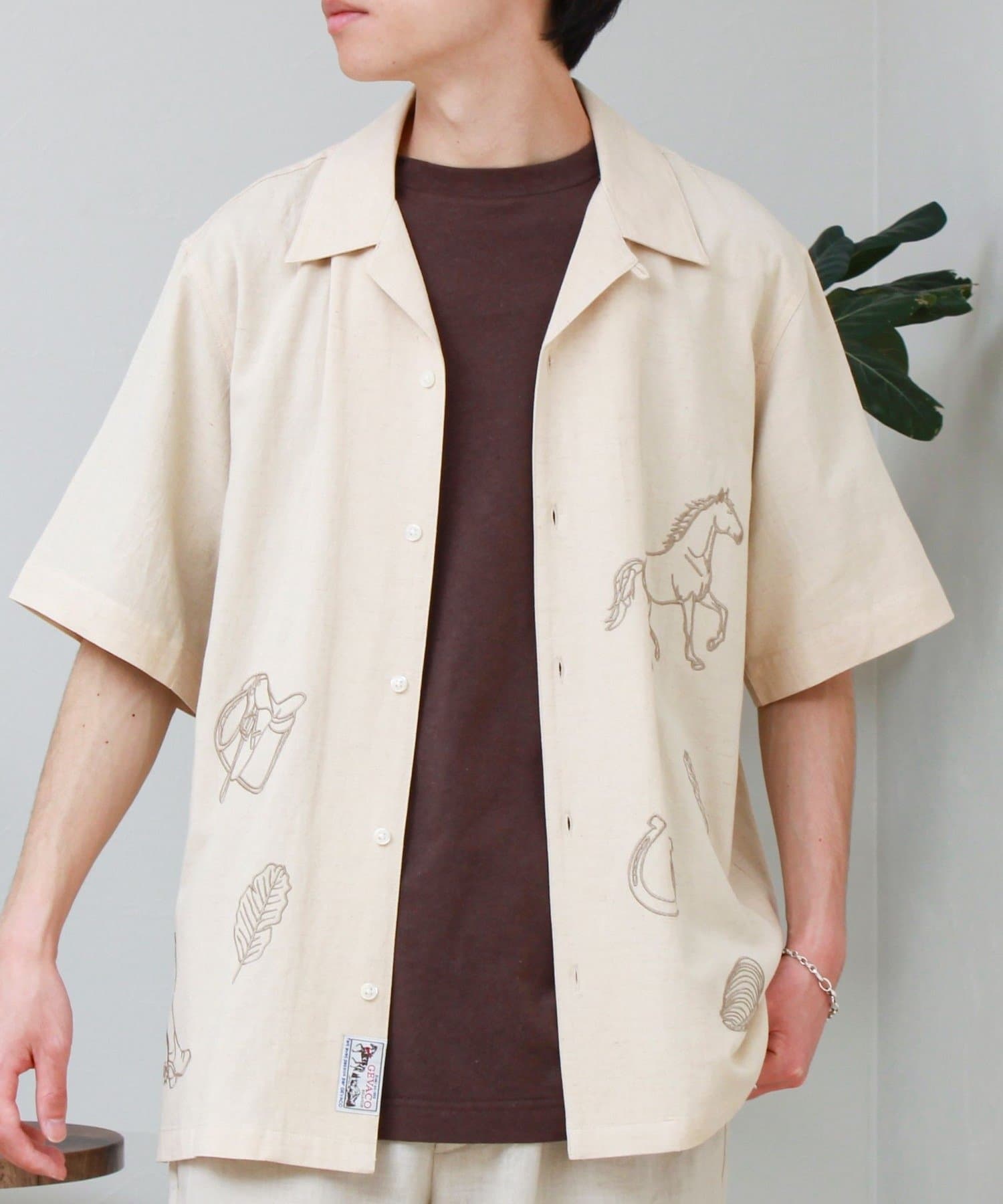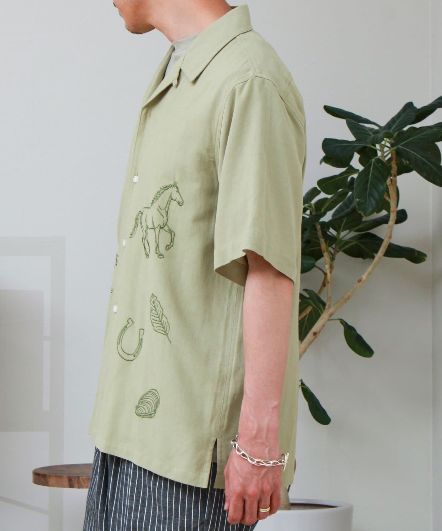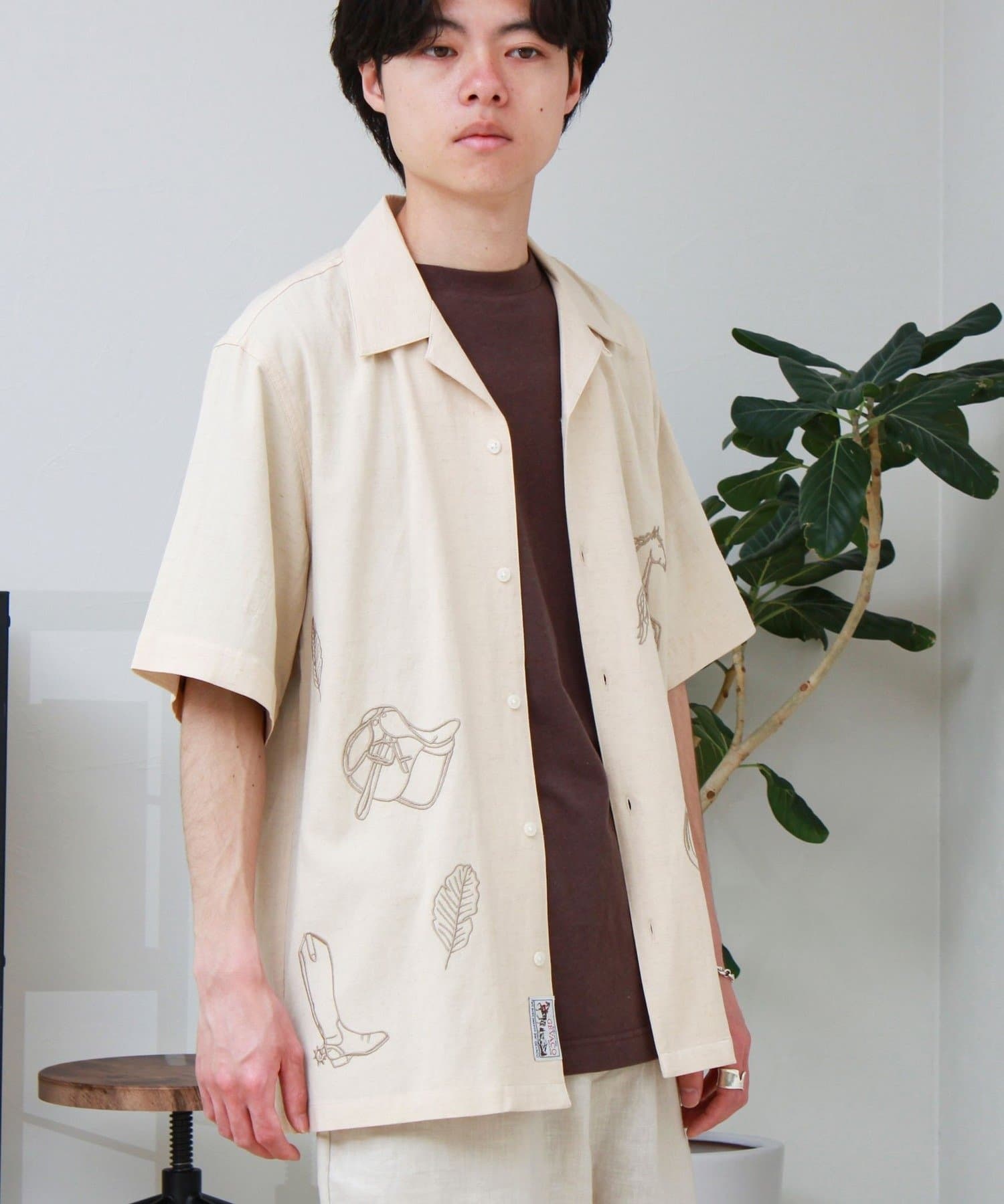 さりげない刺繍が映える、リラックス感のあるオープンカラーシャツ