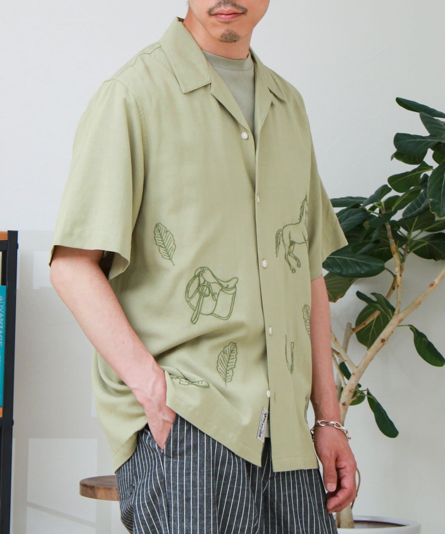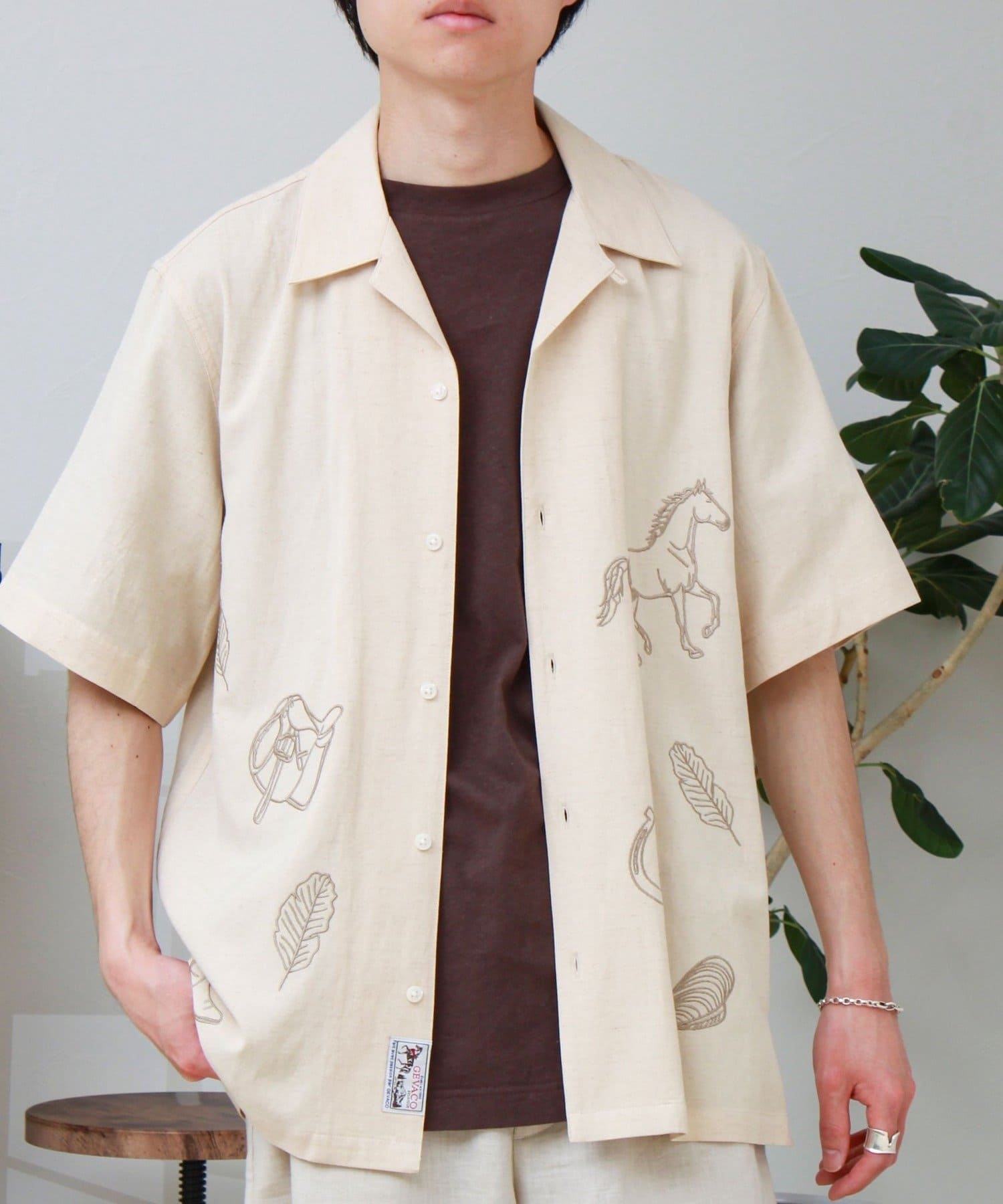 #GEVACO #オープンカラーシャツ #開襟シャツ #刺繍シャツ #半袖シャツ #夏コーデ #リネン混 #大人カジュアル #ユニセックス #柄シャツ #リラックススタイル