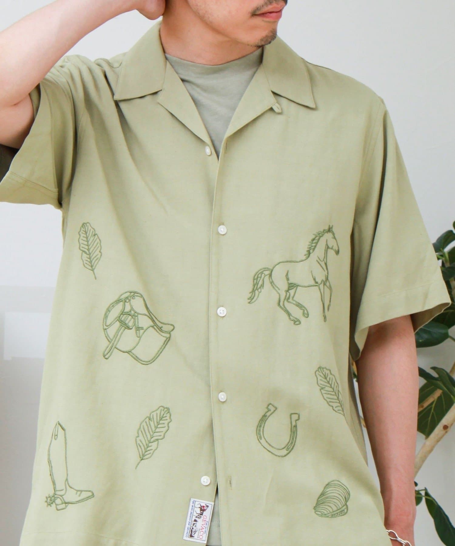 【GEVACO/ゲバコ】刺繍オープンカラーシャツ