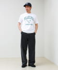 スラックスと合わせて、ロゴTをきれいめに外したスタイリングも◎