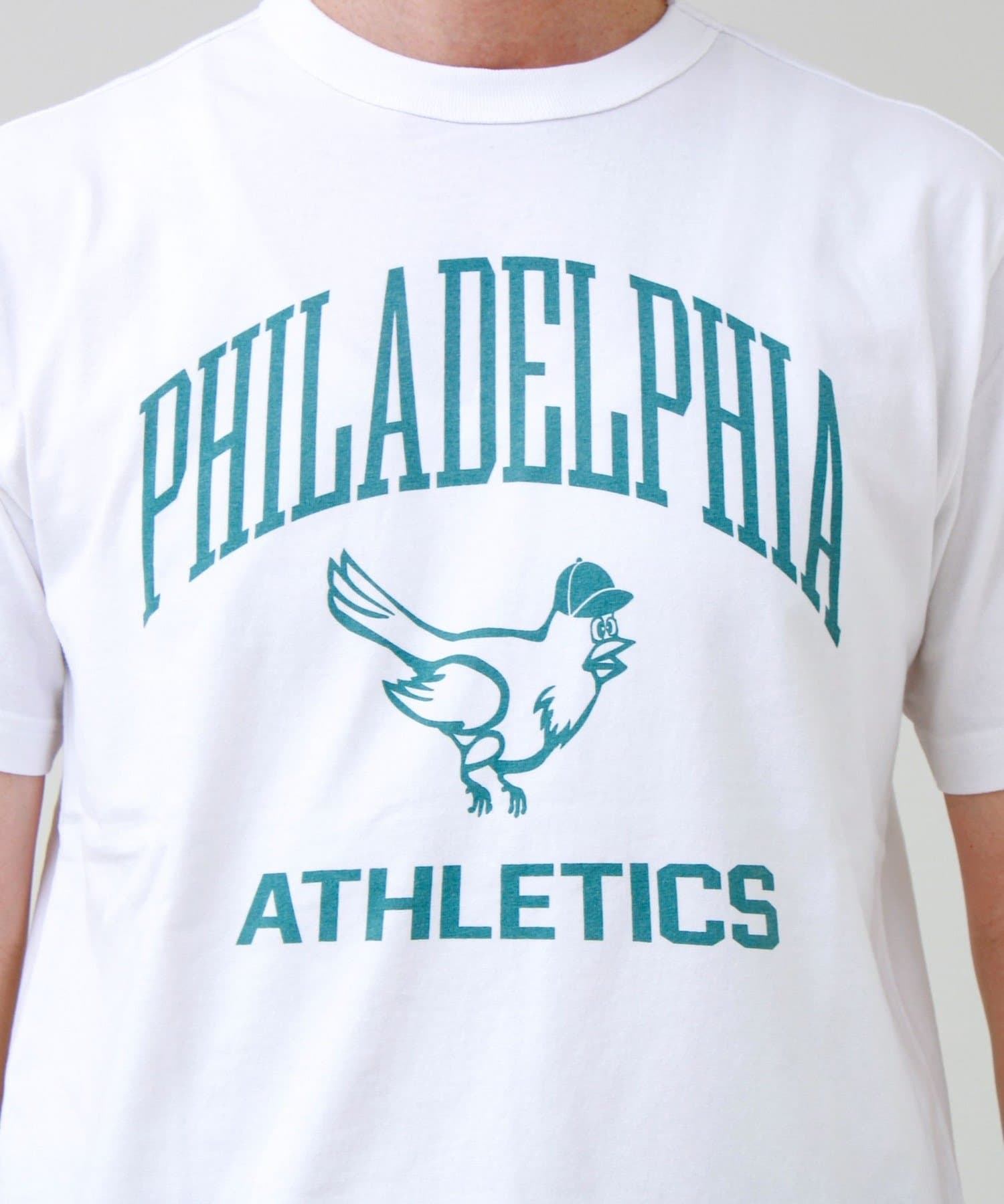 「PHILADELPHIA ATHLETICS」のアーチロゴが目を引くデザイン。1枚でスタイリングの主役に。