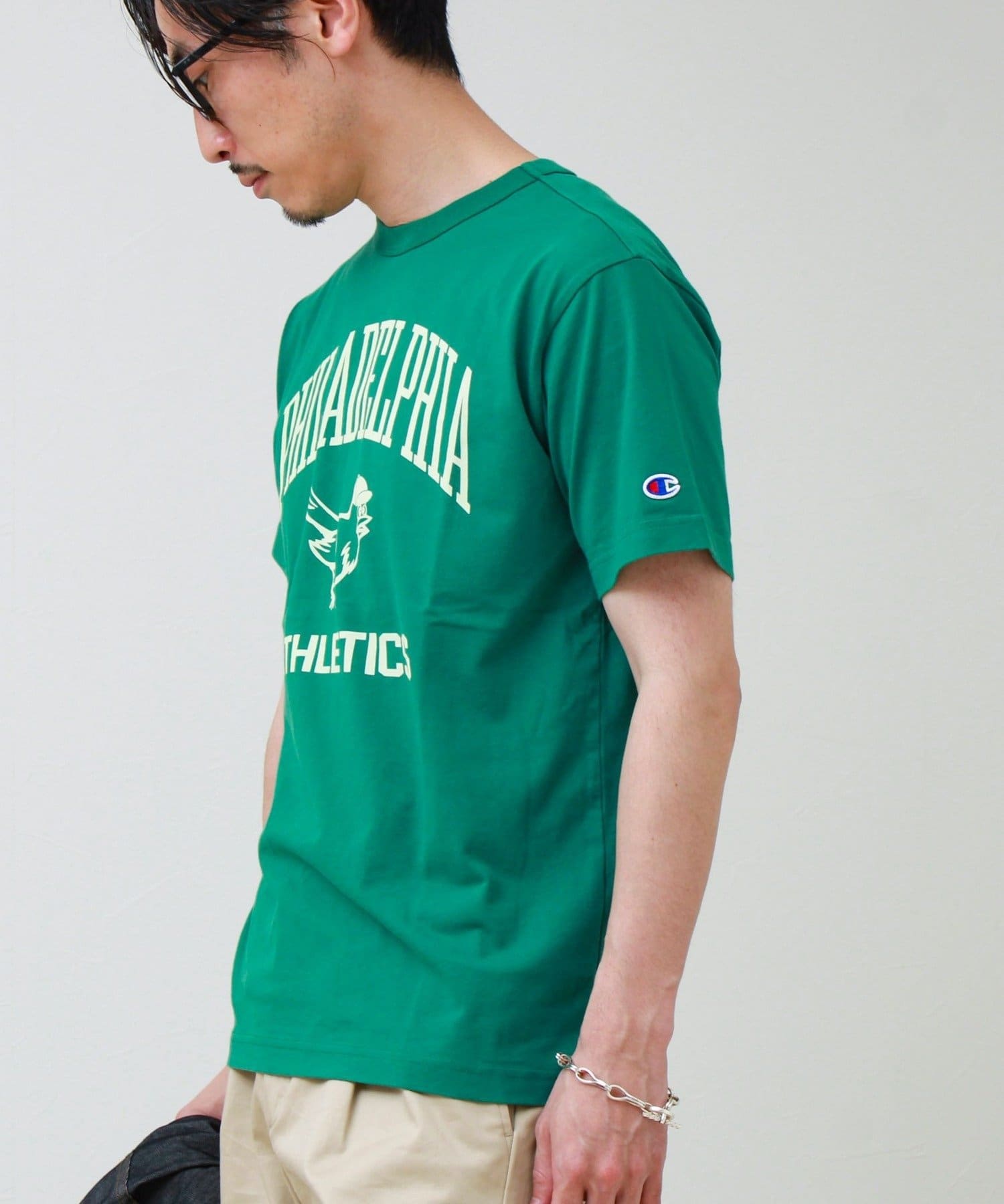 #FREDY&GLOSTER #Champion #チャンピオン #ロゴT #カレッジT #プリントT #グリーンコーデ #ユニセックス #大人カジュアル #シンプルコーデ #夏コーデ #着回しアイテム