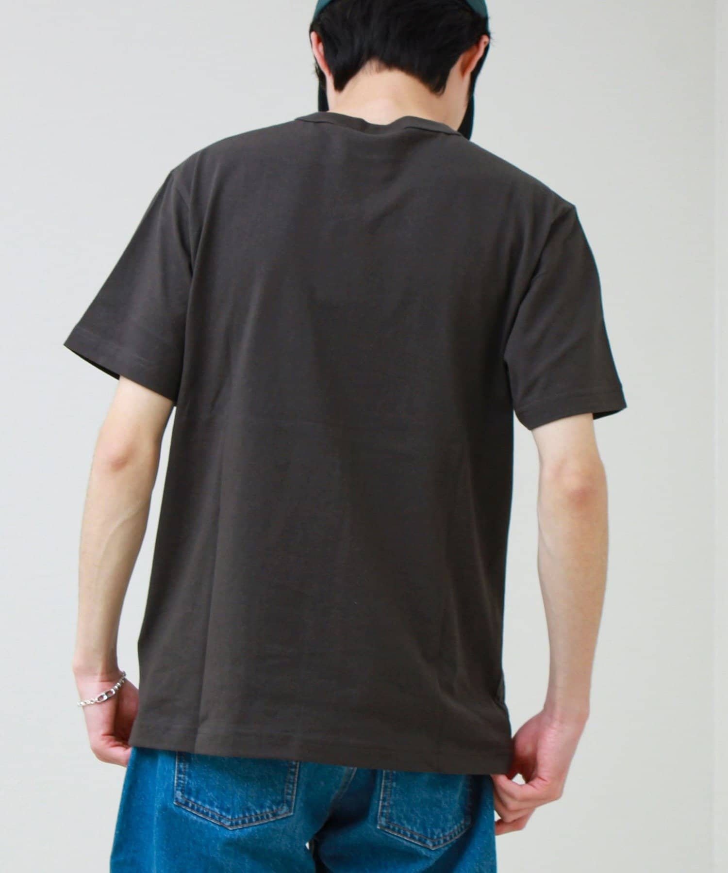 デニムやチノパンと合わせてシンプルに。ロゴを活かした定番スタイル。