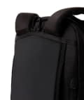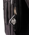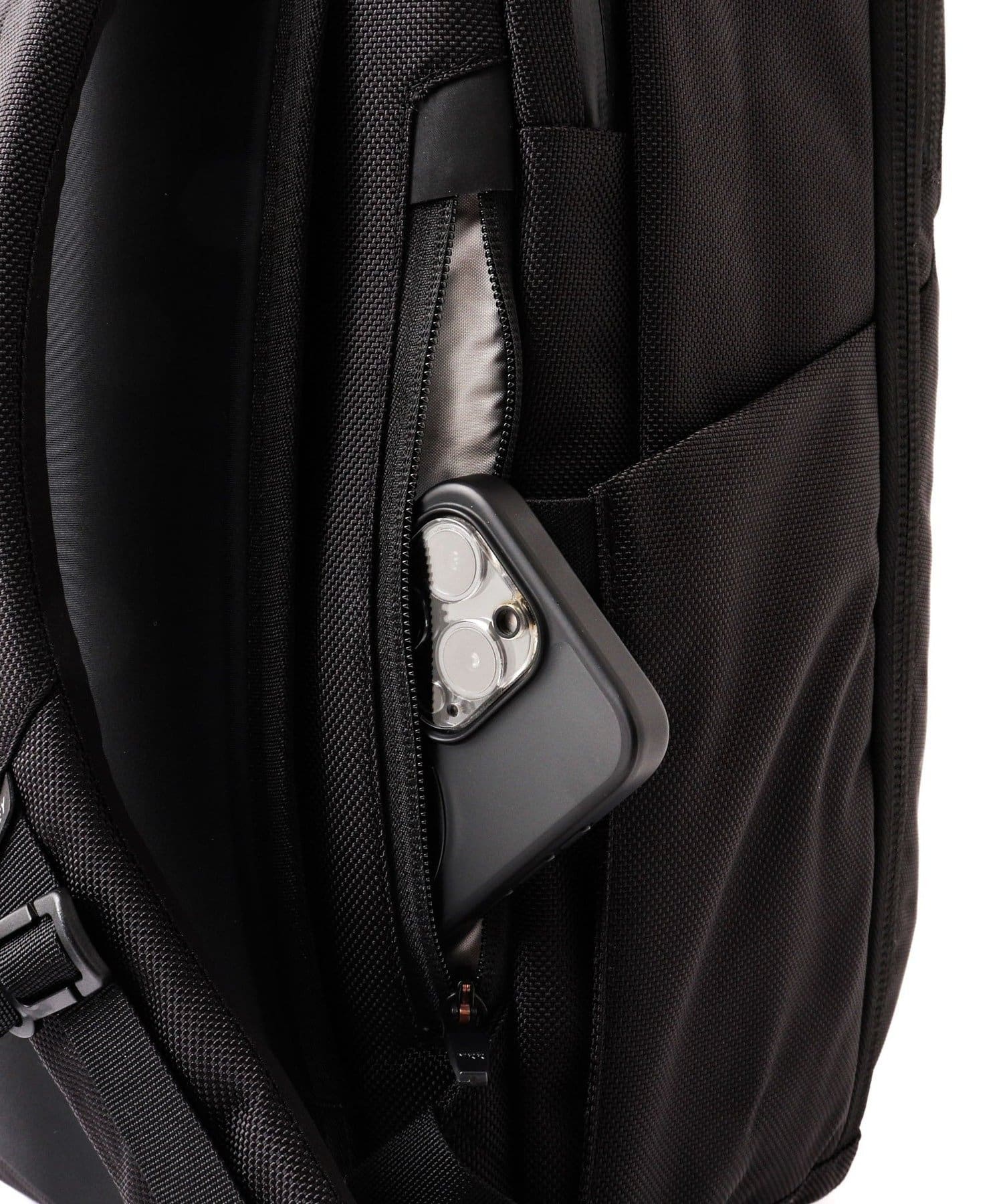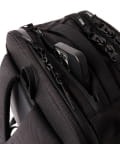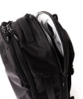 16インチのラップトップが収納できる止水ジッパー付きのPC用コンパートメントと、メインコンパートメント、小物用ポケットも豊富なフロントコンパートメントの3層式。