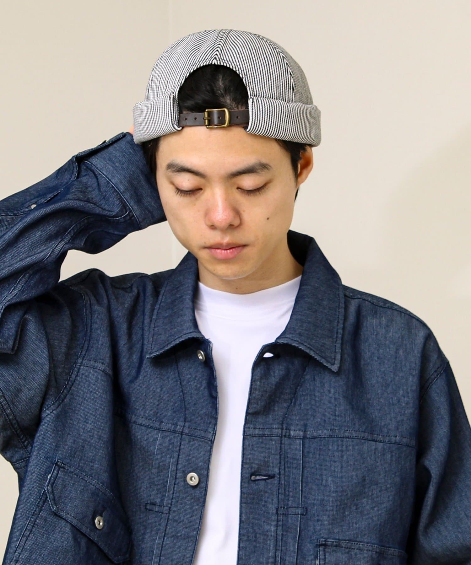 デニム/ヒッコリー素材のフィッシャーマンキャップ