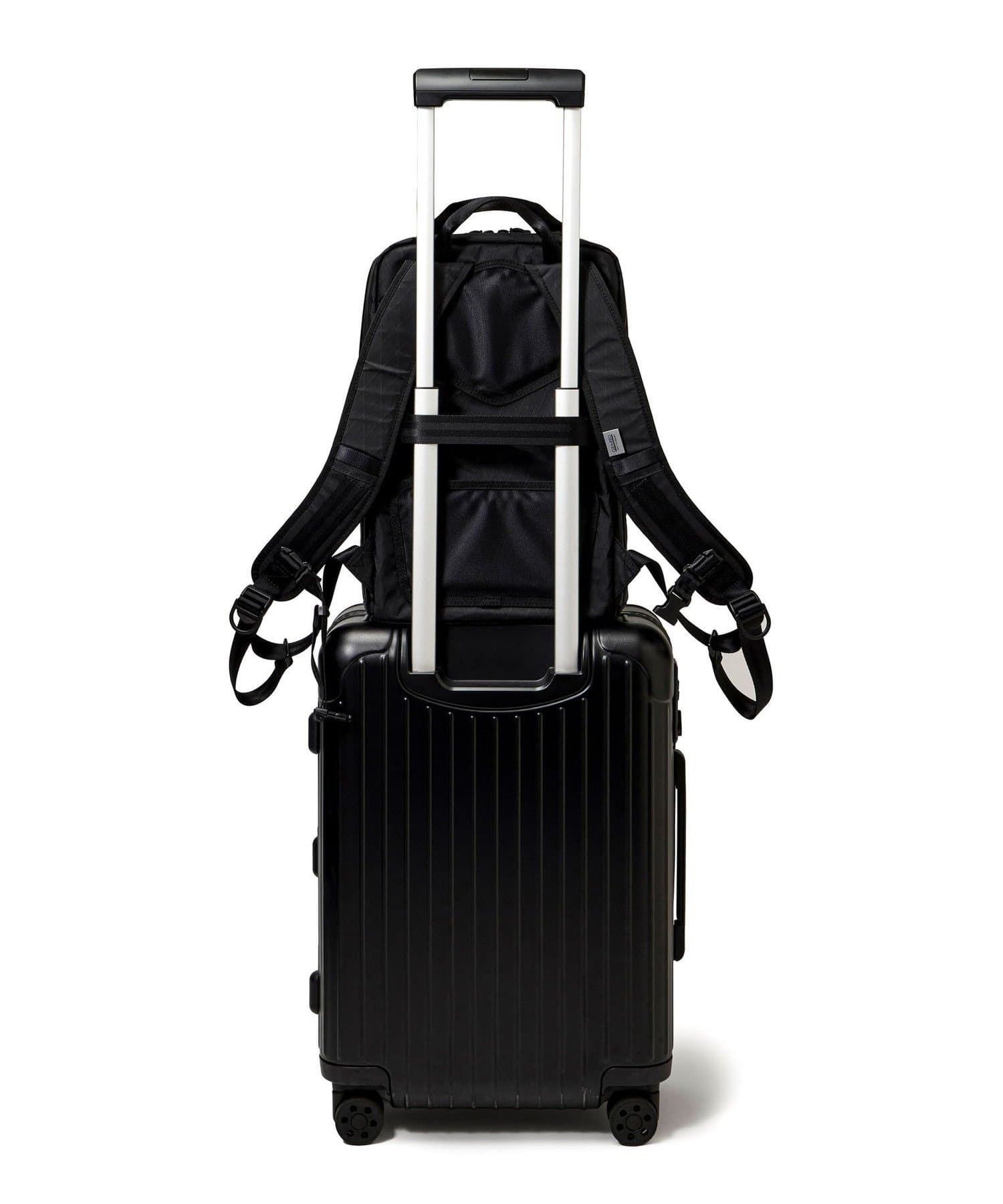 ・バックパネル中央のストラップを使用してスーツケースのハンドルにバッグ本体を固定可能