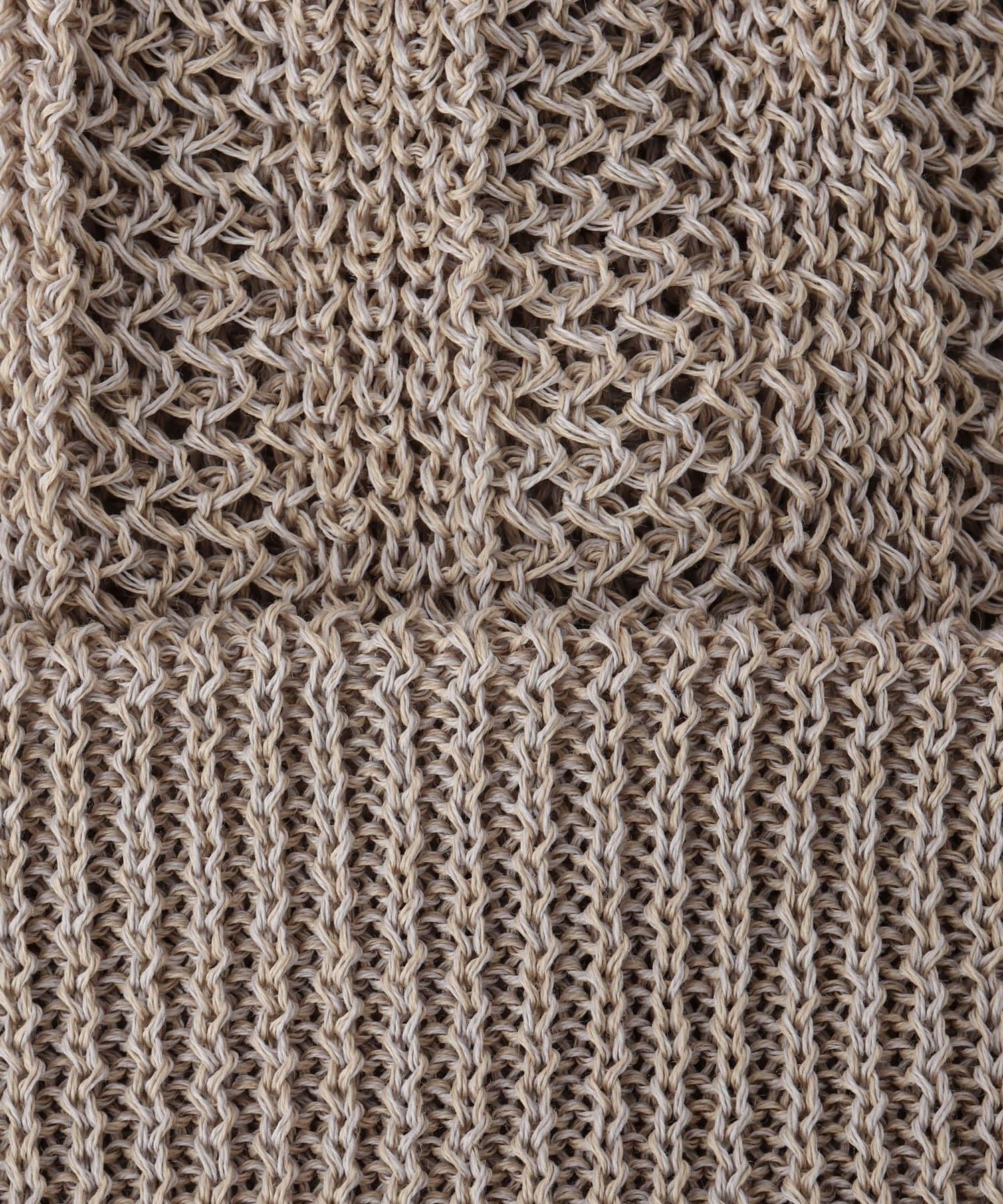 表面は程良いフィット感のざっくりと涼しげに編み立てたリブ編み、裏面は滑らかなリブ編みで仕上げています。